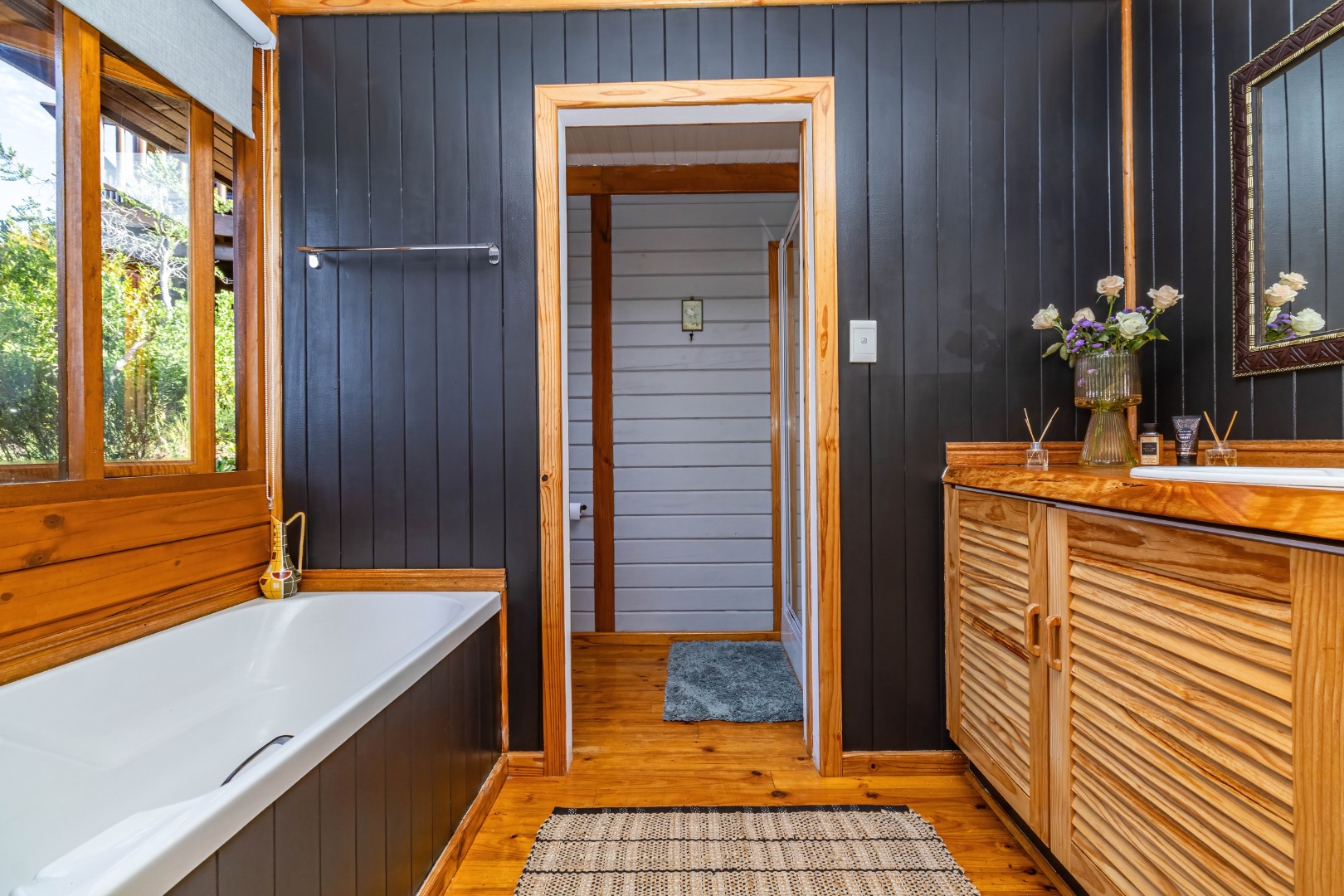 • Two North-West bedrooms (one with direct sea views) share a bathroom and one opens onto a private, wind-protected deck overlooking the mountains.
