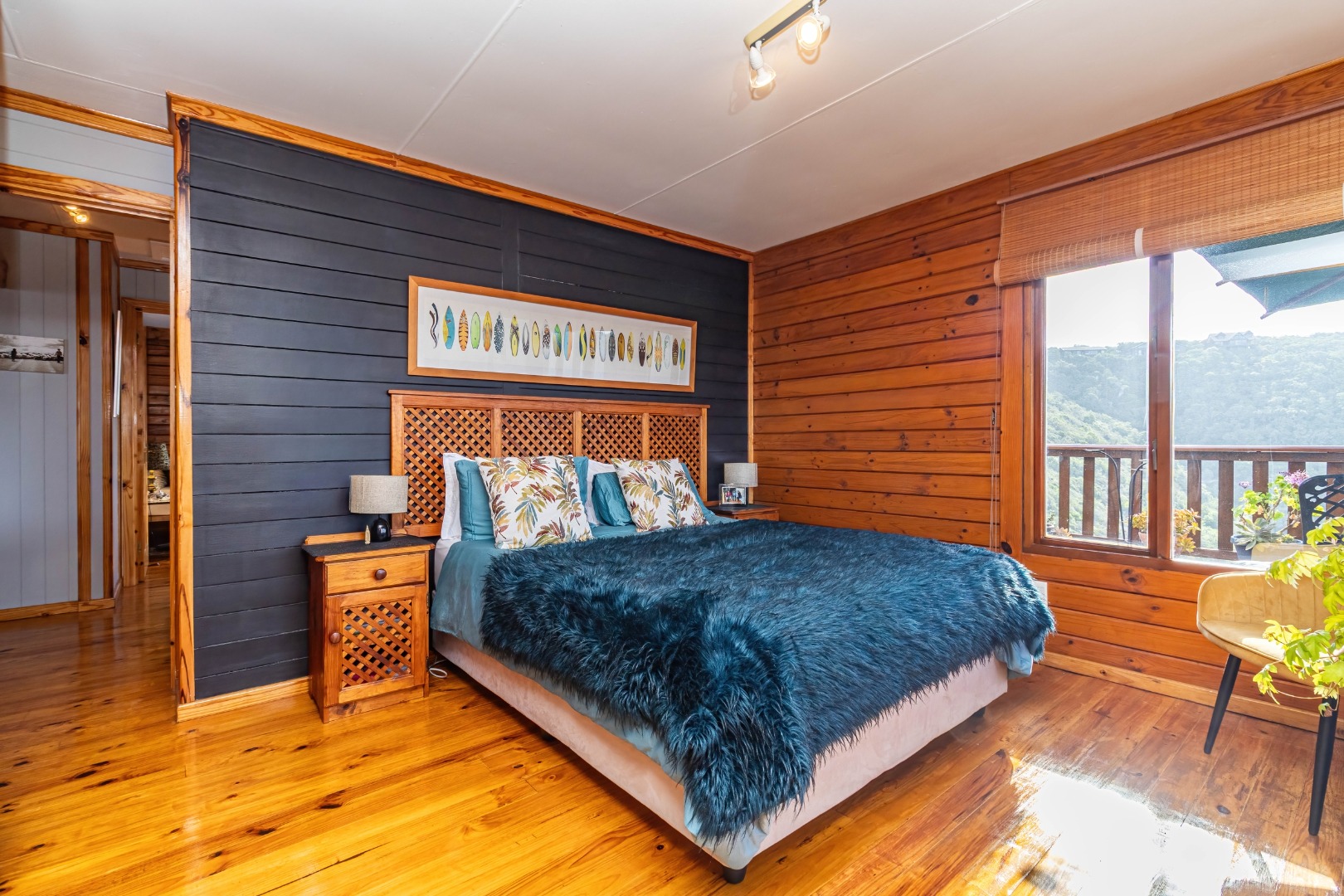 • The spacious East-side main en-suite bedroom frames endless coastline vistas and steps straight onto deck.
