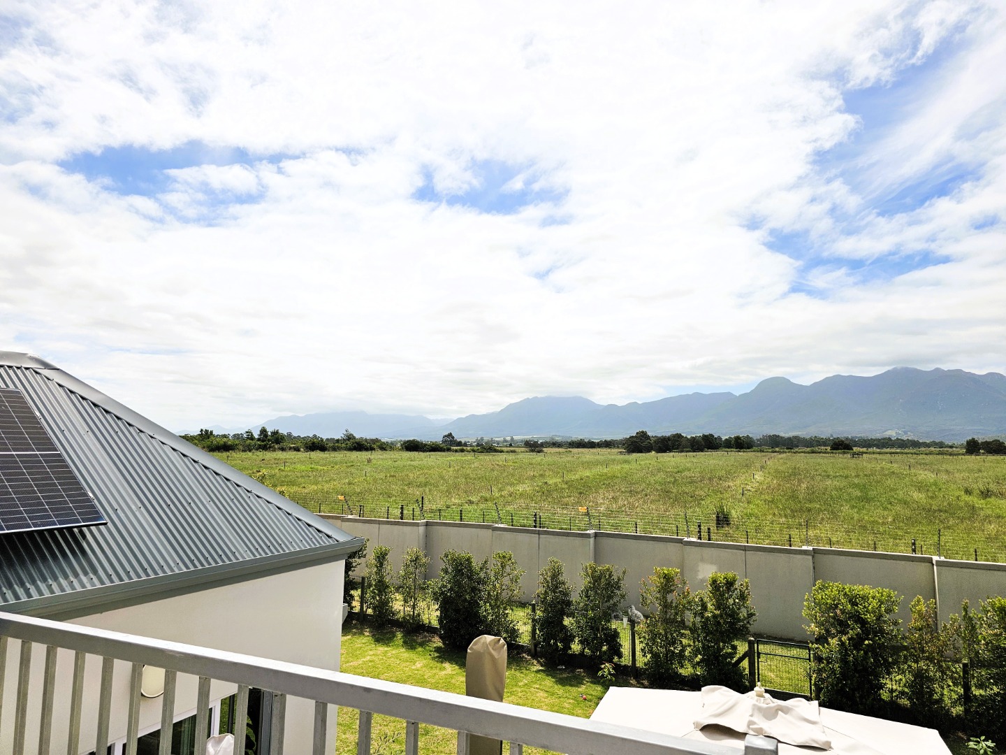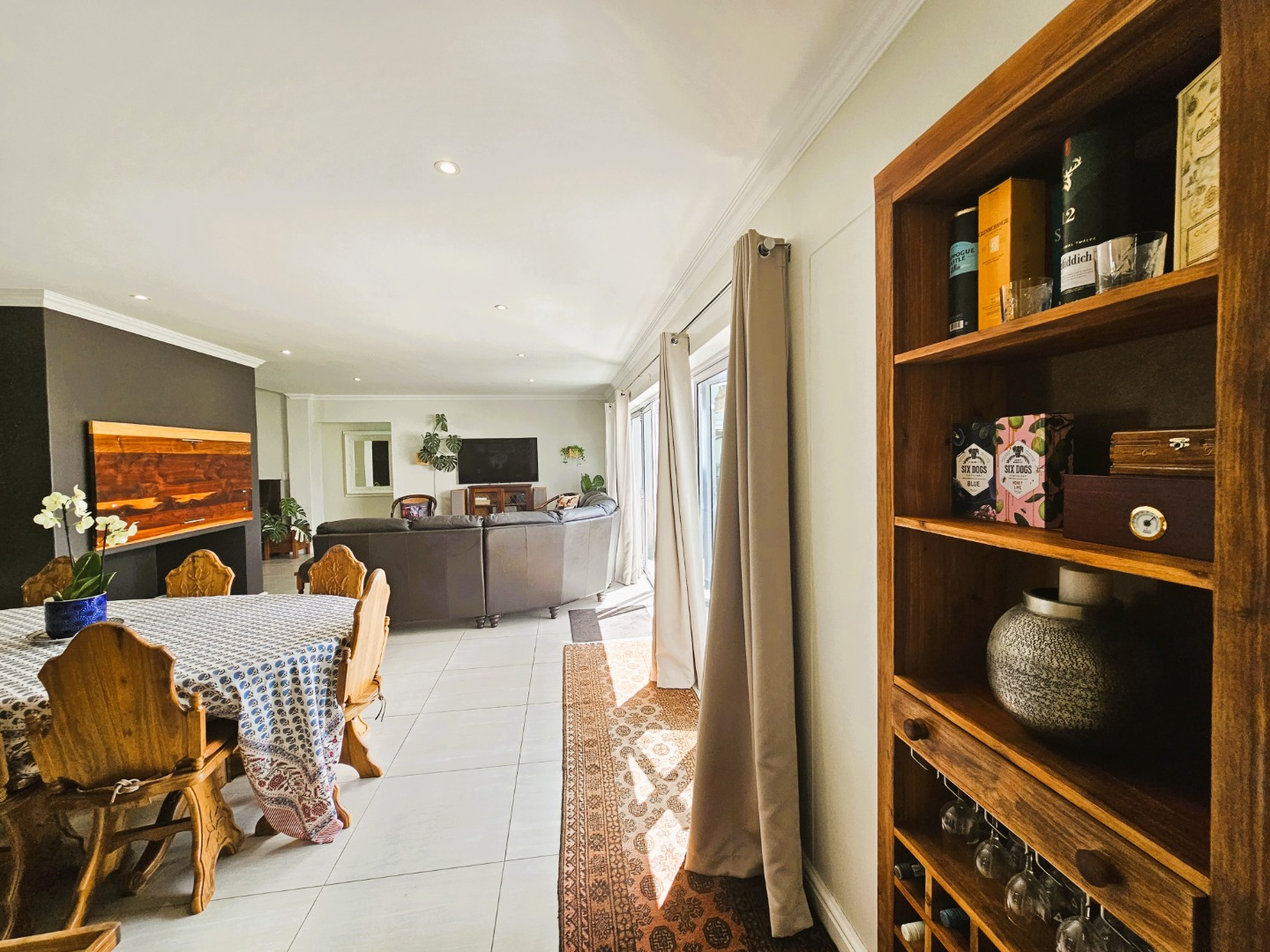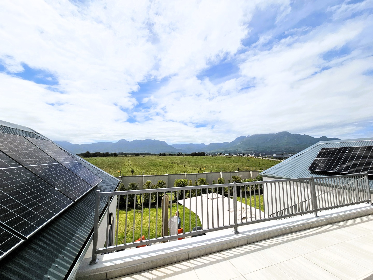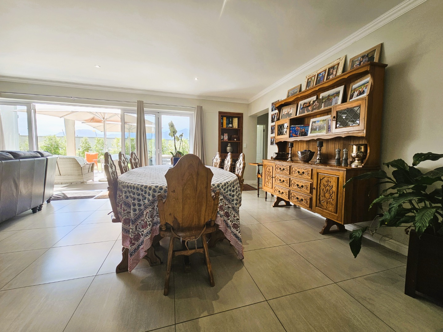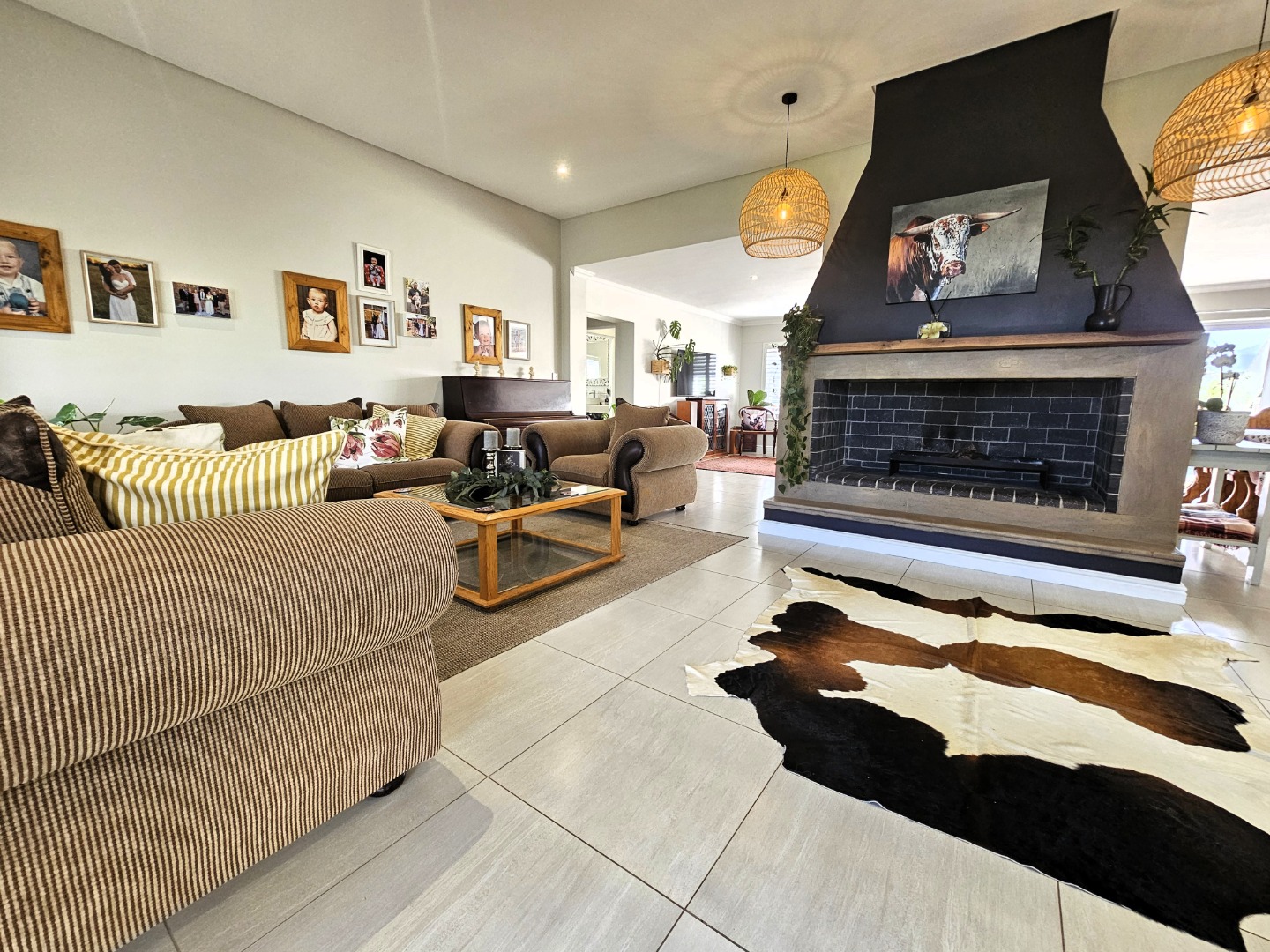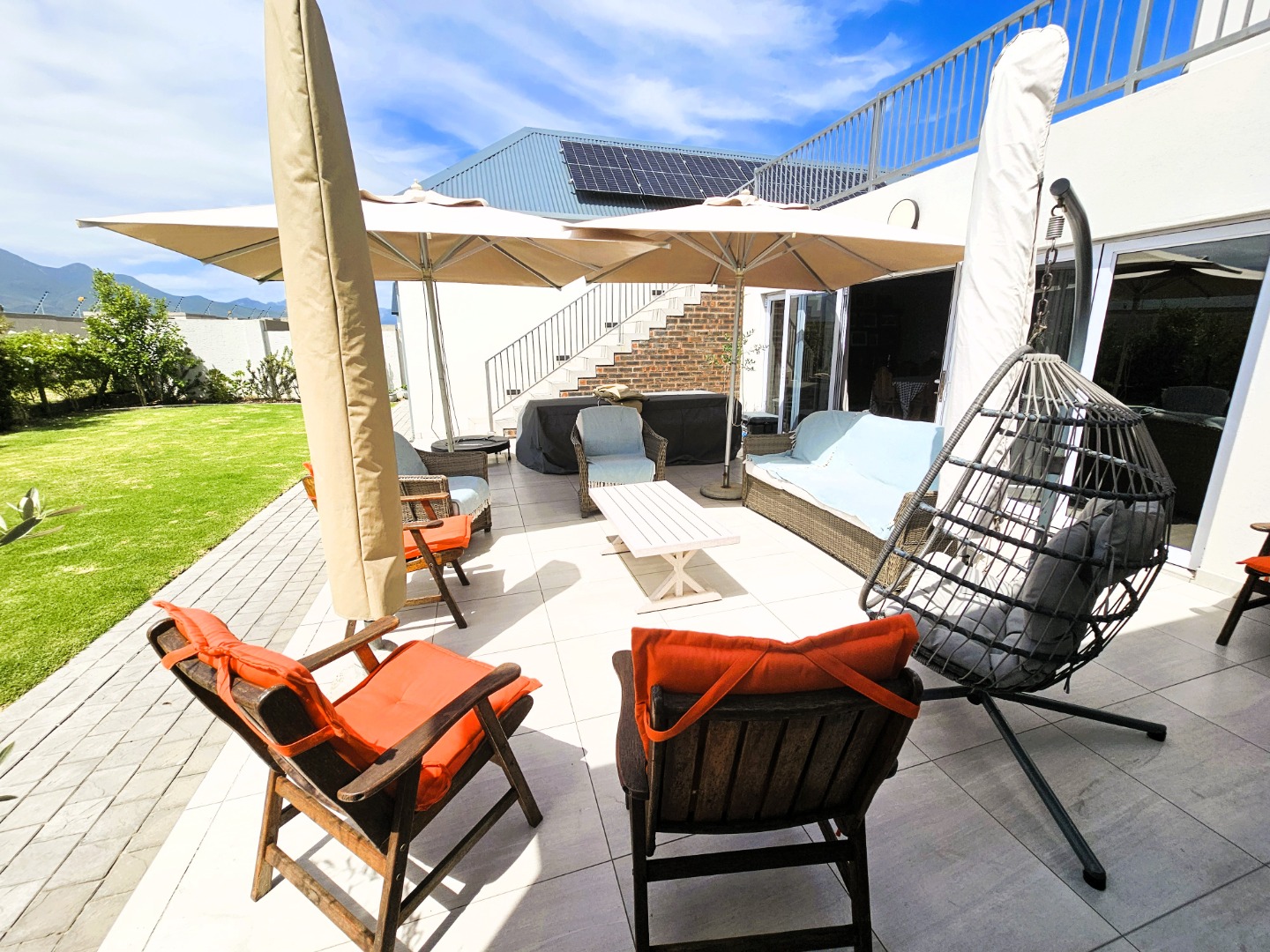 Inside, the home features an open-plan layout that seamlessly connects the living spaces, including two comfortable lounges and a dedicated dining room, ideal for both relaxation and entertaining. The well-appointed kitchen includes a separate pantry, laundry and scullery area, ensuring ample storage. Practical amenities such as a study, guest toilet and additional storage enhance daily convenience. Keep in mind that the study can easily be converted into a 4th bedroom. Enjoy indoor-outdoor living with a built-in braai, a cozy fireplace, and access to a private patio and upper deck, perfect for enjoying the scenic mountain views.