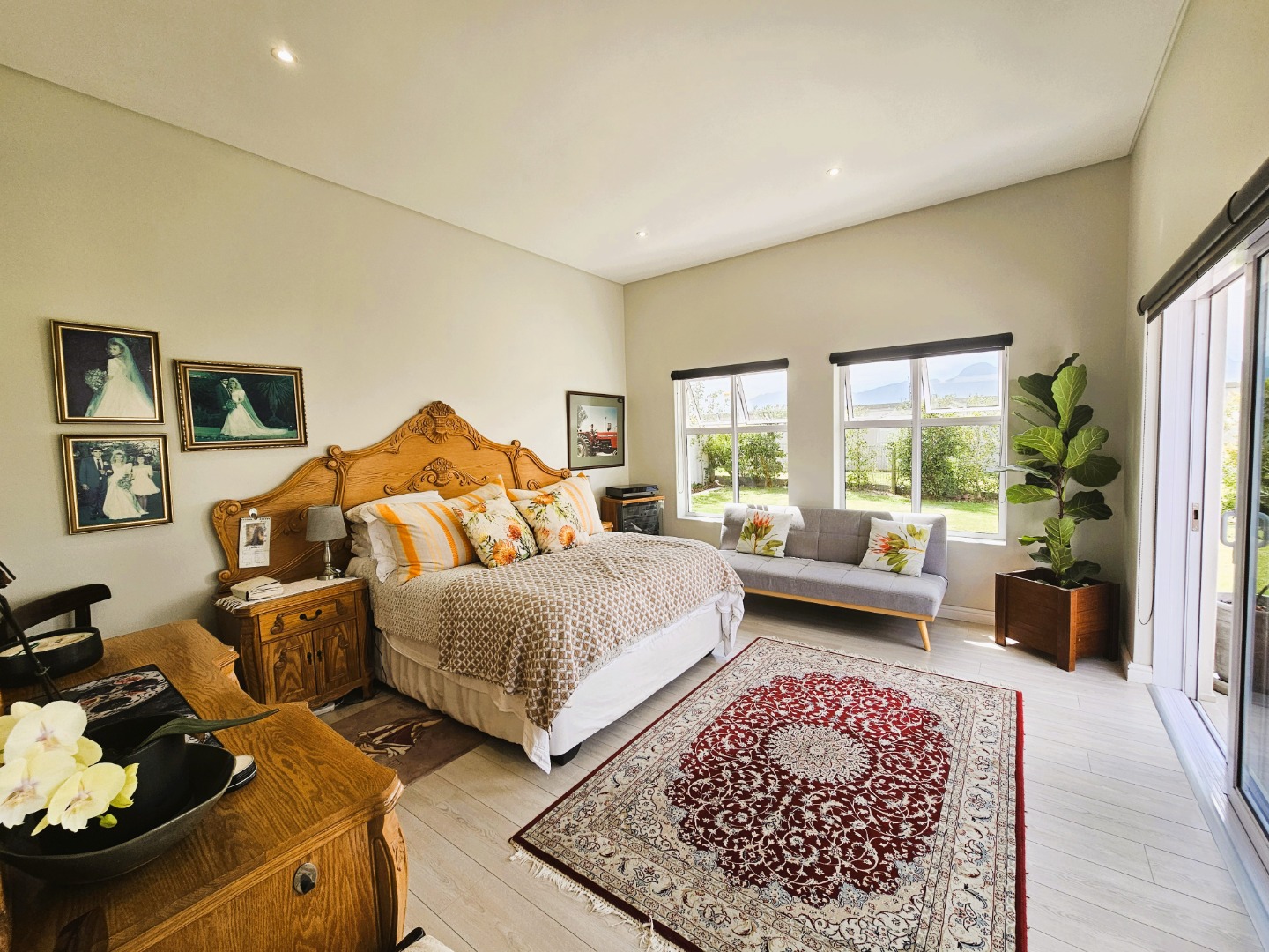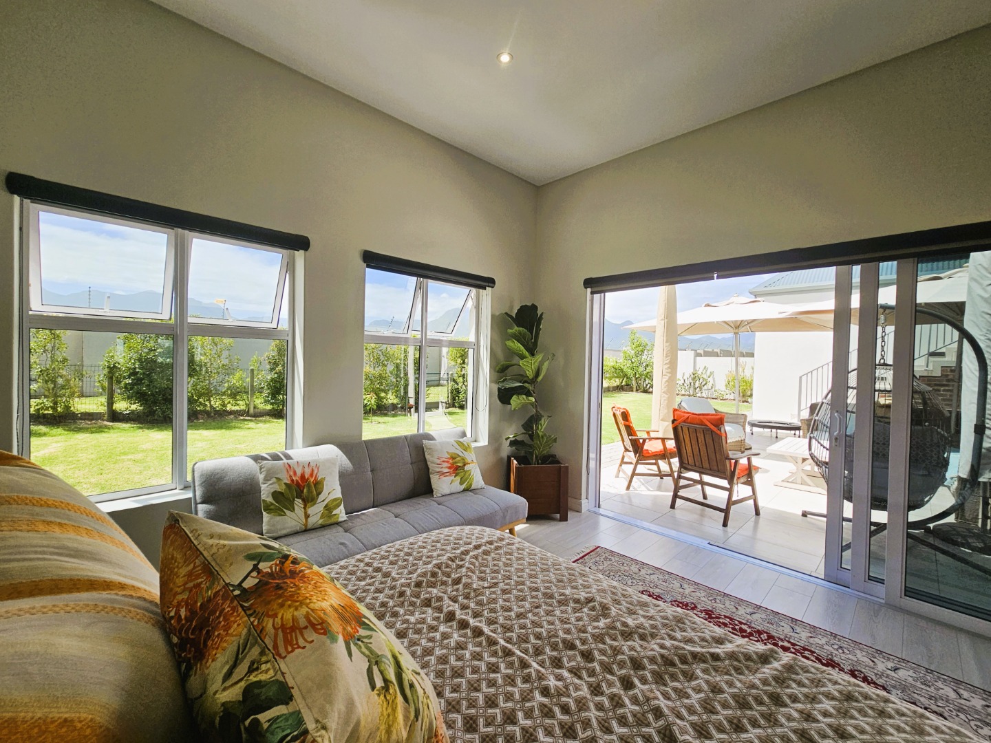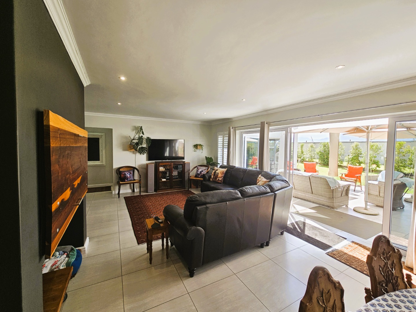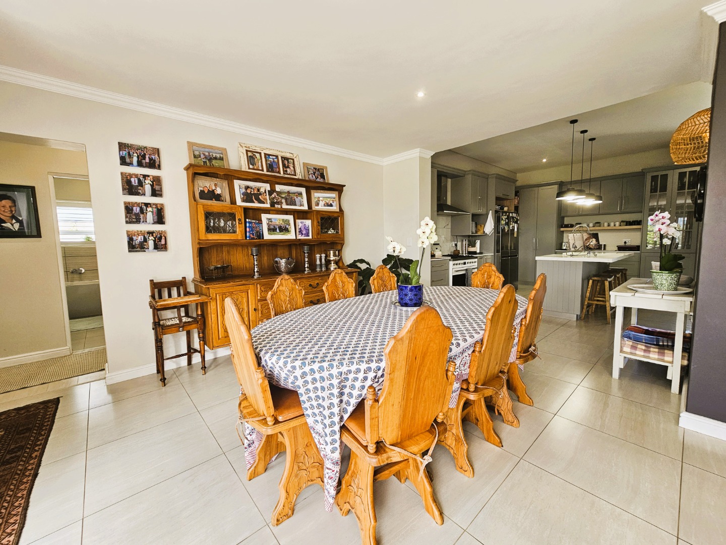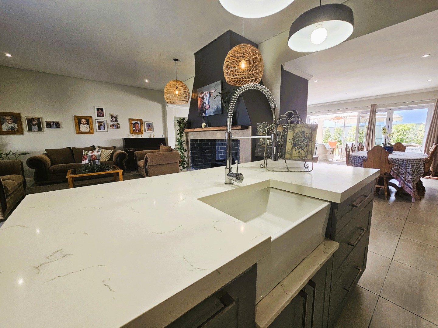 Inside, the home features an open-plan layout that seamlessly connects the living spaces, including two comfortable lounges and a dedicated dining room, ideal for both relaxation and entertaining. The well-appointed kitchen includes a separate pantry, laundry and scullery area, ensuring ample storage. Practical amenities such as a study, guest toilet and additional storage enhance daily convenience. Keep in mind that the study can easily be converted into a 4th bedroom. Enjoy indoor-outdoor living with a built-in braai, a cozy fireplace, and access to a private patio and upper deck, perfect for enjoying the scenic mountain views.