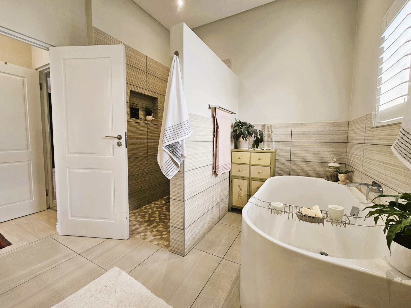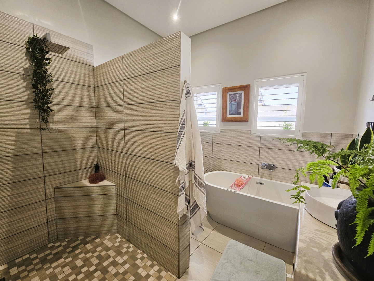 This property is designed for a secure and sustainable lifestyle. Residents benefit from 24-hour security, an access gate, and a security post within the fenced estate, providing peace of mind. Environmentally conscious features include solar panels, a battery inverter, and water tanks, contributing to reduced utility costs and self-sufficiency. Fibre connectivity is also available, ensuring high-speed internet access.