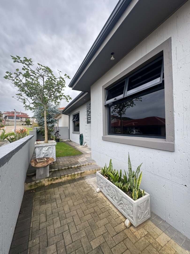 The property is ideally situated to capture breathtaking scenic and sea views, providing a tranquil coastal living experience. Modern amenities enhance daily life, featuring air conditioning for climate control, a dedicated study for work or leisure, and a practical laundry area. For those who value sustainability and energy efficiency, the home is equipped with solar panels and a battery inverter, alongside fibre connectivity for high-speed internet. Security is paramount, with 24-hour security, a security post, burglar bars, and a perimeter fence providing peace of mind. The property also includes three garages, offering secure parking and additional storage.
