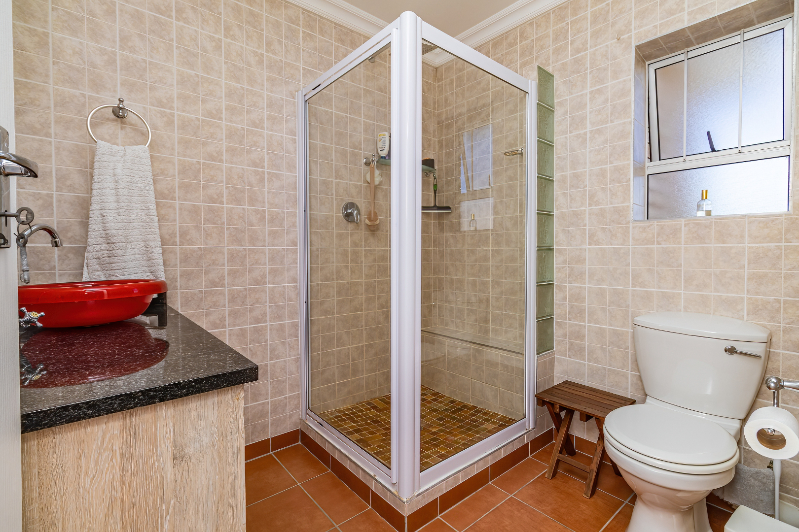 - 4.5 Bathrooms Total, Including Guest Bathroom and Outside Toilet, Separate Laundry with own geyser.