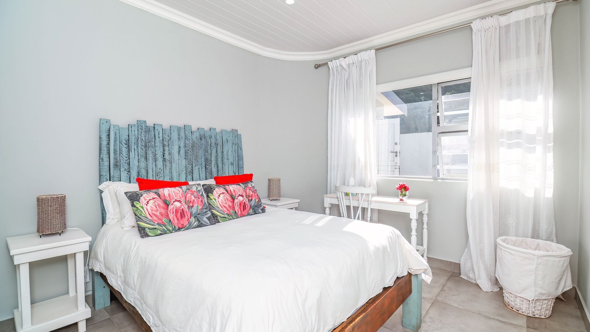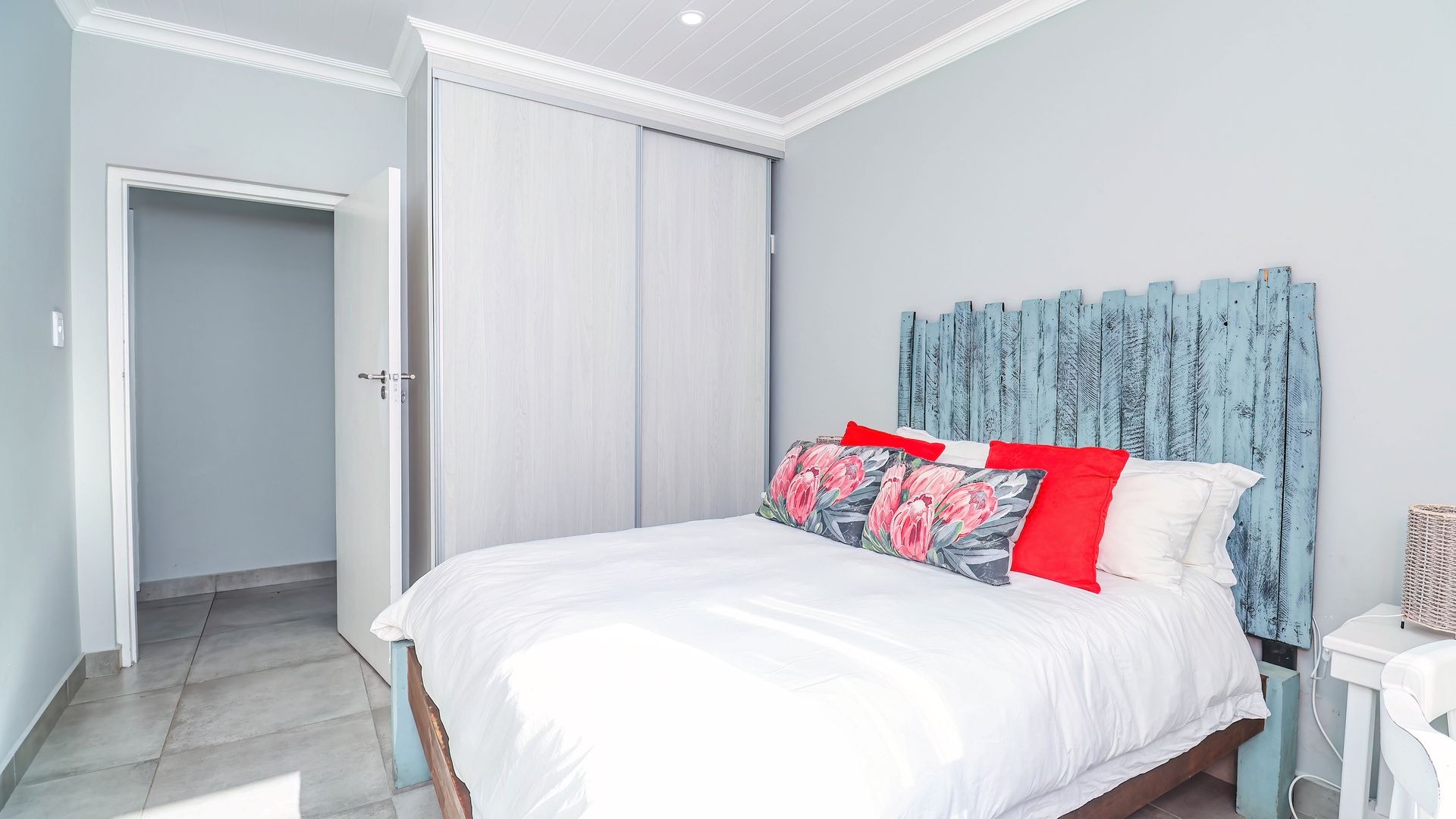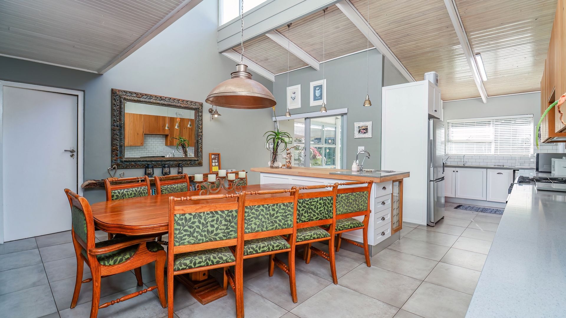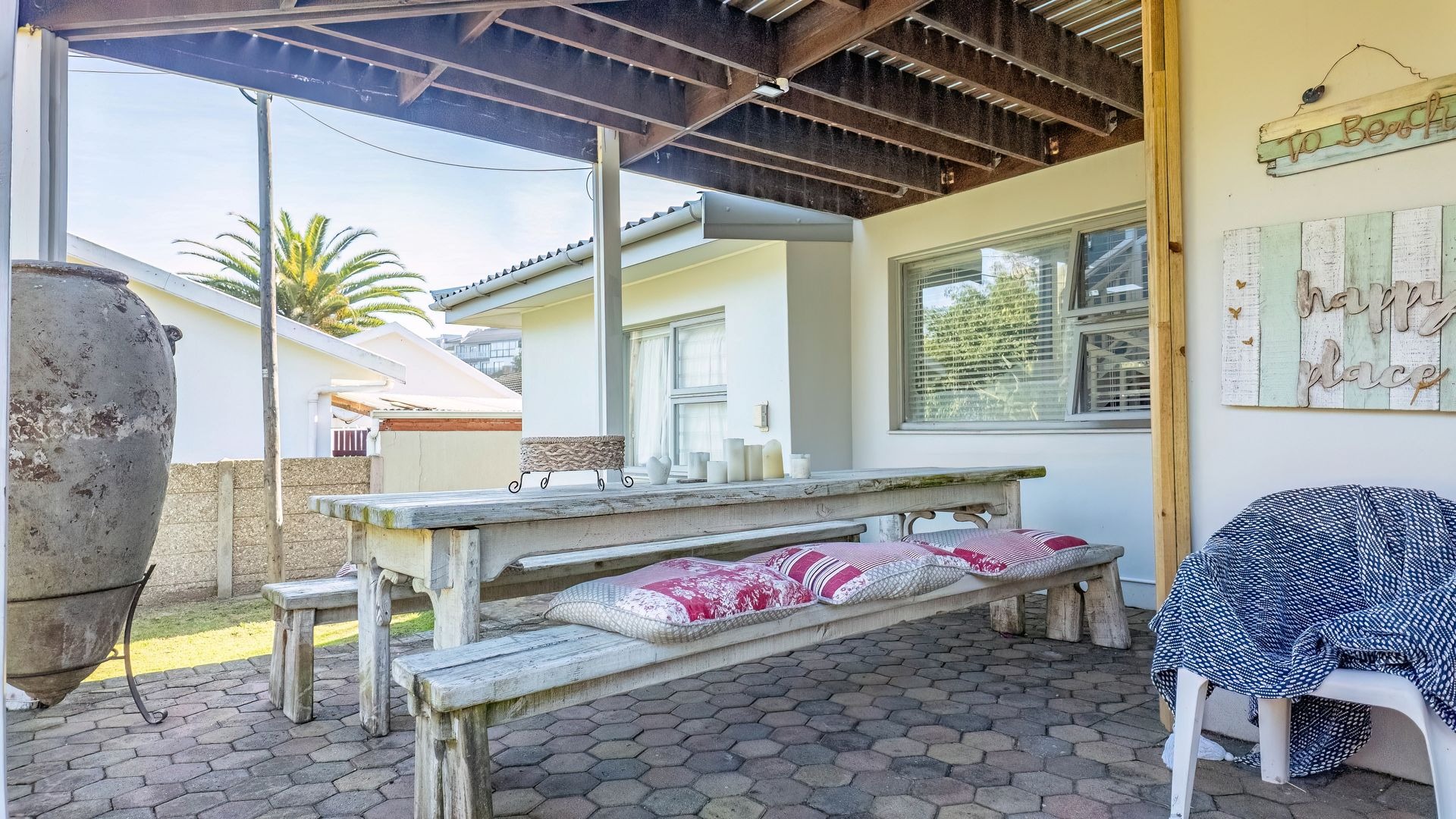 Outdoor living is a highlight, with a charming garden, a patio, and an upstairs balcony. The house offers various private spaces to enjoy the scenic views and fresh sea breeze. The downstairs open plan area offers enough space perfect for entertaining, while sliding doors seamlessly connect indoor and outdoor spaces. The patio area can be extended in the large back garden. The property is pet-friendly and secured with a fence, alarm system, burglar bars, and benefits from 24-hour security, ensuring peace of mind. Additional features include water tanks for efficiency and fibre connectivity for modern living.