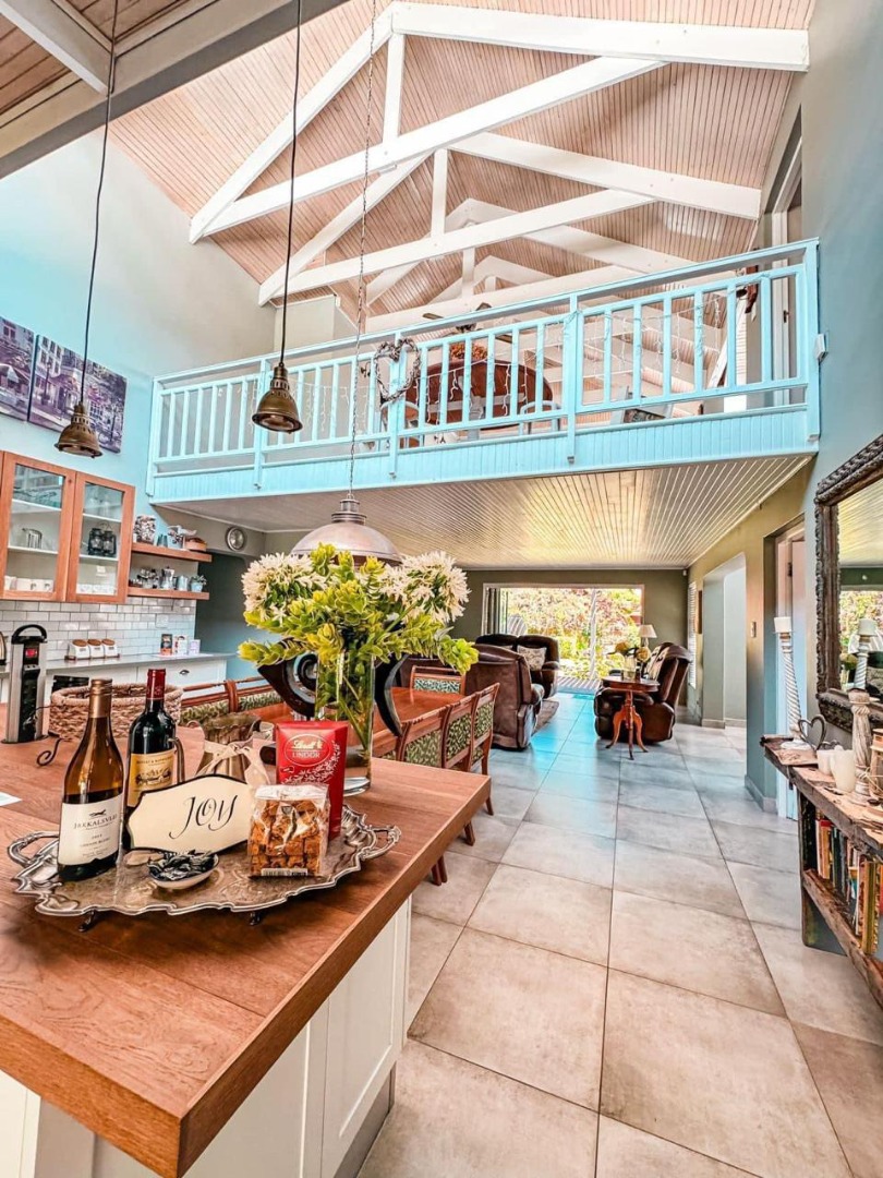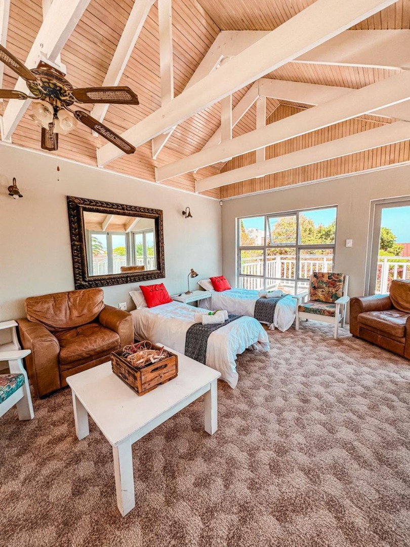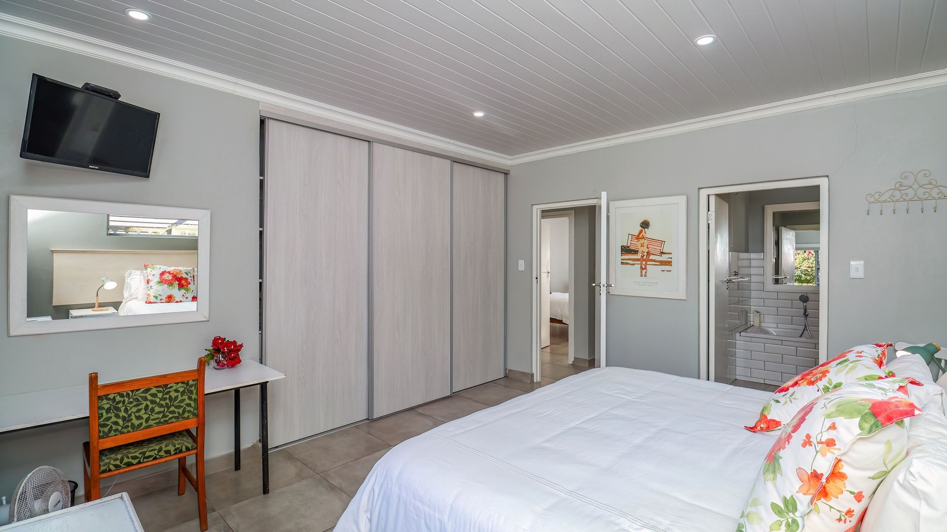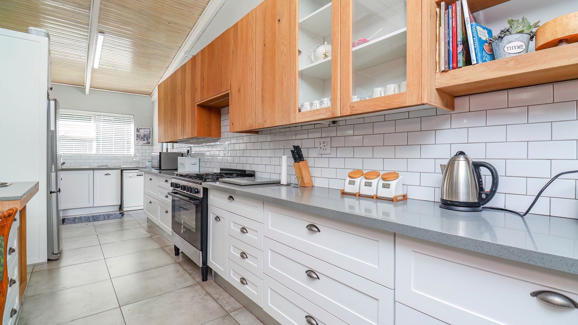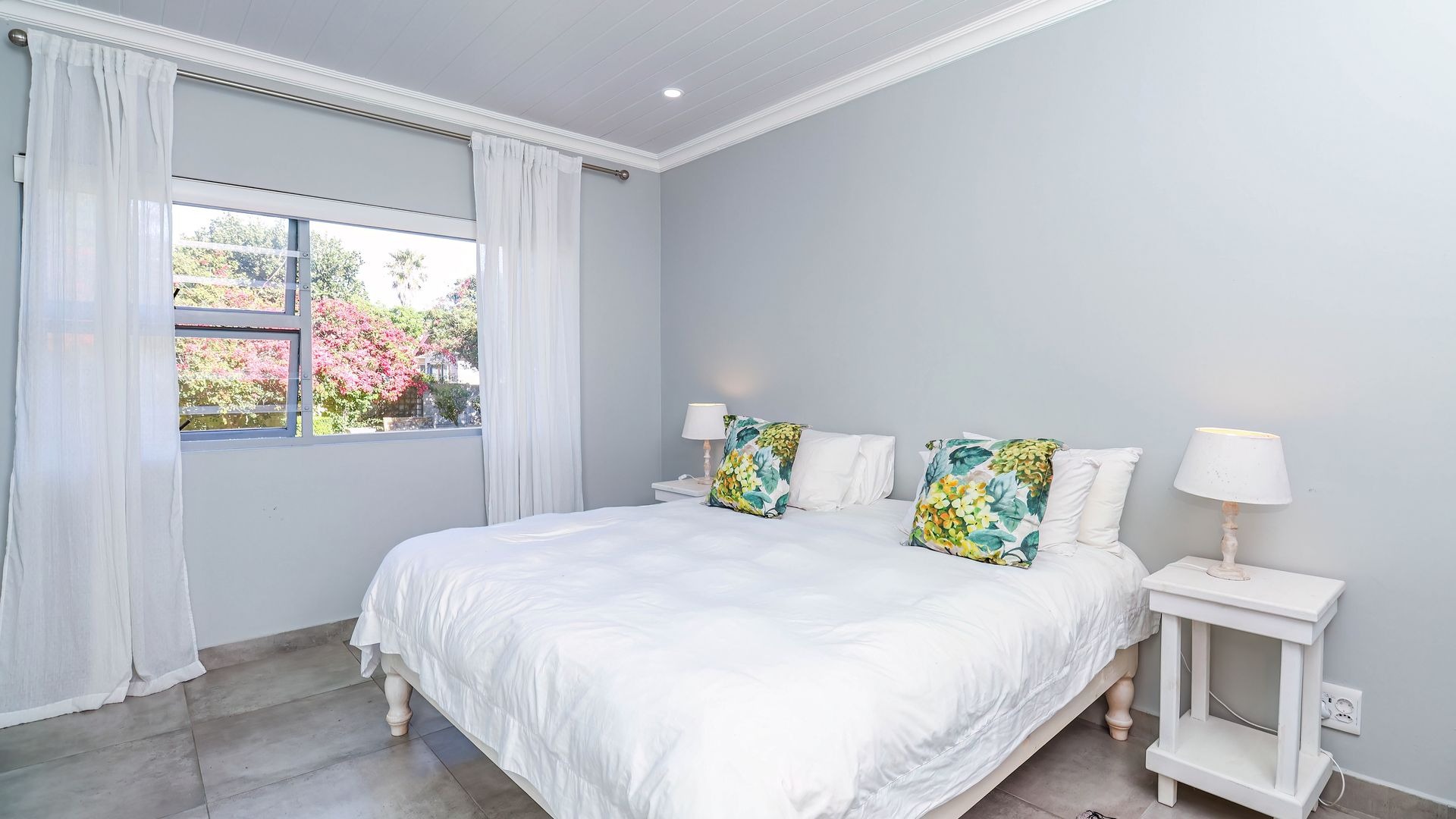 Outdoor living is a highlight, with a charming garden, a patio, and an upstairs balcony. The house offers various private spaces to enjoy the scenic views and fresh sea breeze. The downstairs open plan area offers enough space perfect for entertaining, while sliding doors seamlessly connect indoor and outdoor spaces. The patio area can be extended in the large back garden. The property is pet-friendly and secured with a fence, alarm system, burglar bars, and benefits from 24-hour security, ensuring peace of mind. Additional features include water tanks for efficiency and fibre connectivity for modern living.
