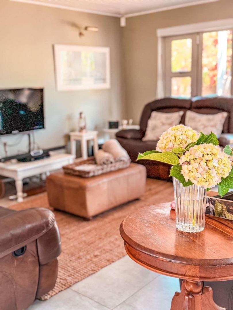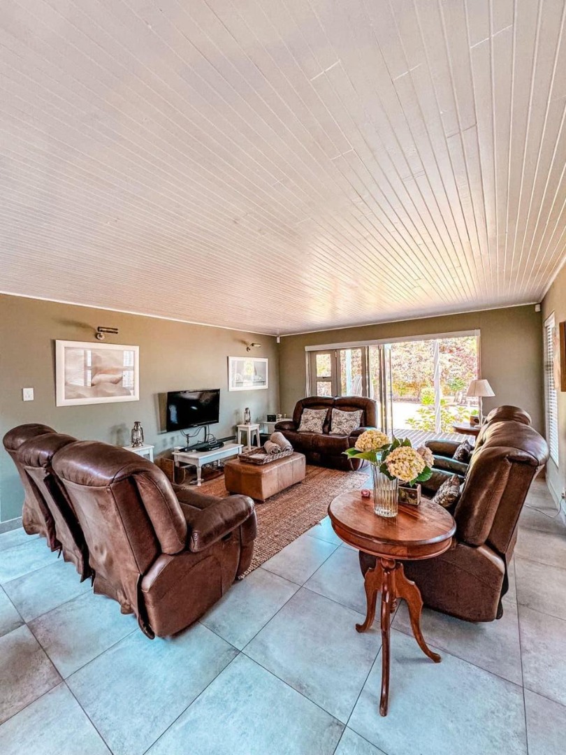 The interior is designed for comfortable living and entertaining, boasting two spacious lounges and a dedicated dining room, all benefiting from an open-plan layout that enhances flow and natural light. A cozy fireplace adds warmth and ambiance, perfect for cooler evenings. The well-appointed kitchen is central to the home, catering to all culinary needs. Practical amenities include a dedicated laundry area and ample storage solutions throughout the residence.
