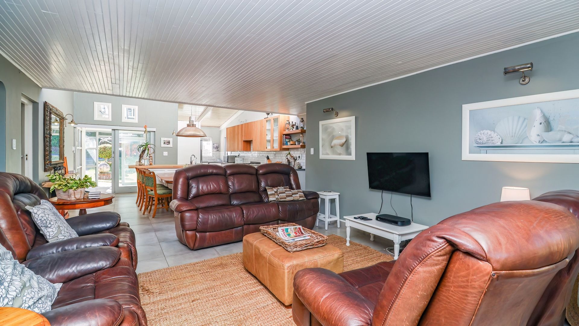 Discover this residential property for sale in the sought-after coastal suburb of Outeniqua Strand, Great Brak River. This multi-story home, spanning 342.00 m2 on a generous 934.00 m2 erf, presents a modern style with a clean white exterior and ample opportunity to further enhance the futures of the house. The property features a welcoming entrance hall and a well-maintained front yard with paved driveways, leading to a covered carport and two garages, providing ample parking for up to four vehicles.
