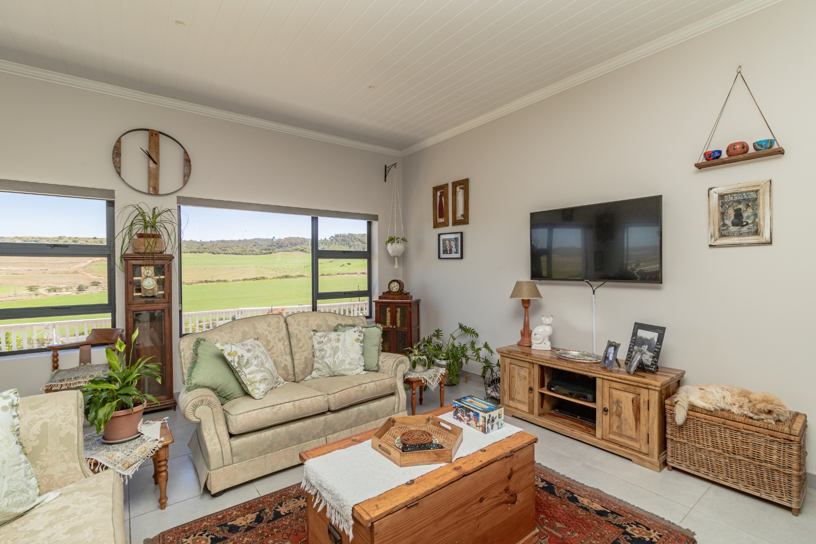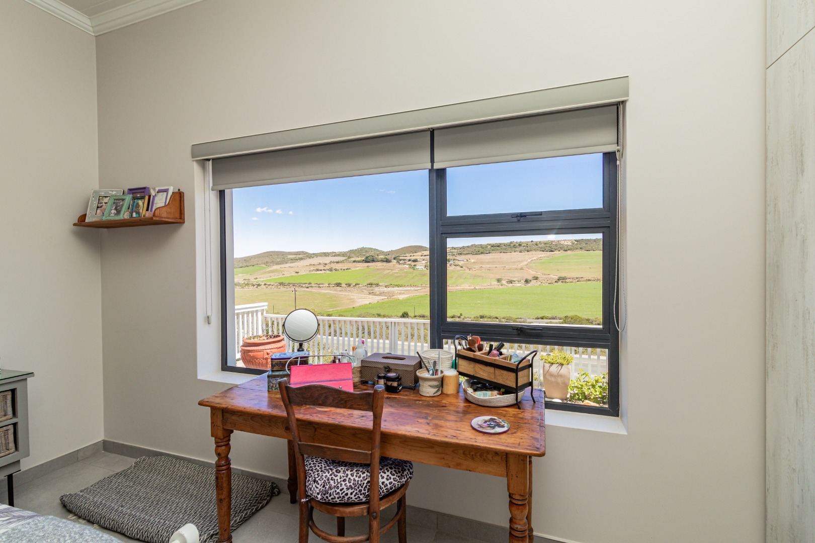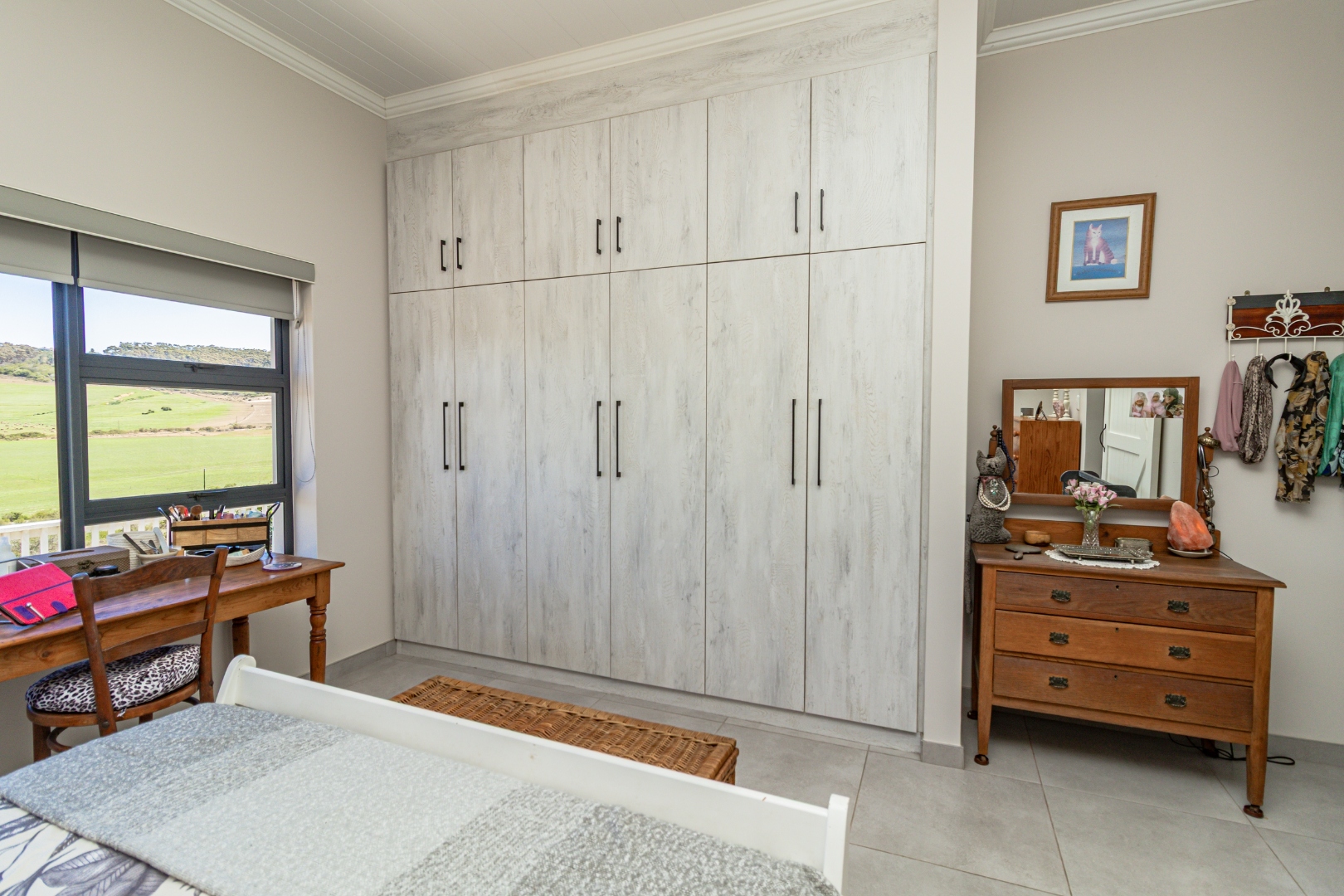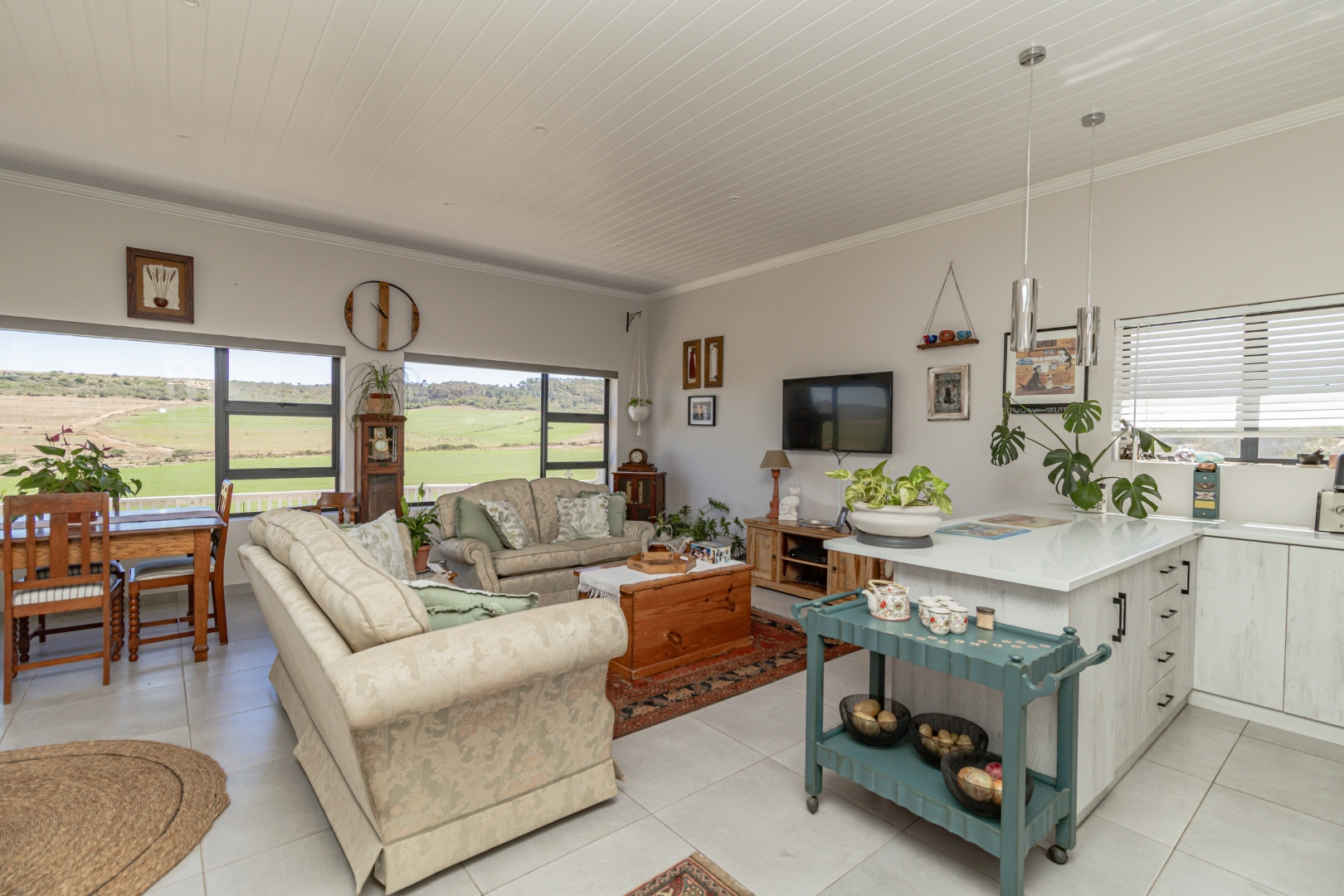 Discover this modern single-story home in the desirable coastal area of Reebok, Groot Brakrivier. Boasting a contemporary light gray exterior and a gray tiled roof, this property offers immediate curb appeal. Enjoy panoramic scenic views of expansive green fields and distant rolling hills, providing a tranquil backdrop to everyday living. Reebok offers a serene coastal lifestyle, perfect for those seeking peace and natural beauty.