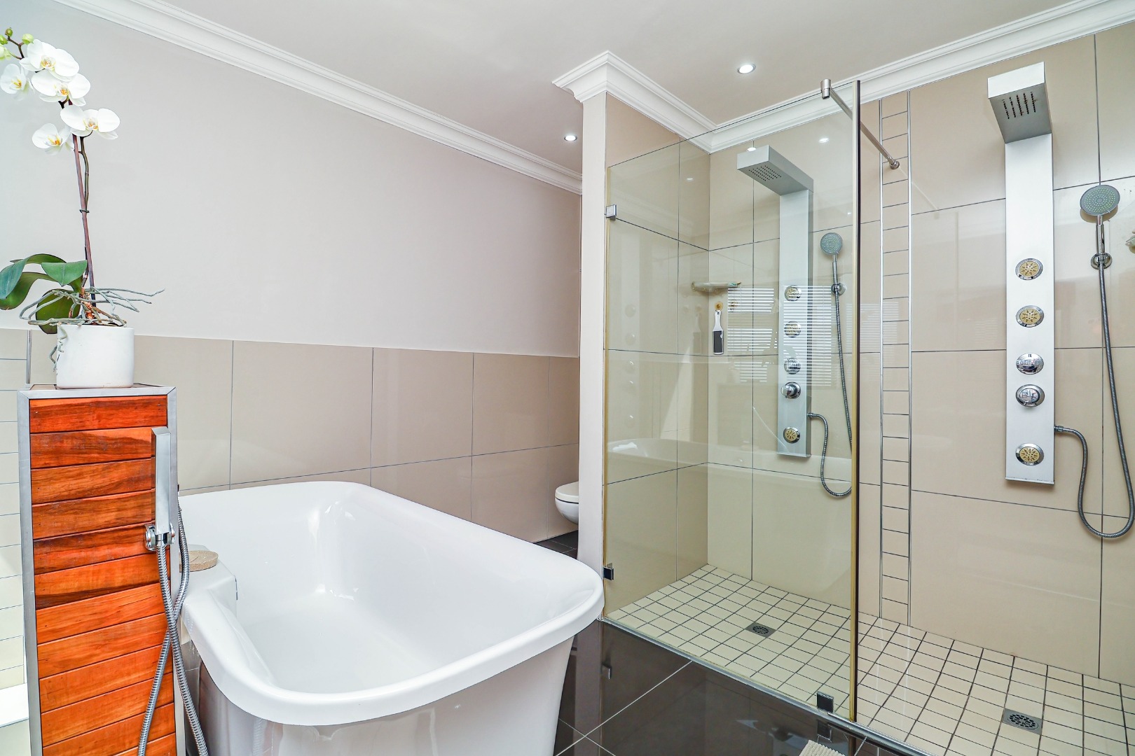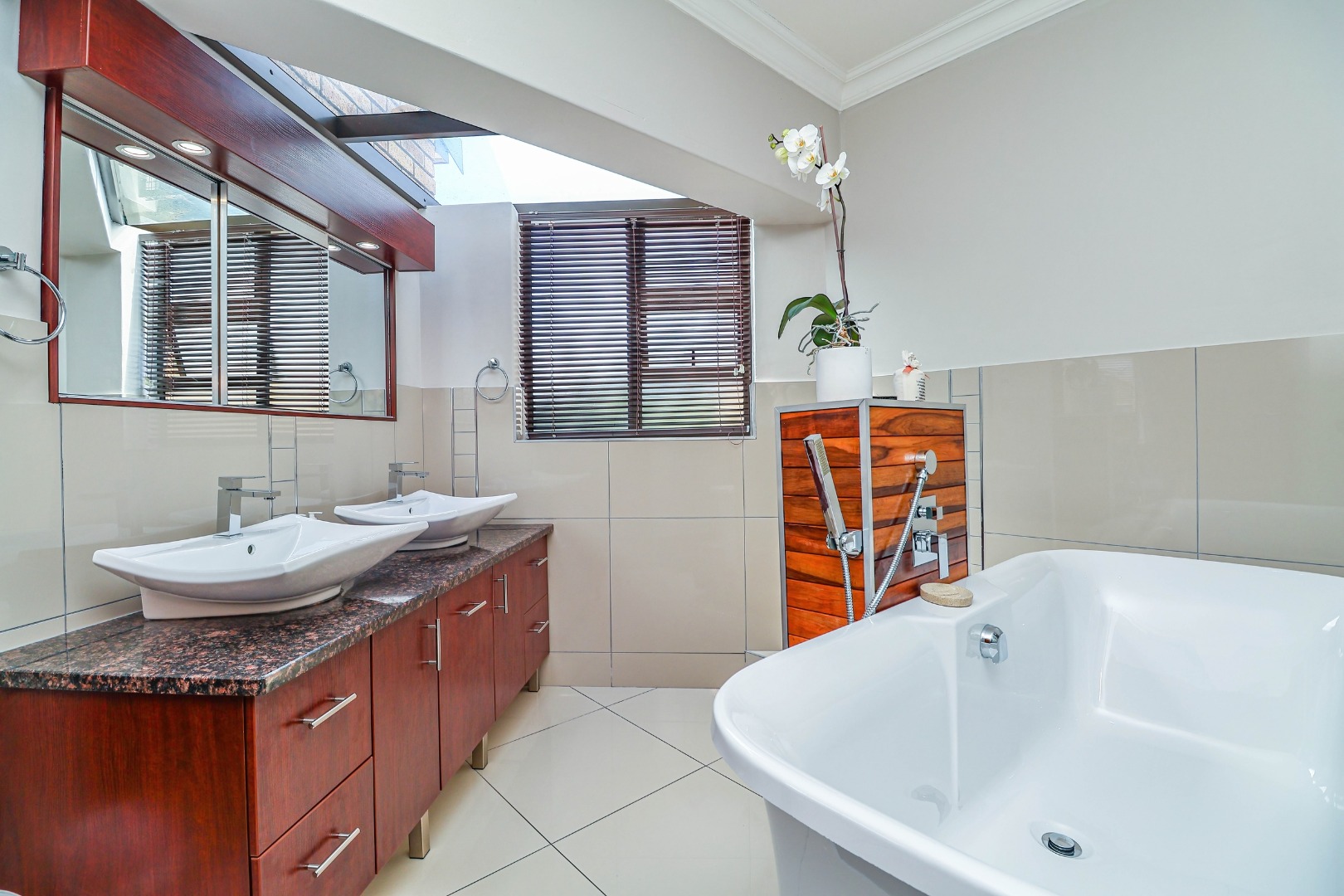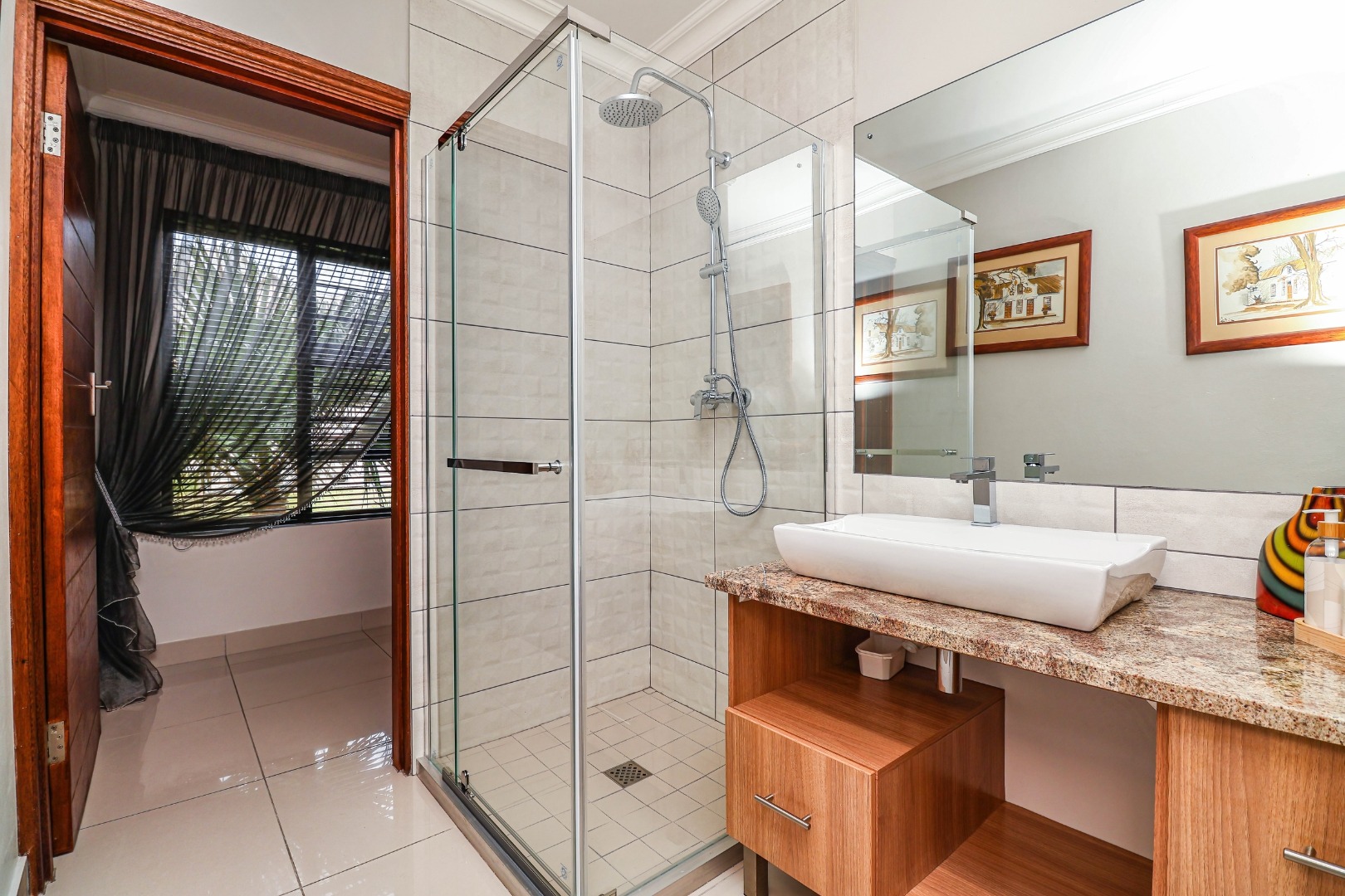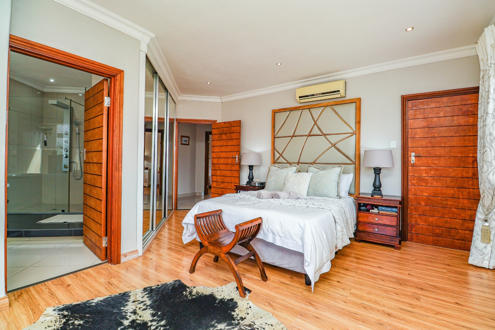 This expansive estate provides seven luxurious bedrooms, each a private sanctuary, complemented by seven exquisitely appointed bathrooms, six of which are en-suite, alongside a convenient guest toilet. The main suite features with a walk-in wardrobe, double vanity and a double shower in the luxurious ensuite bathroom.
