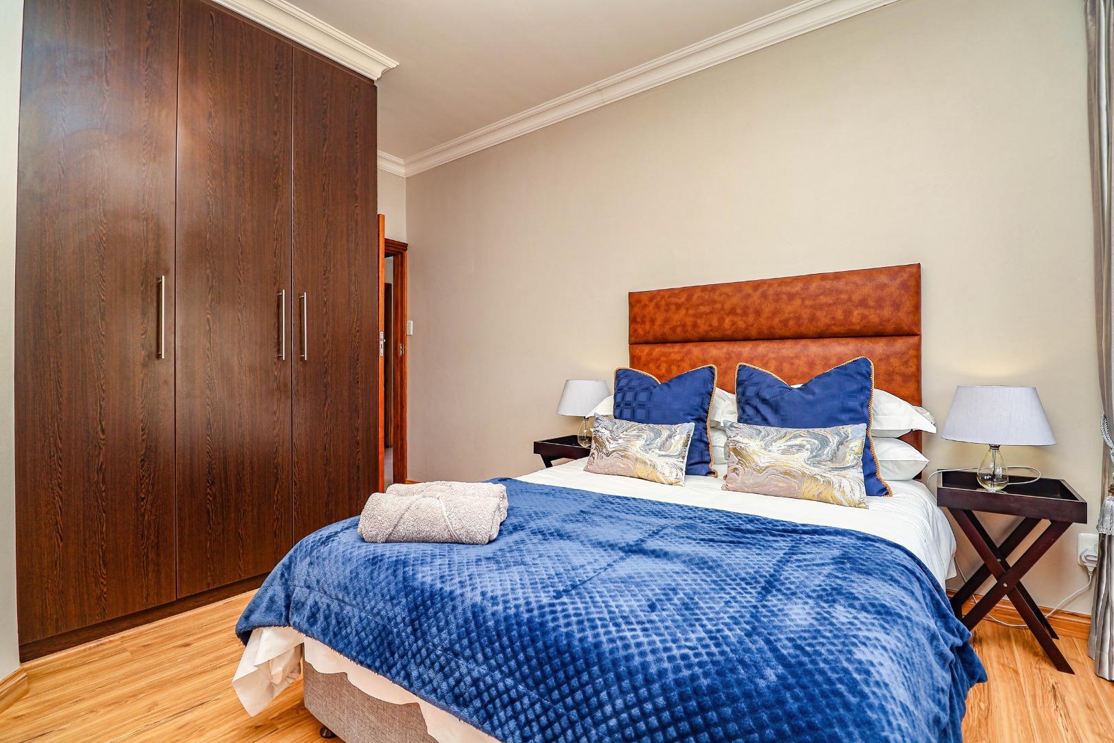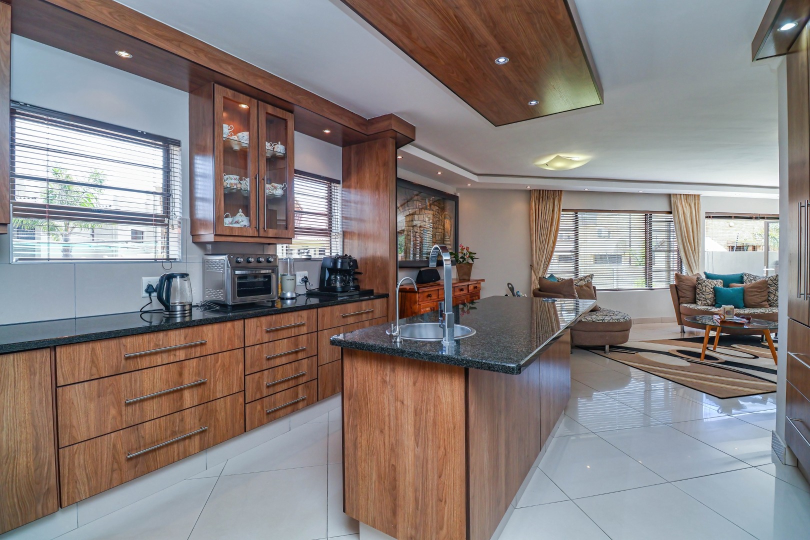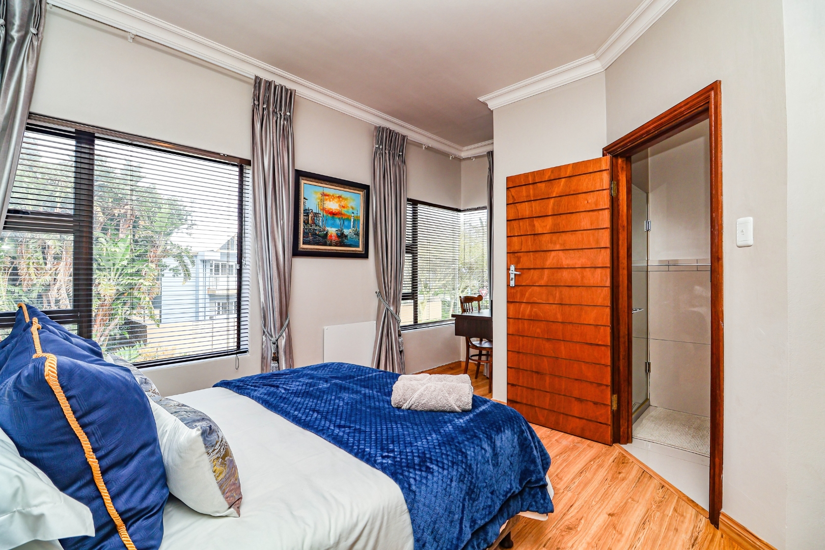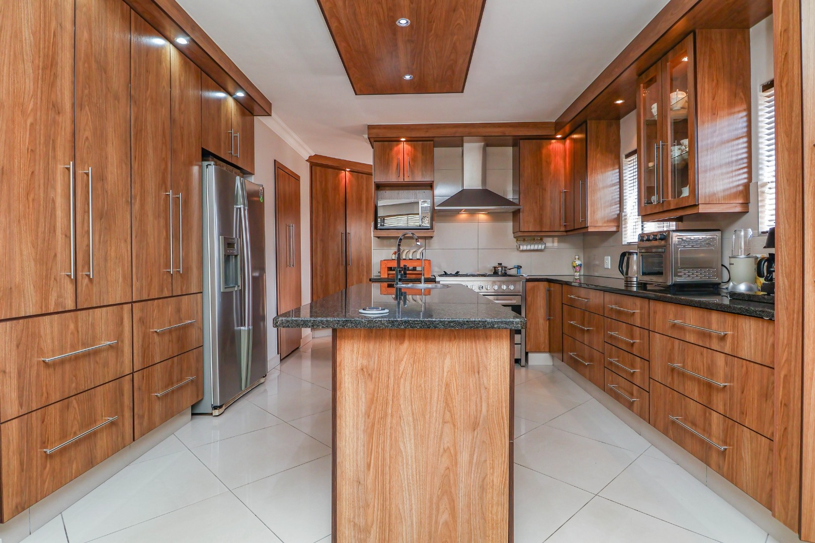 Outdoor living is equally sublime, with multiple balconies, a spacious patio, and a lapa providing idyllic settings for relaxation and al fresco dining. The charming lapa offers a shaded retreat, perfect for enjoying the South African climate. The meticulously maintained garden, complete with an irrigation system and sprinklers, ensures lush greenery year-round. The property is totally walled, providing enhanced privacy and security, further bolstered by an alarm system and intercom. Pets are welcome, making this a truly inclusive family home.