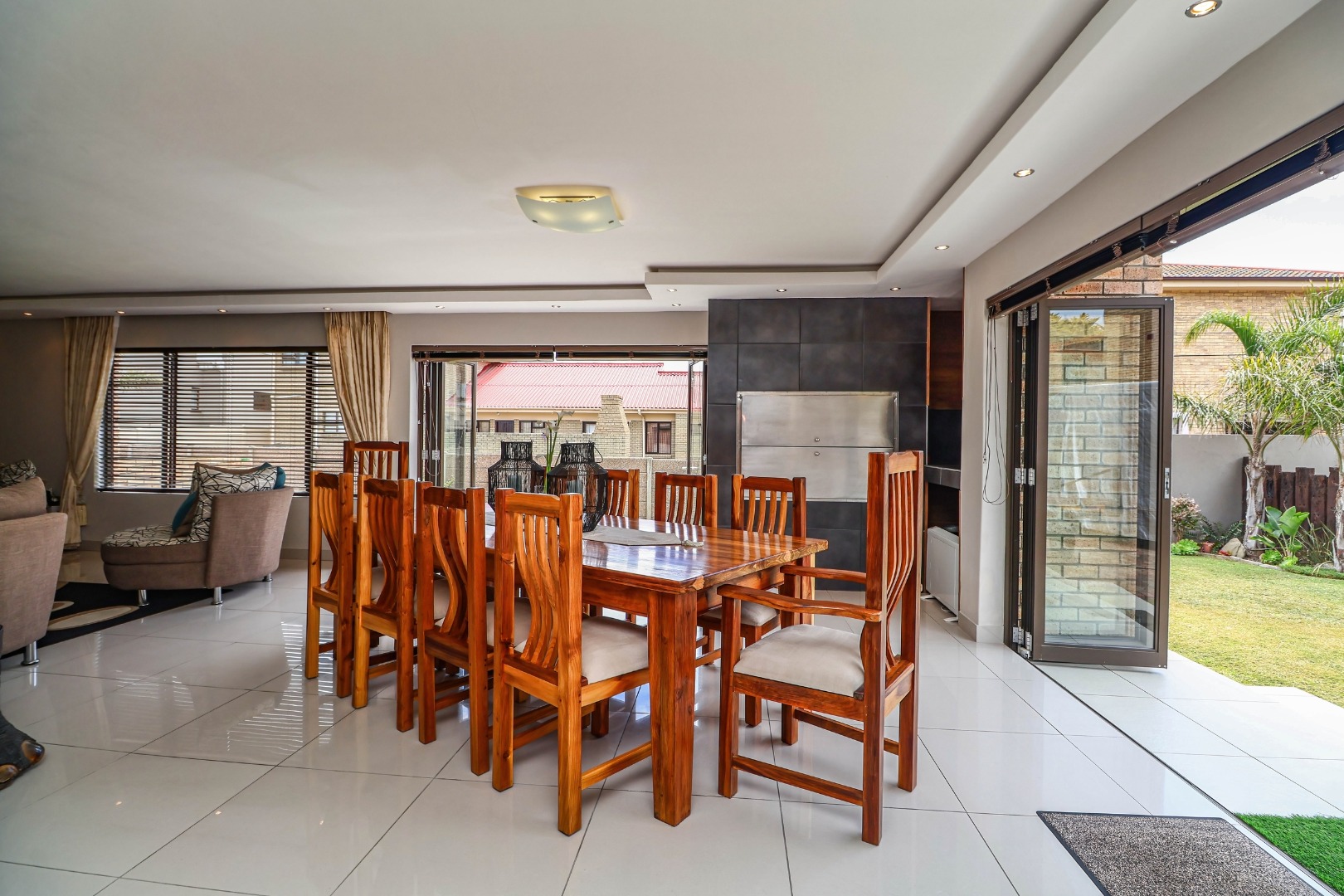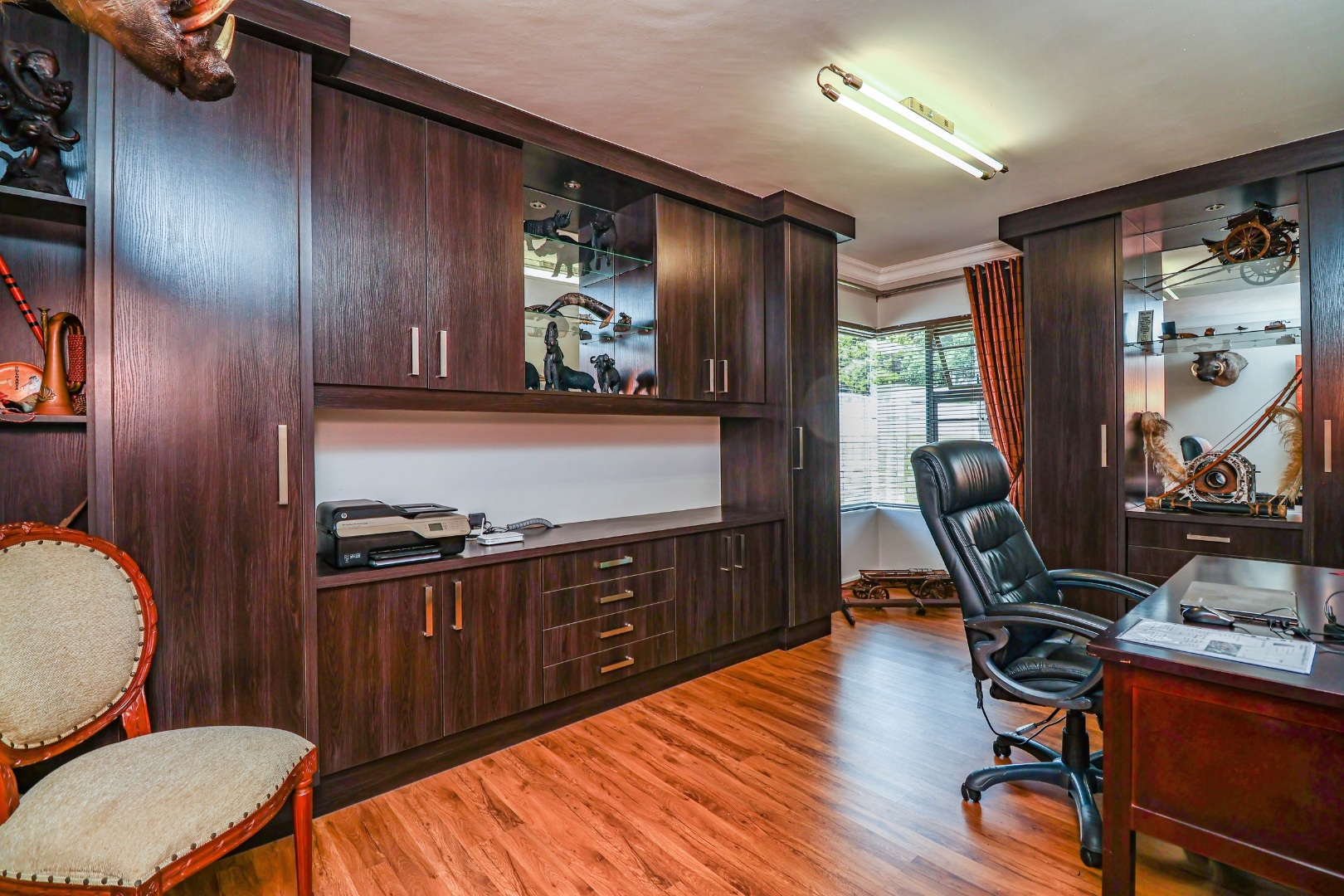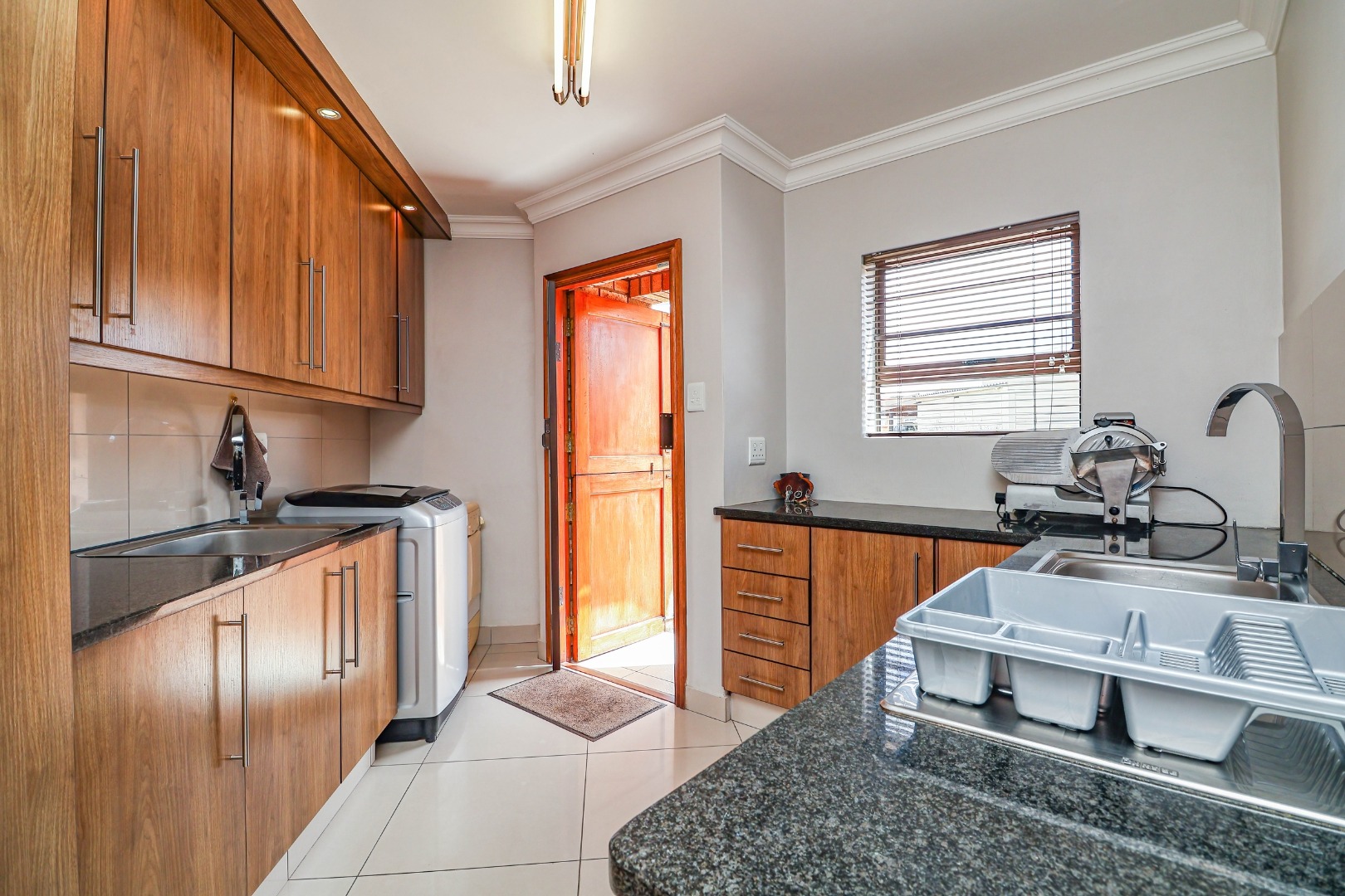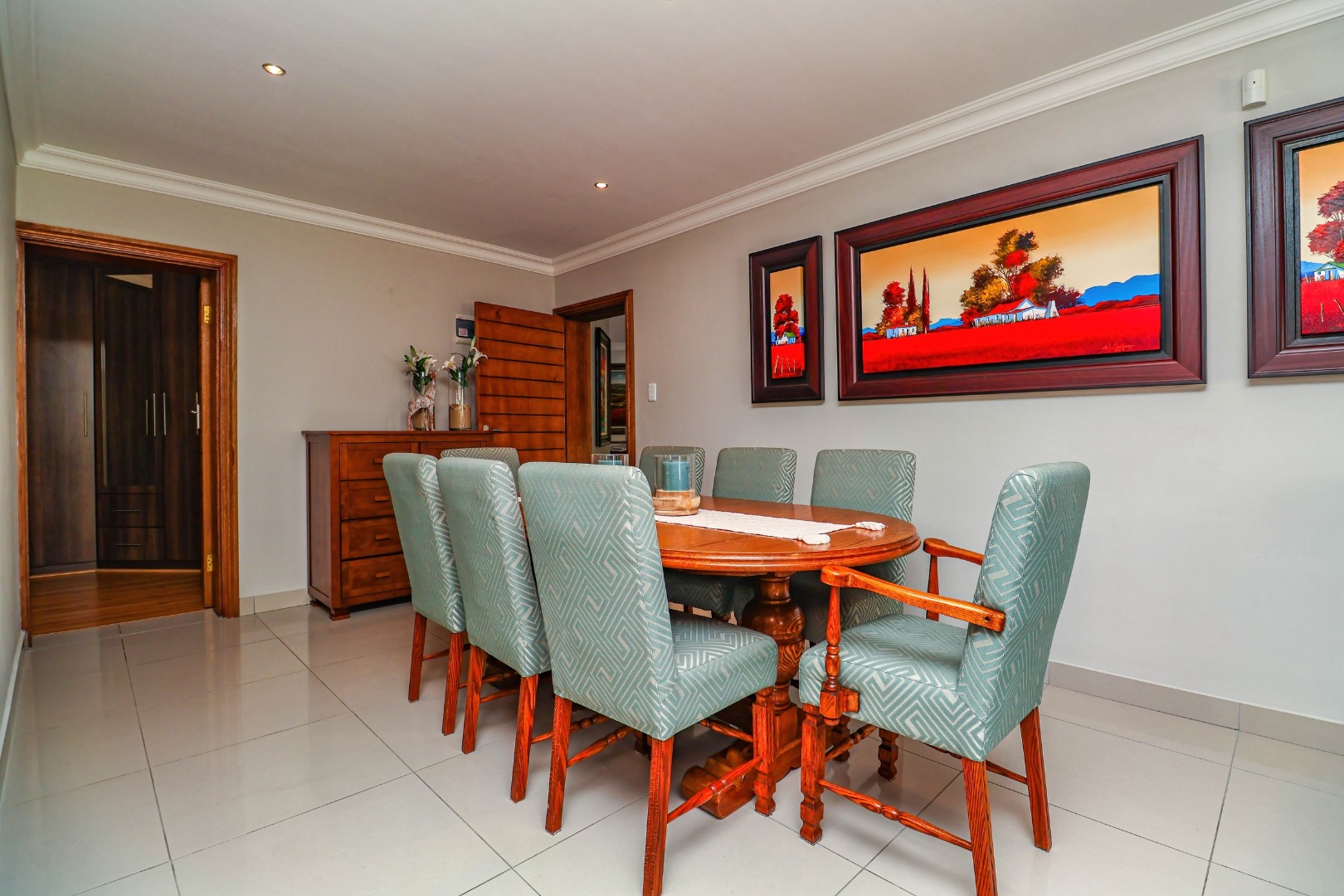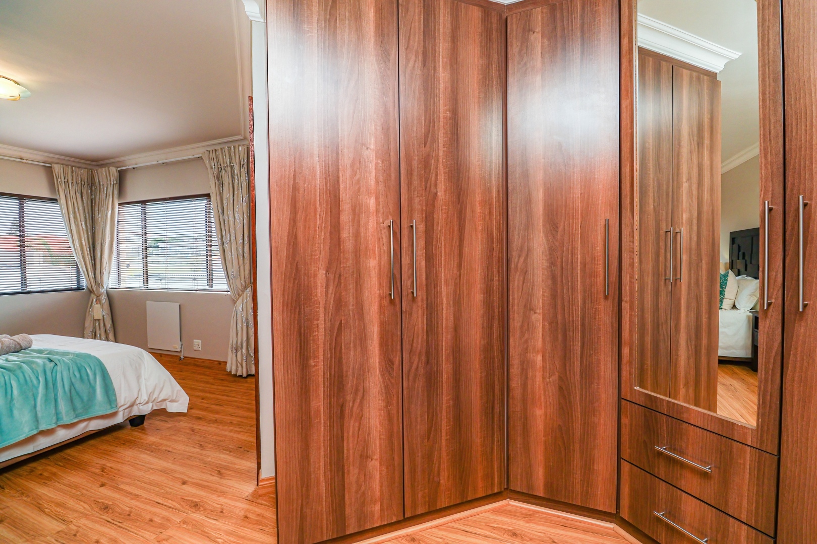 Outdoor living is equally sublime, with multiple balconies, a spacious patio, and a lapa providing idyllic settings for relaxation and al fresco dining. The charming lapa offers a shaded retreat, perfect for enjoying the South African climate. The meticulously maintained garden, complete with an irrigation system and sprinklers, ensures lush greenery year-round. The property is totally walled, providing enhanced privacy and security, further bolstered by an alarm system and intercom. Pets are welcome, making this a truly inclusive family home.
