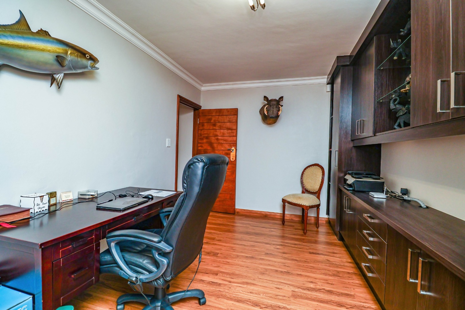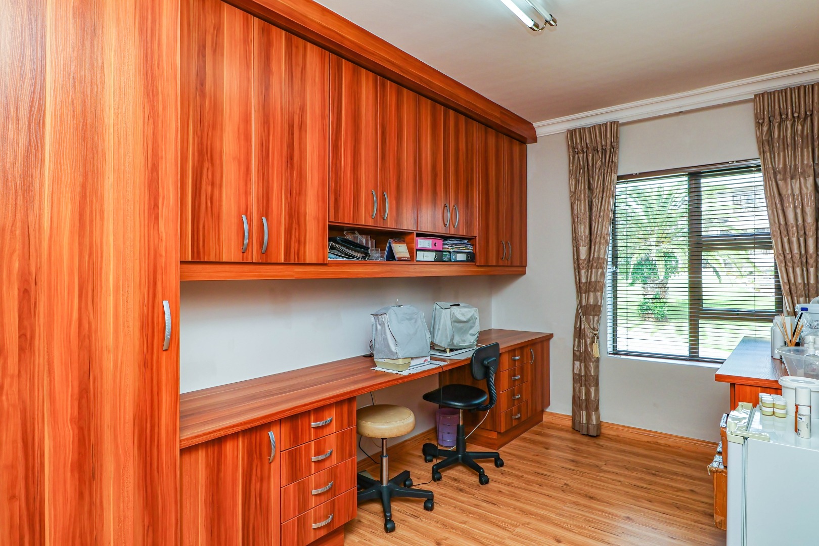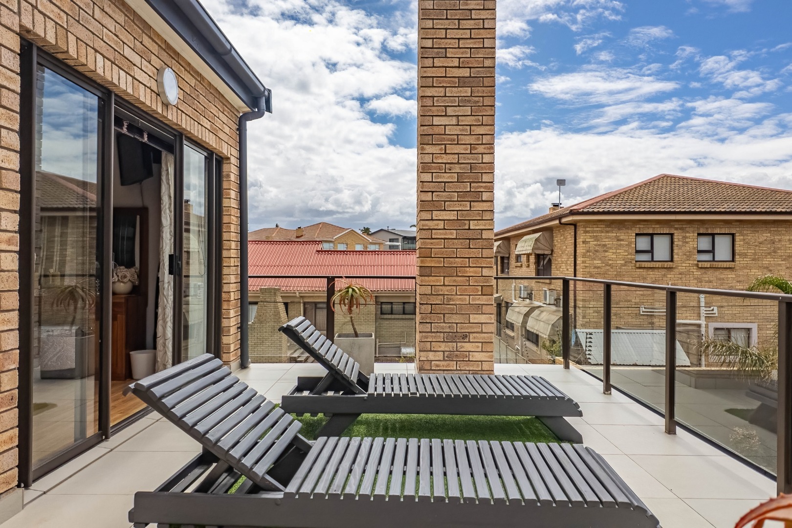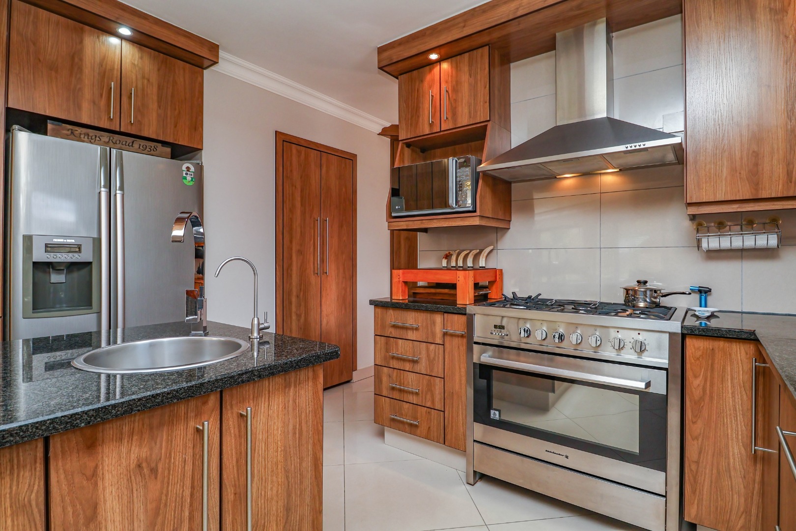 Outdoor living is equally sublime, with multiple balconies, a spacious patio, and a lapa providing idyllic settings for relaxation and al fresco dining. The charming lapa offers a shaded retreat, perfect for enjoying the South African climate. The meticulously maintained garden, complete with an irrigation system and sprinklers, ensures lush greenery year-round. The property is totally walled, providing enhanced privacy and security, further bolstered by an alarm system and intercom. Pets are welcome, making this a truly inclusive family home.