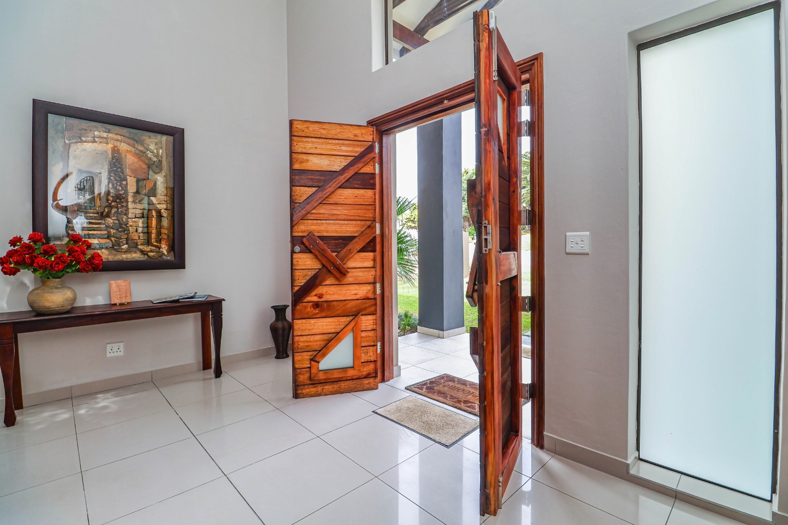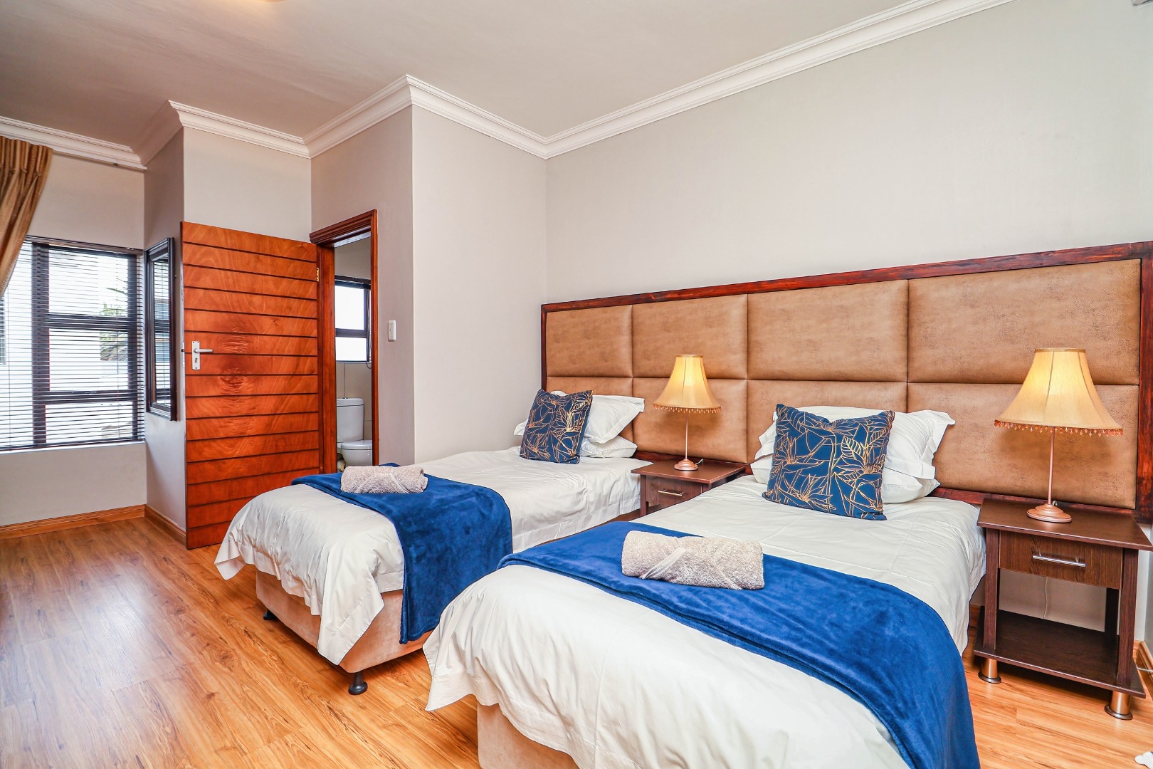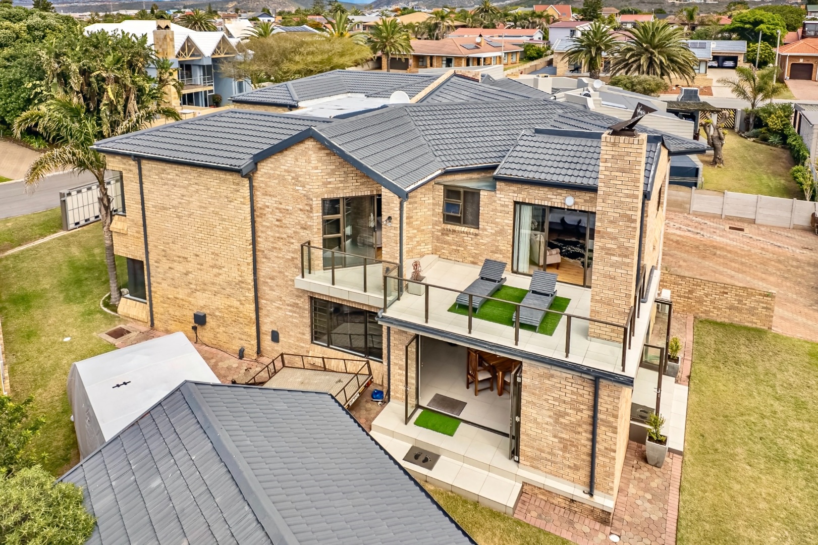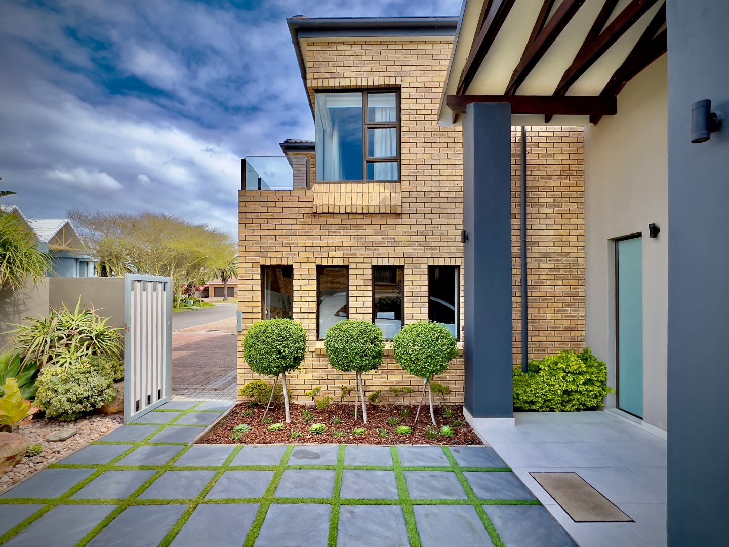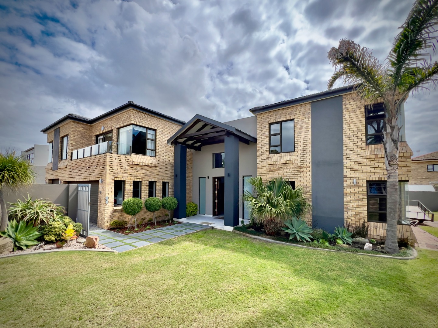 Nestled in the esteemed coastal enclave of Bayview, Hartenbos, this magnificent residence epitomises sophisticated living, offering an unparalleled blend of contemporary design and opulent comfort. From the moment of arrival, the property captivates with its striking modern architecture, featuring a harmonious fusion of light brick and elegant grey accents. A grand recessed entrance, flanked by substantial pillars and meticulously manicured landscaping, including a patterned walkway, sets a tone of refined luxury. The expansive paved driveway leads to a generous four-car garage, ensuring ample secure parking for residents and guests alike.