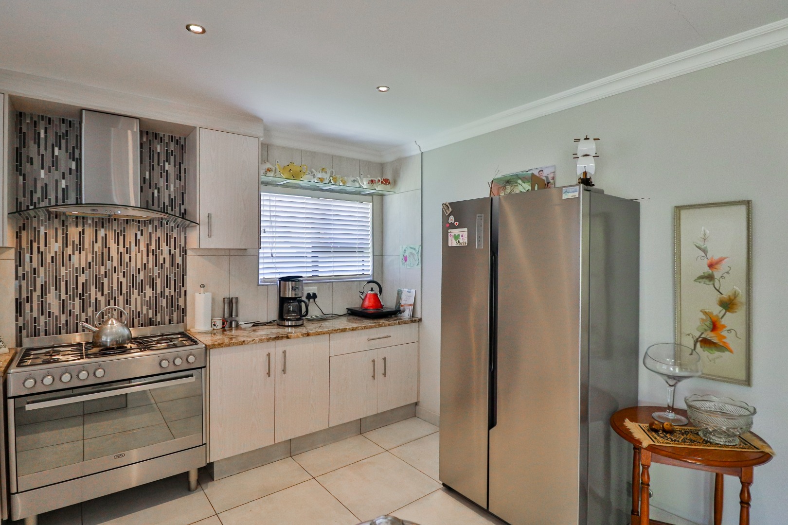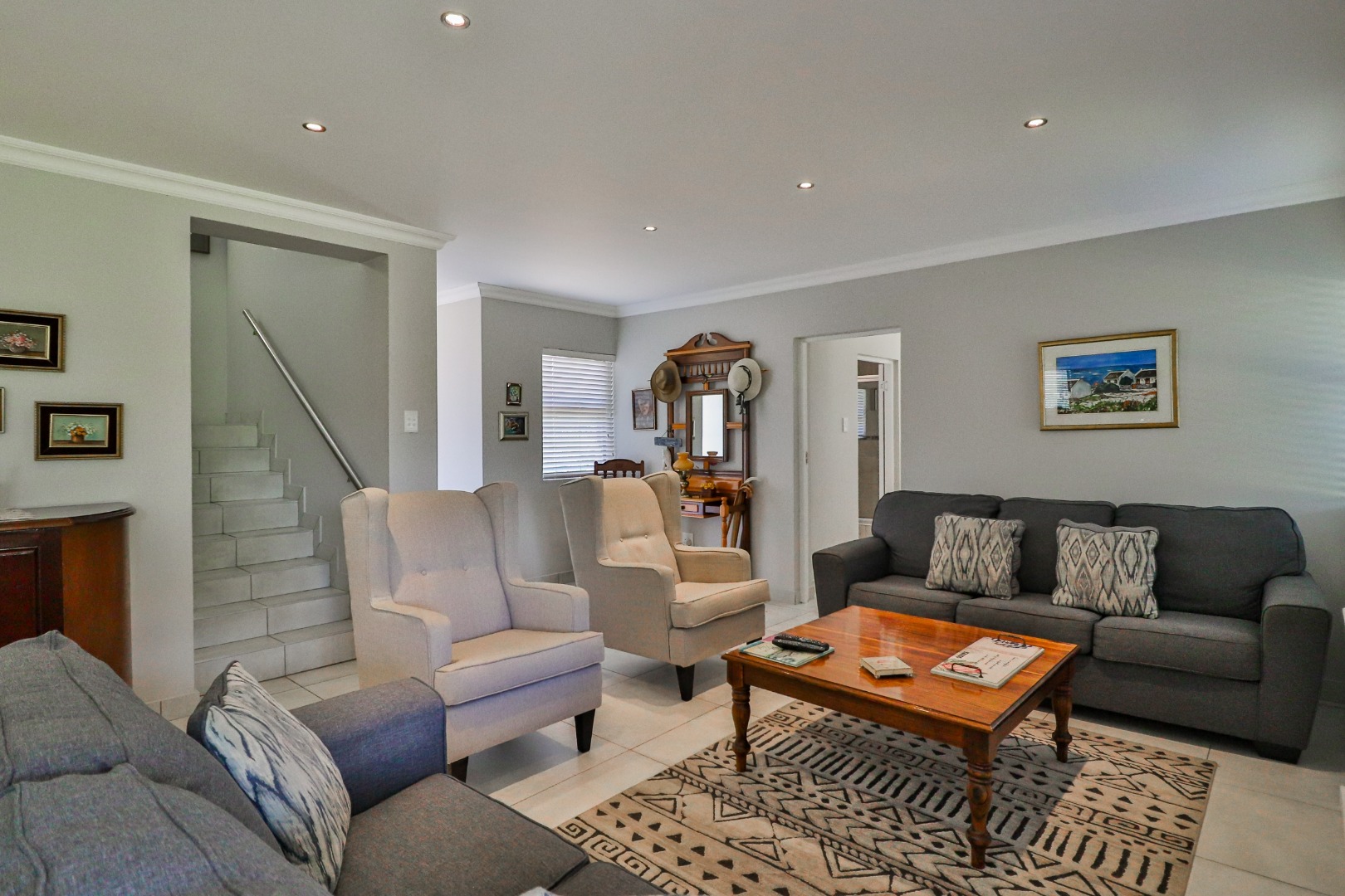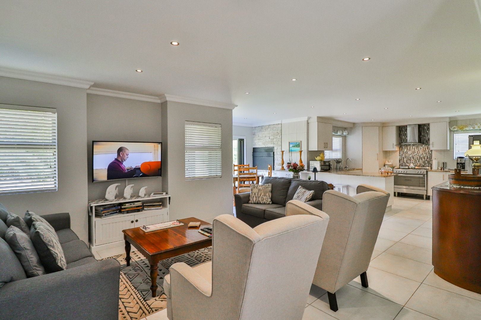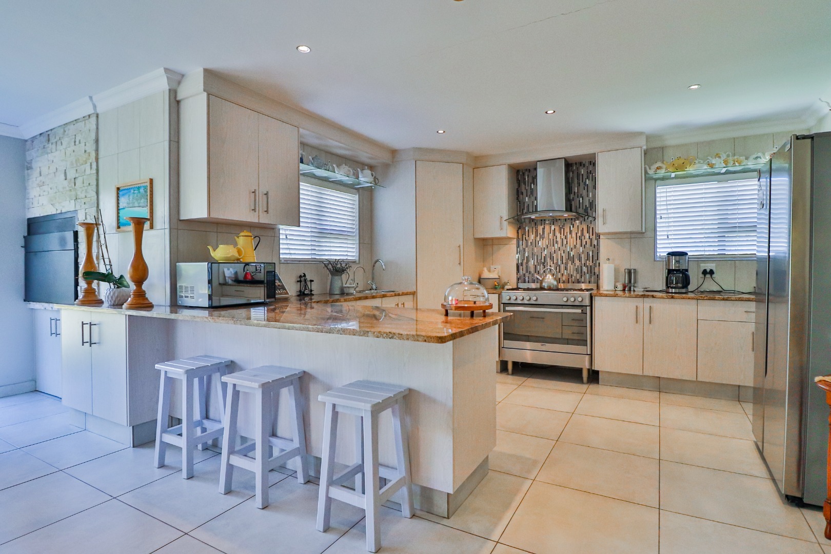 The well-designed dual-level floorplan boasts a total of 3 bright bedrooms, 3 elegant ensuite bathrooms, a separate guest bathroom, a welcoming entrance hall, vast open plan lounge and dining room that is delightfully served with an abundance of natural light filtering through a multitude of windowpanes and stacking doors. A beautifully assigned kitchen set in quality finishes and appliances, with separate scullery and laundry area, a covered patio that flows seamlessly from the interior entertainment area with a built-in braai towards a perfectly manicured garden, extended single and automated garage with additional storage space for all your extra’s!