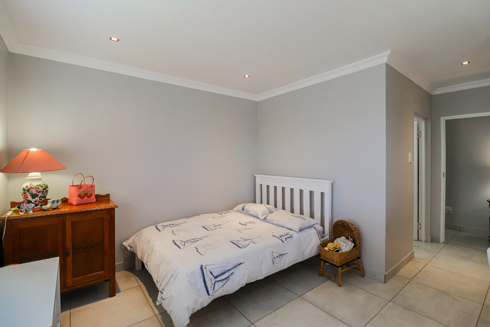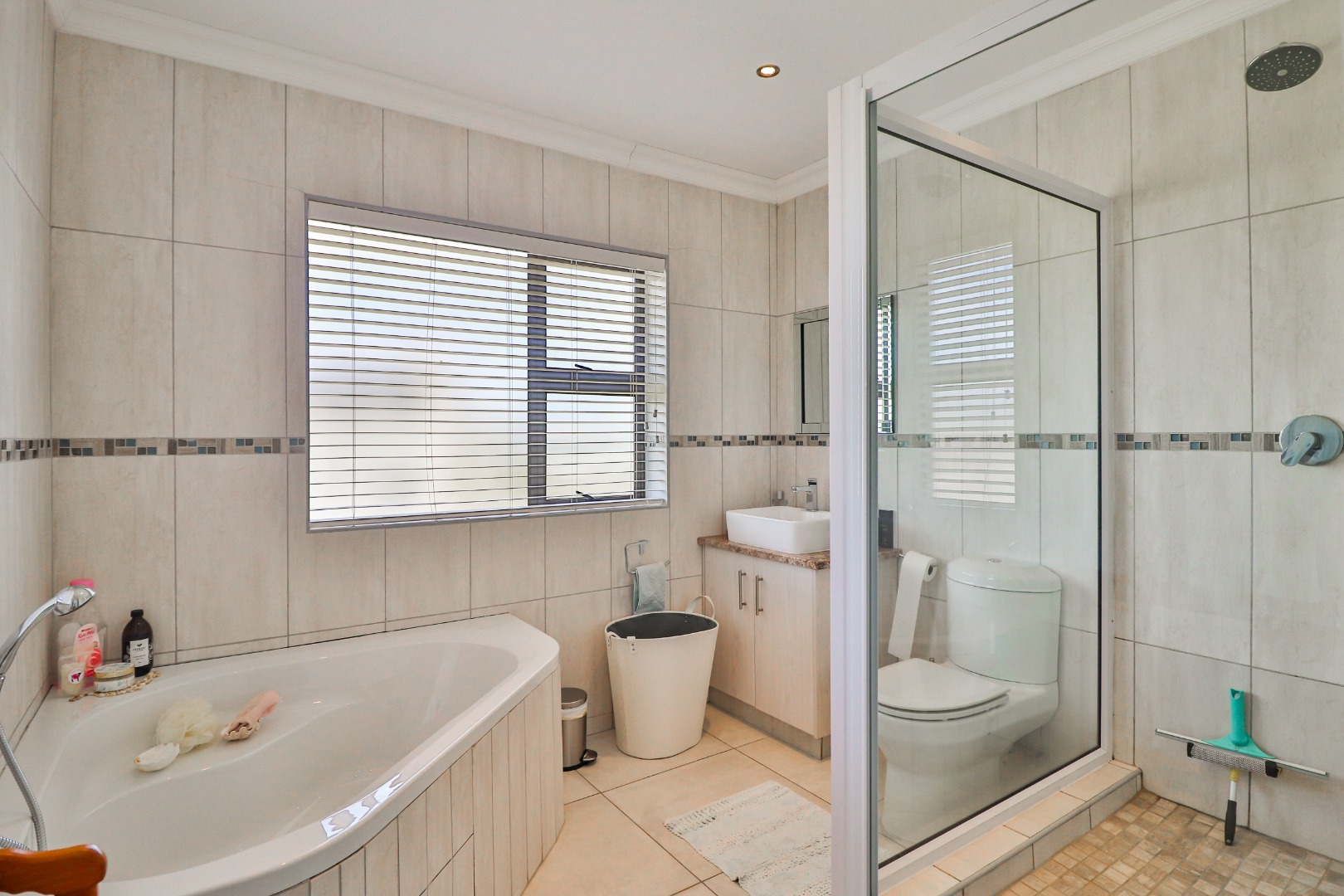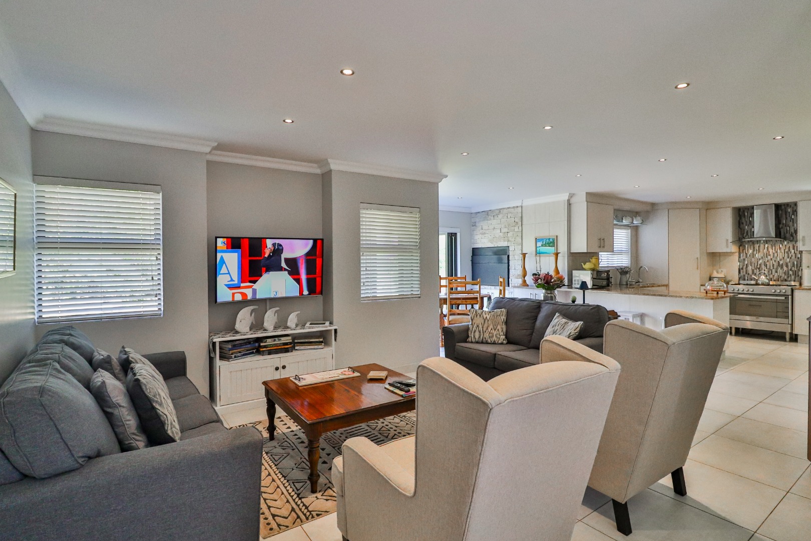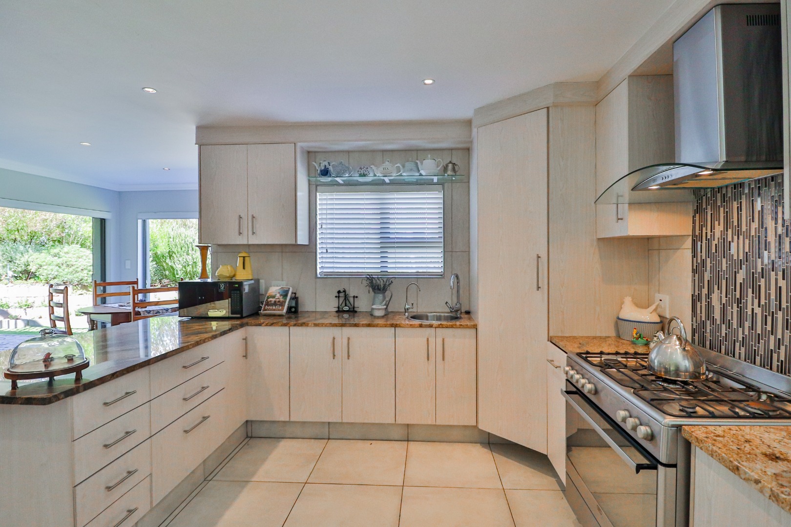 The well-designed dual-level floorplan boasts a total of 3 bright bedrooms, 3 elegant ensuite bathrooms, a separate guest bathroom, a welcoming entrance hall, vast open plan lounge and dining room that is delightfully served with an abundance of natural light filtering through a multitude of windowpanes and stacking doors. A beautifully assigned kitchen set in quality finishes and appliances, with separate scullery and laundry area, a covered patio that flows seamlessly from the interior entertainment area with a built-in braai towards a perfectly manicured garden, extended single and automated garage with additional storage space for all your extra’s!