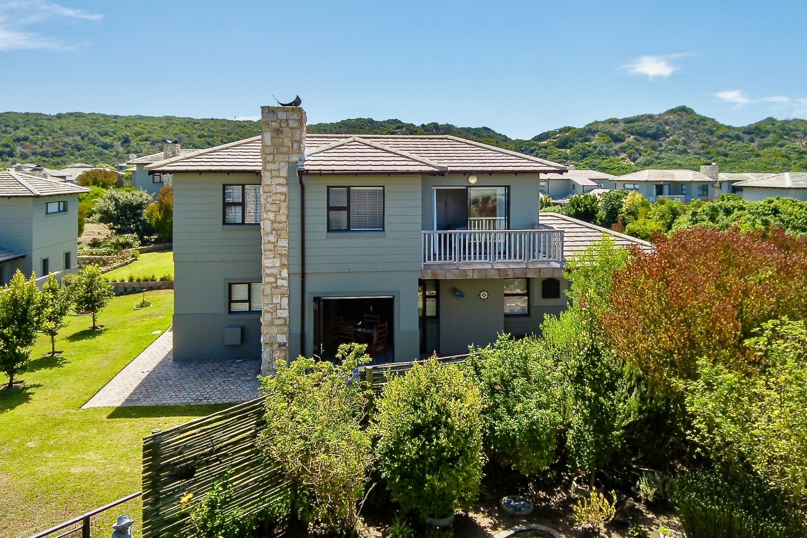 Lifestyle amenities includes a sparkling blue communal swimming pool, communal terraces with set footpaths crossing evergreen coastal fynbos, and direct beach-access from the estate.