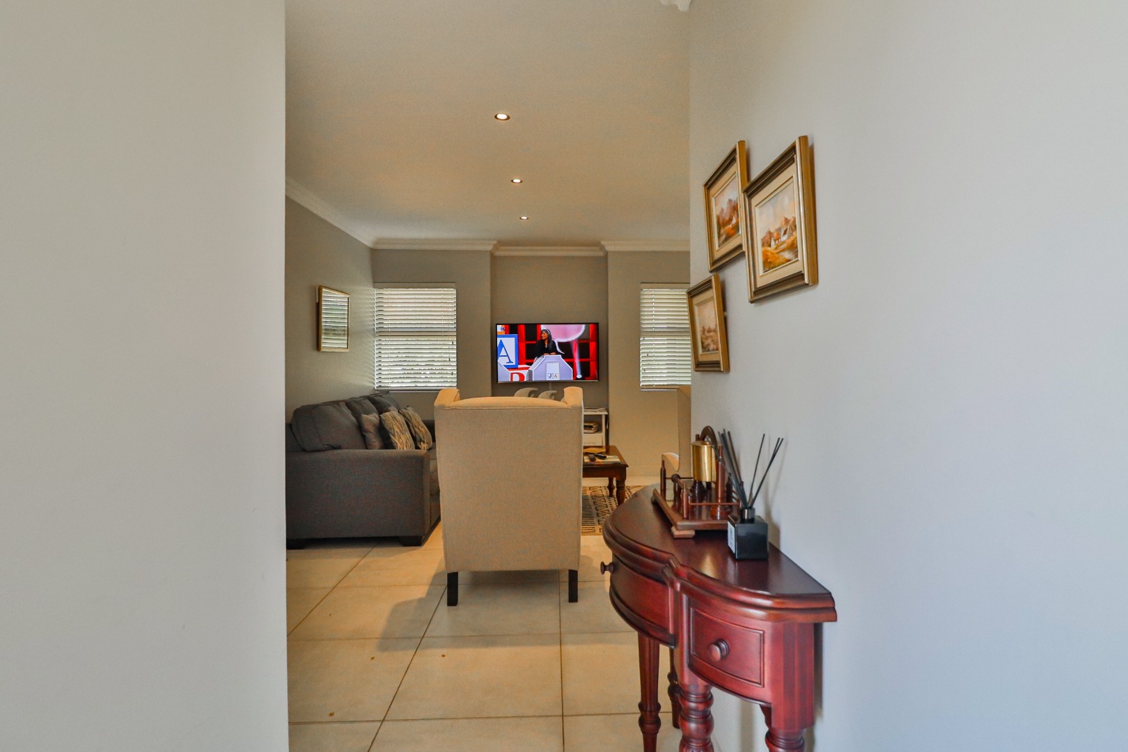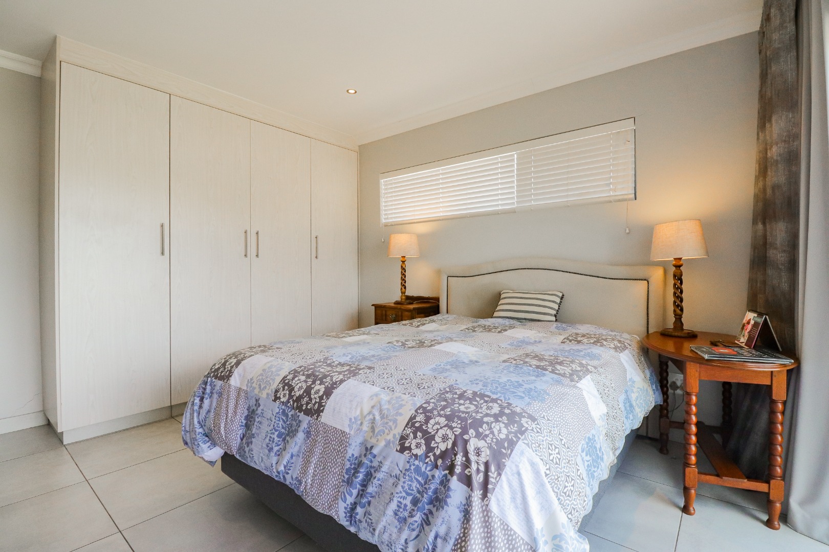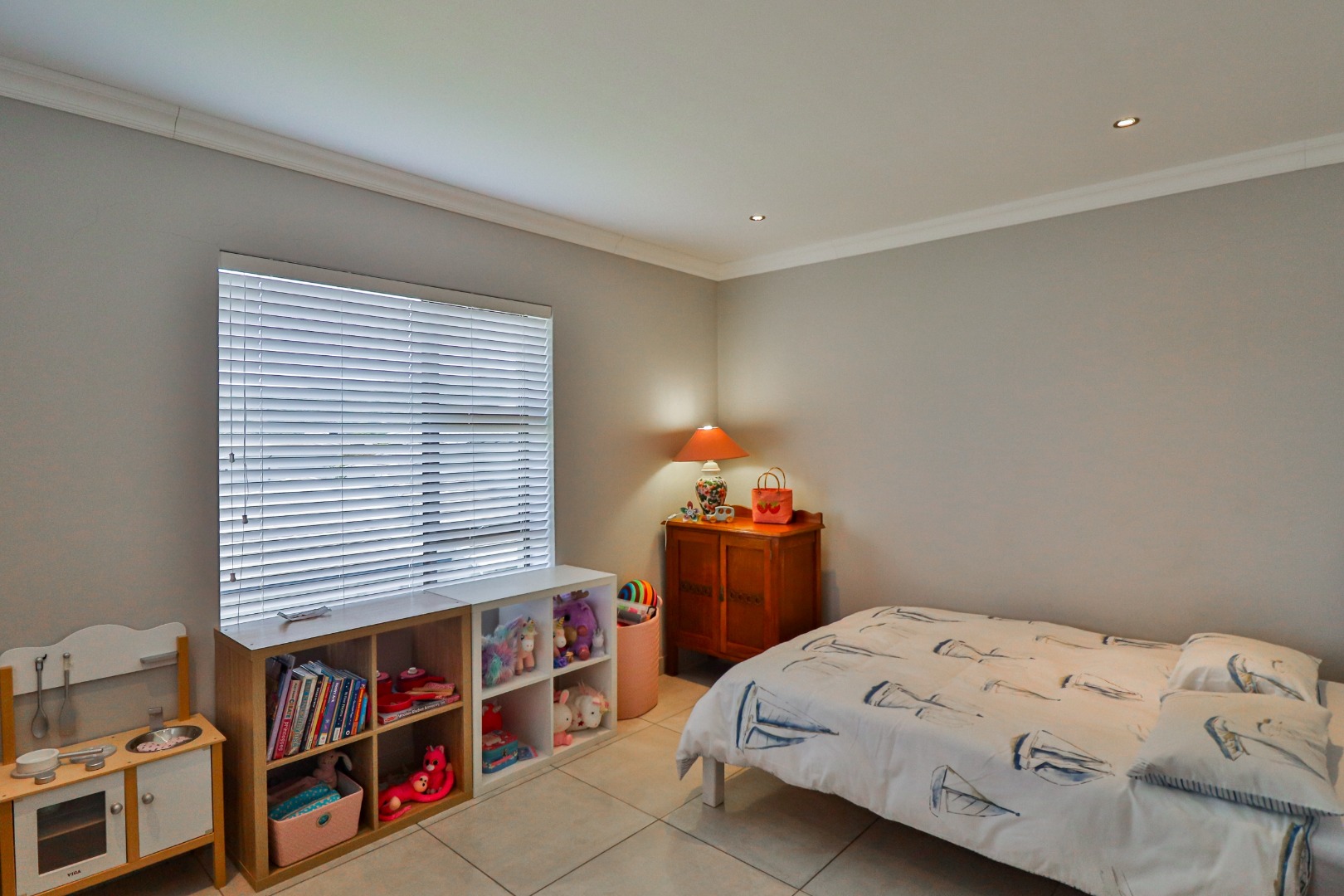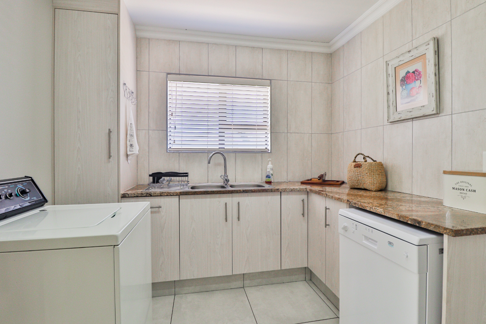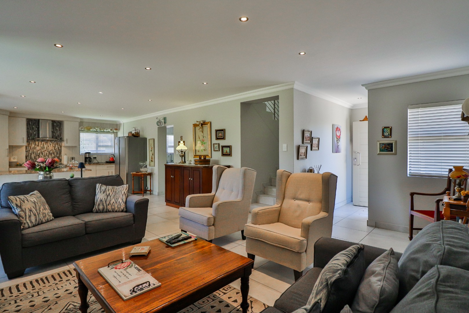The well-designed dual-level floorplan boasts a total of 3 bright bedrooms, 3 elegant ensuite bathrooms, a separate guest bathroom, a welcoming entrance hall, vast open plan lounge and dining room that is delightfully served with an abundance of natural light filtering through a multitude of windowpanes and stacking doors. A beautifully assigned kitchen set in quality finishes and appliances, with separate scullery and laundry area, a covered patio that flows seamlessly from the interior entertainment area with a built-in braai towards a perfectly manicured garden, extended single and automated garage with additional storage space for all your extra’s!