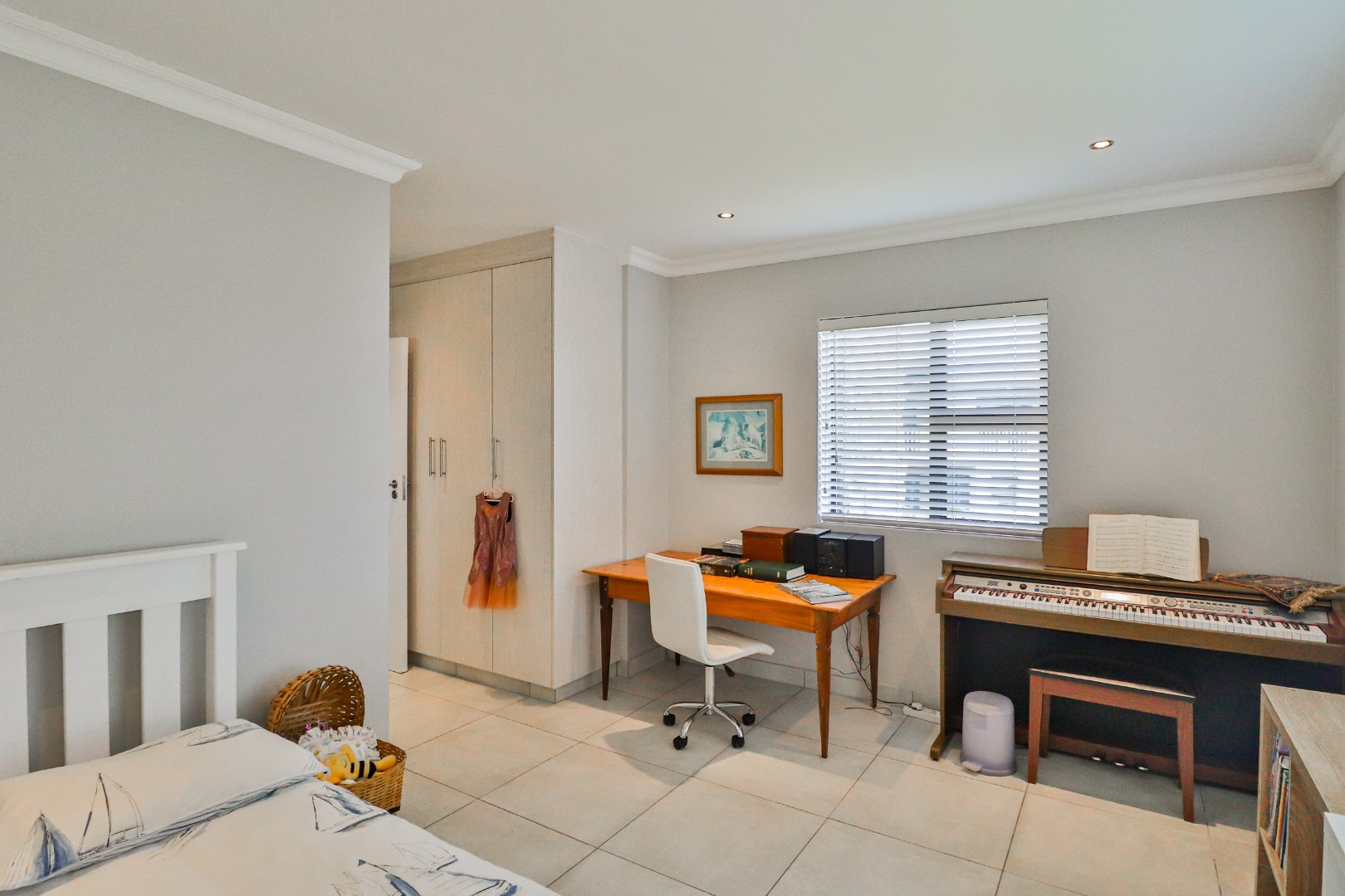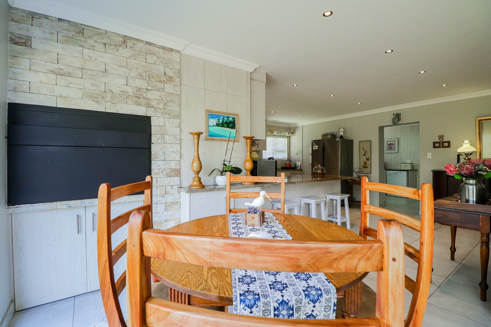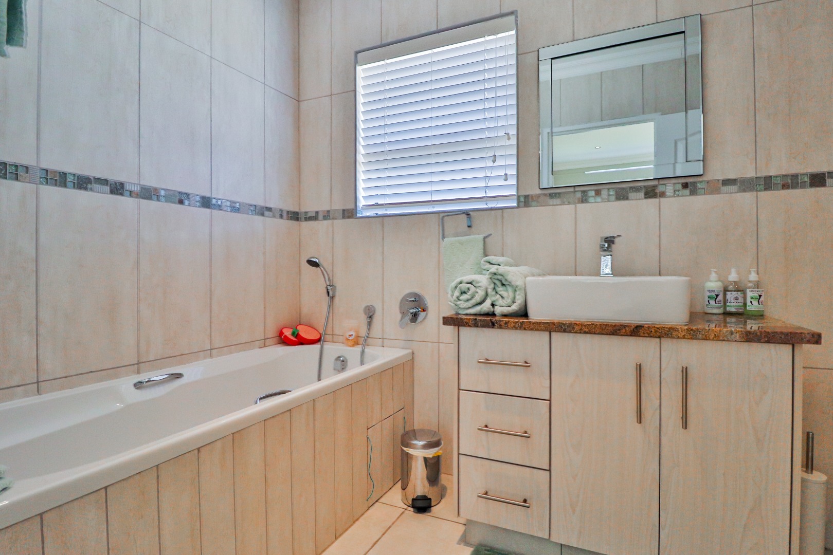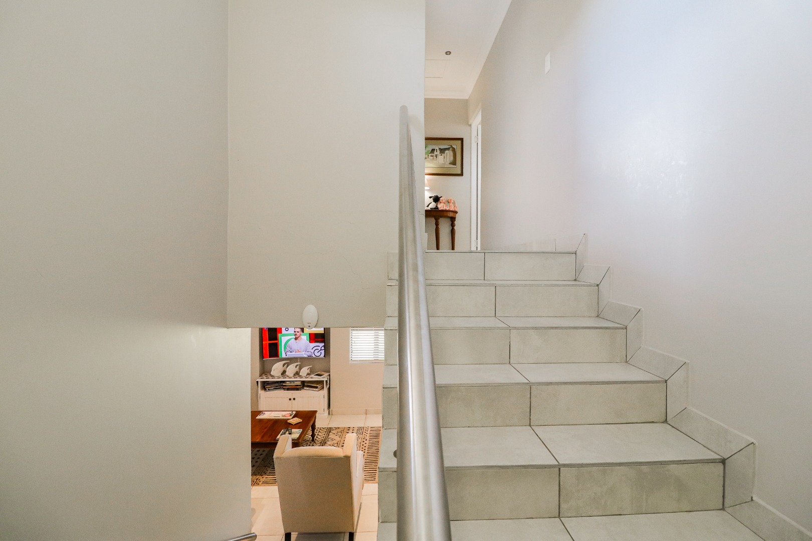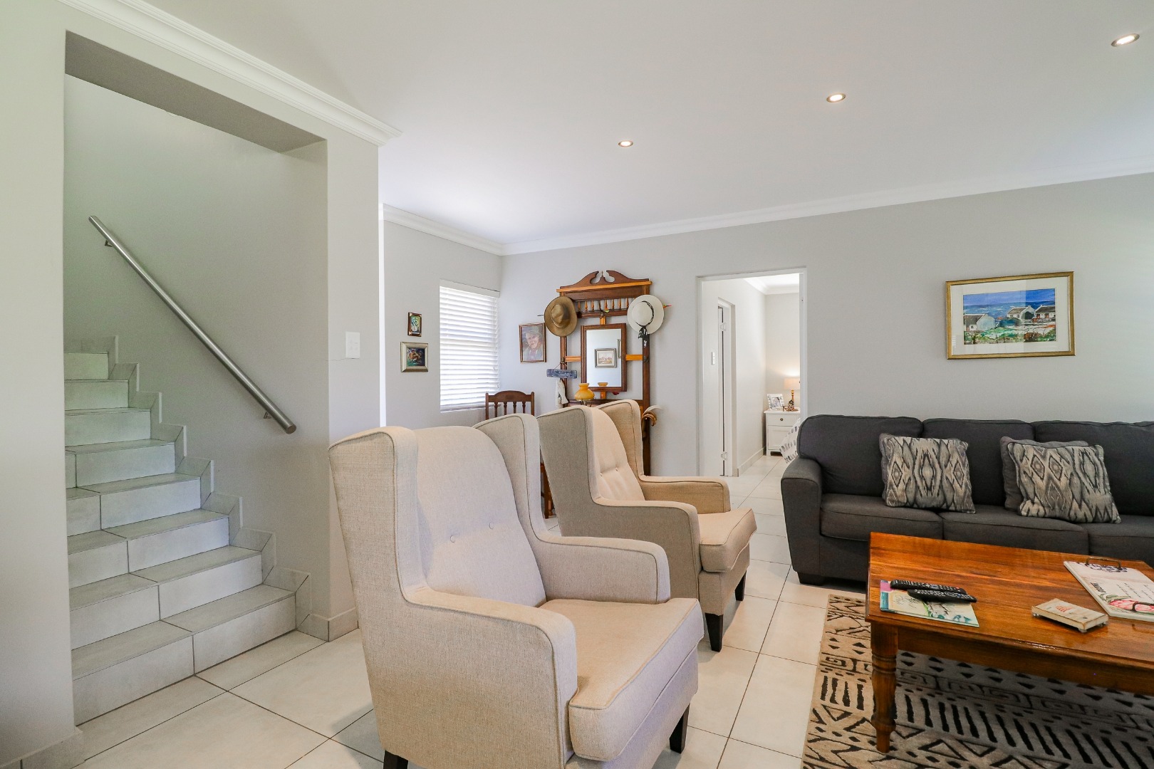 The well-designed dual-level floorplan boasts a total of 3 bright bedrooms, 3 elegant ensuite bathrooms, a separate guest bathroom, a welcoming entrance hall, vast open plan lounge and dining room that is delightfully served with an abundance of natural light filtering through a multitude of windowpanes and stacking doors. A beautifully assigned kitchen set in quality finishes and appliances, with separate scullery and laundry area, a covered patio that flows seamlessly from the interior entertainment area with a built-in braai towards a perfectly manicured garden, extended single and automated garage with additional storage space for all your extra’s!
