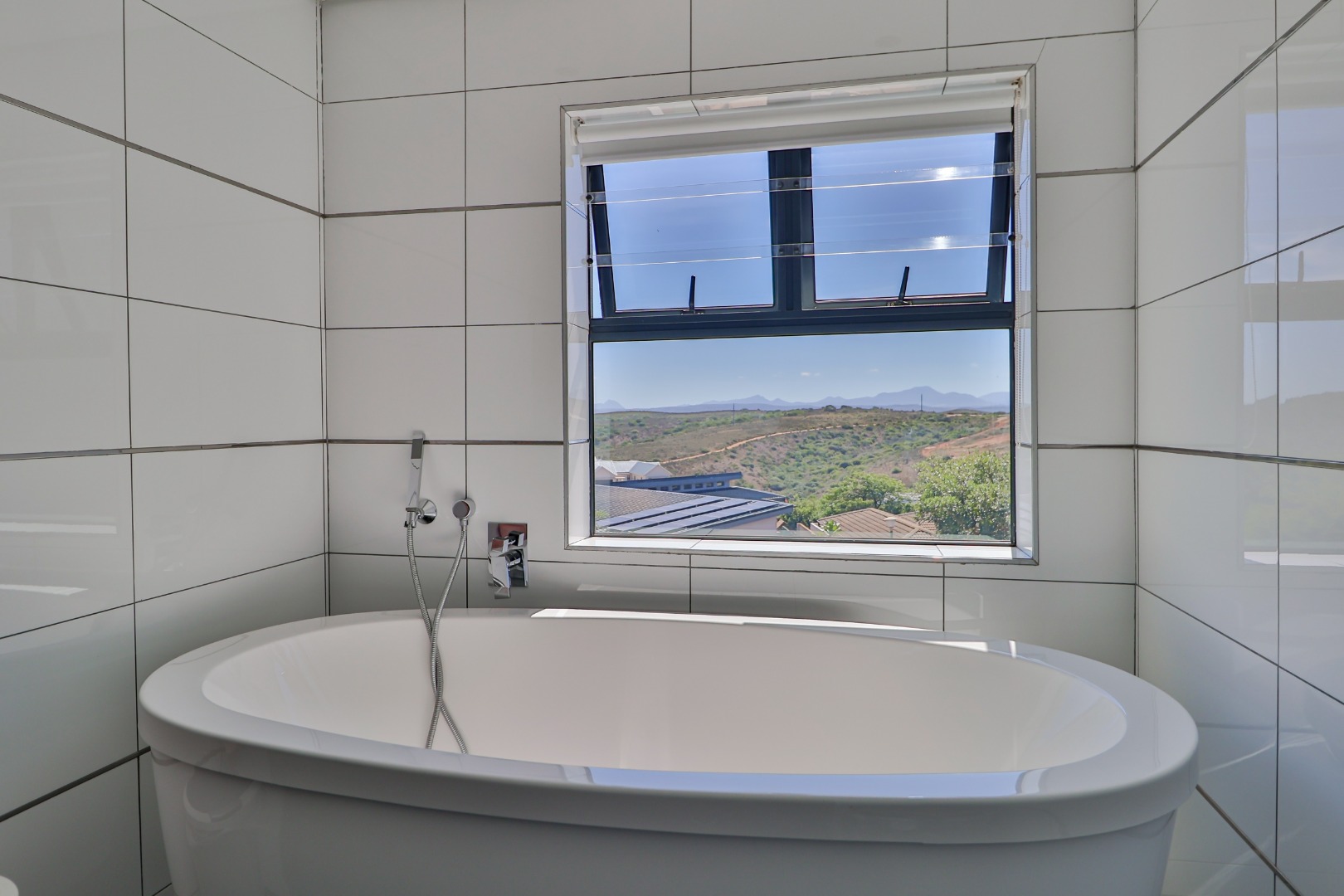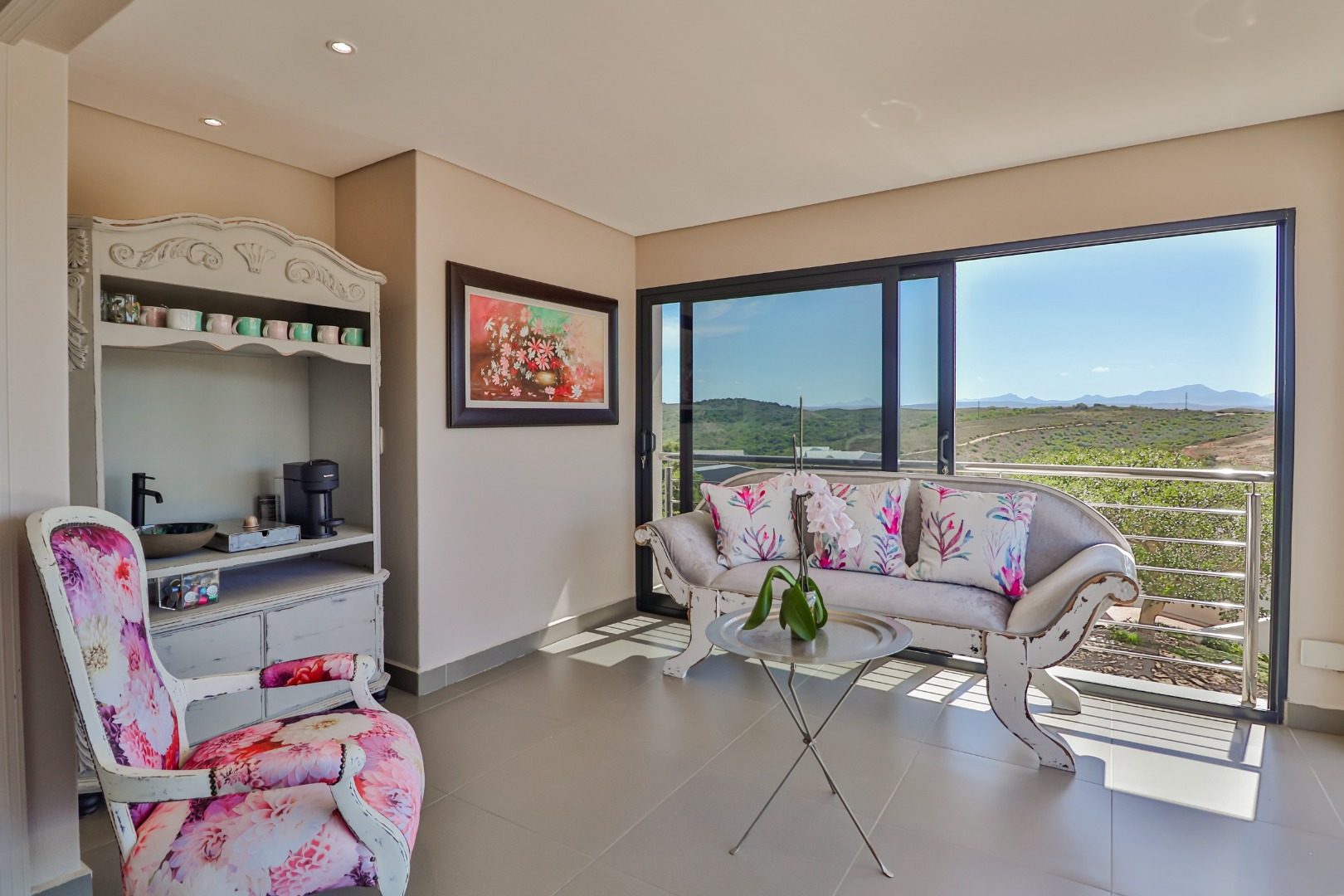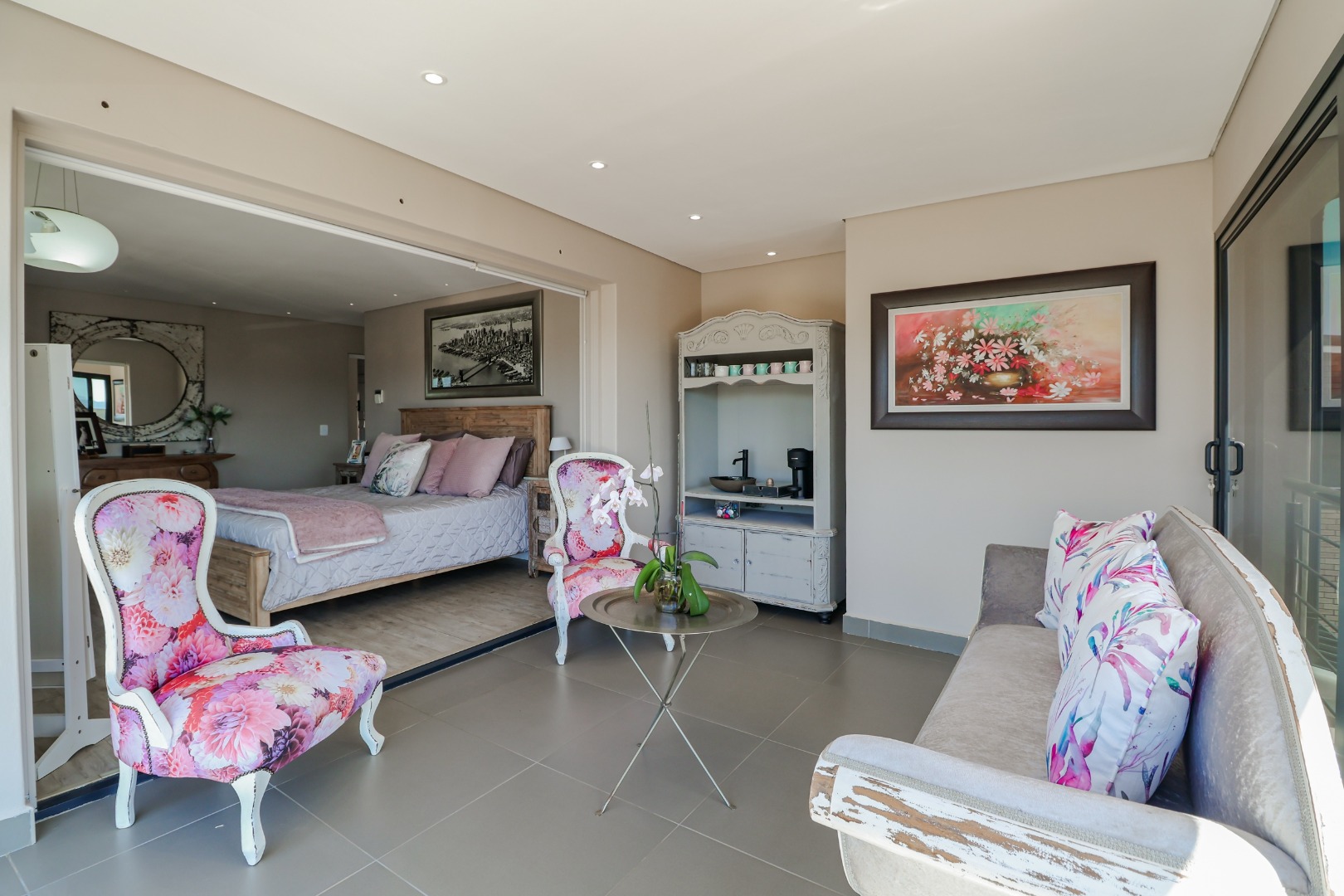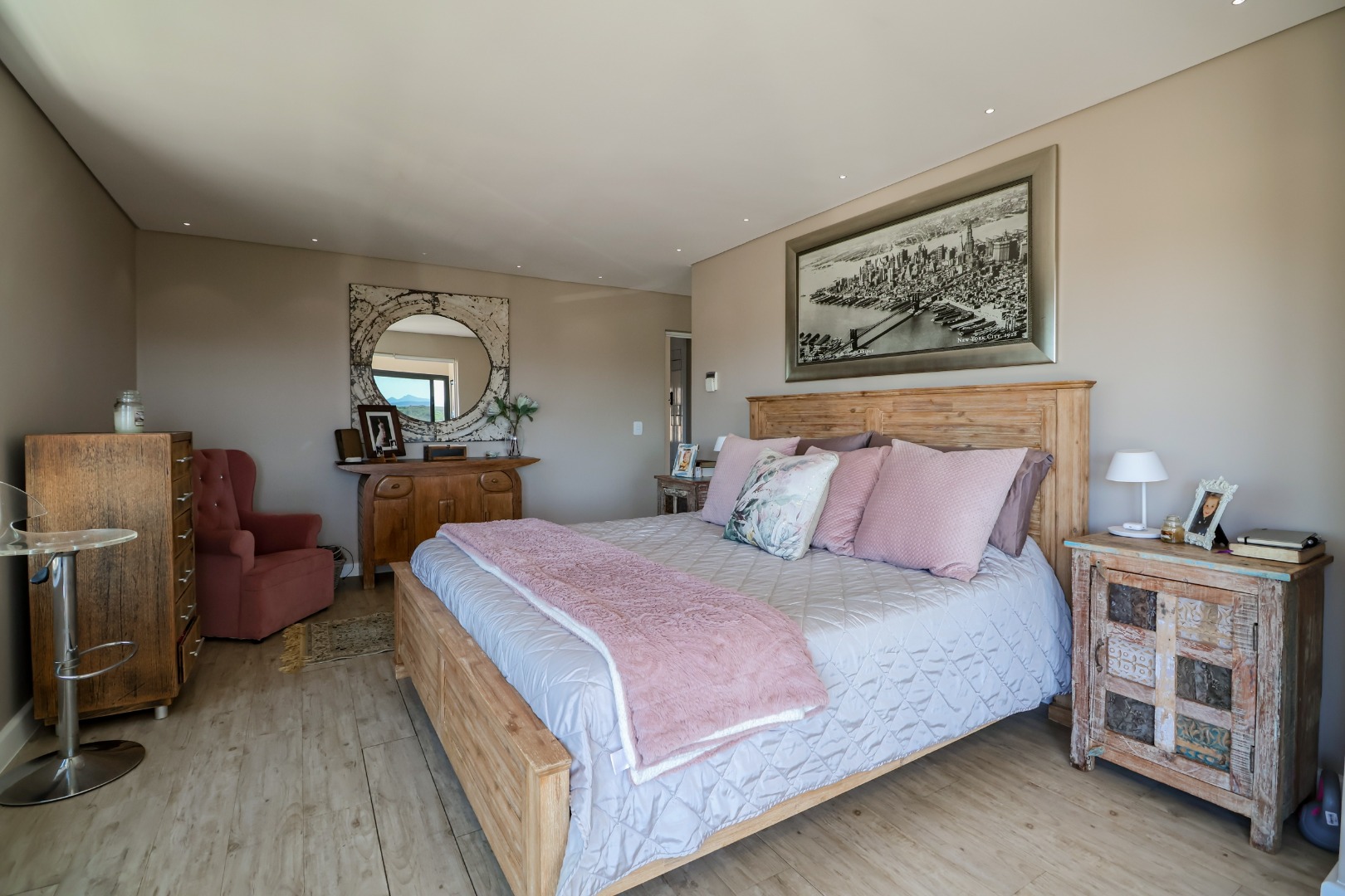 The extravagant master suite on the upper-level futures with a walk-in wardrobe, and an upsized private ensuite bathroom were contemporary meets with well selected antique cabinetry. The master suite futures with a splendid private lounge and a large balcony offering epic views over the Outeniqua mountain range.