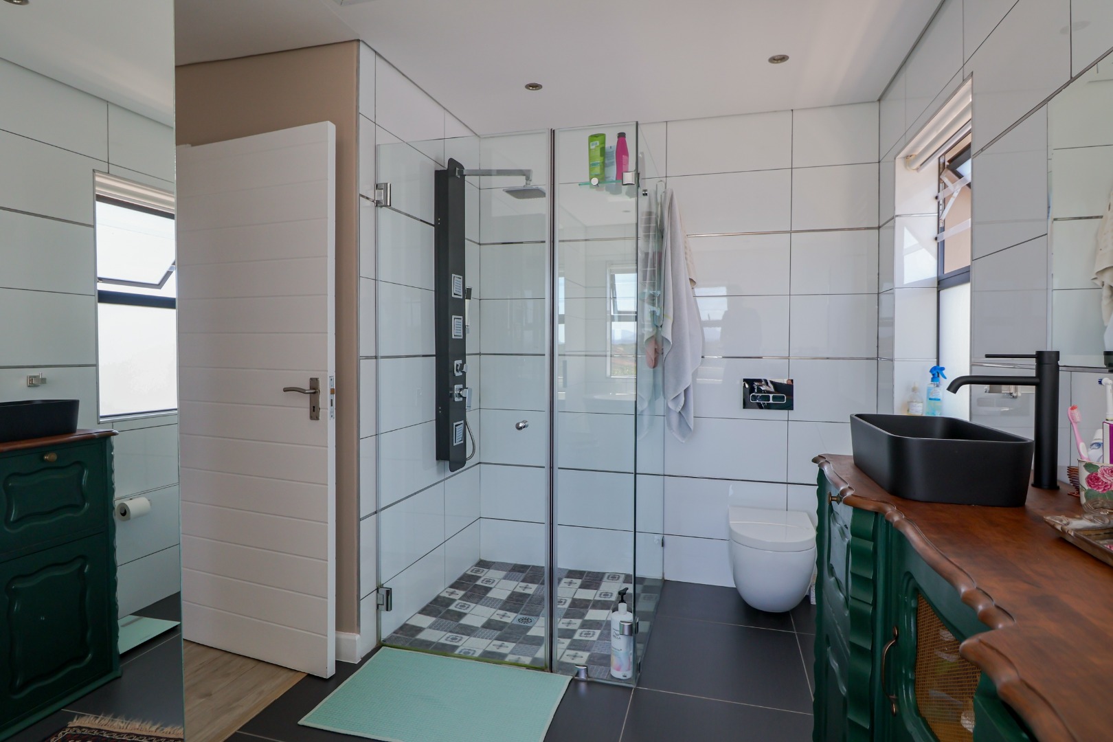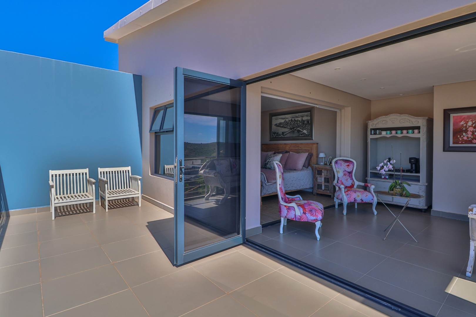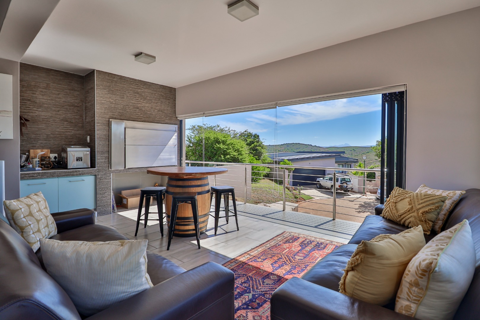 The extravagant master suite on the upper-level futures with a walk-in wardrobe, and an upsized private ensuite bathroom were contemporary meets with well selected antique cabinetry. The master suite futures with a splendid private lounge and a large balcony offering epic views over the Outeniqua mountain range.