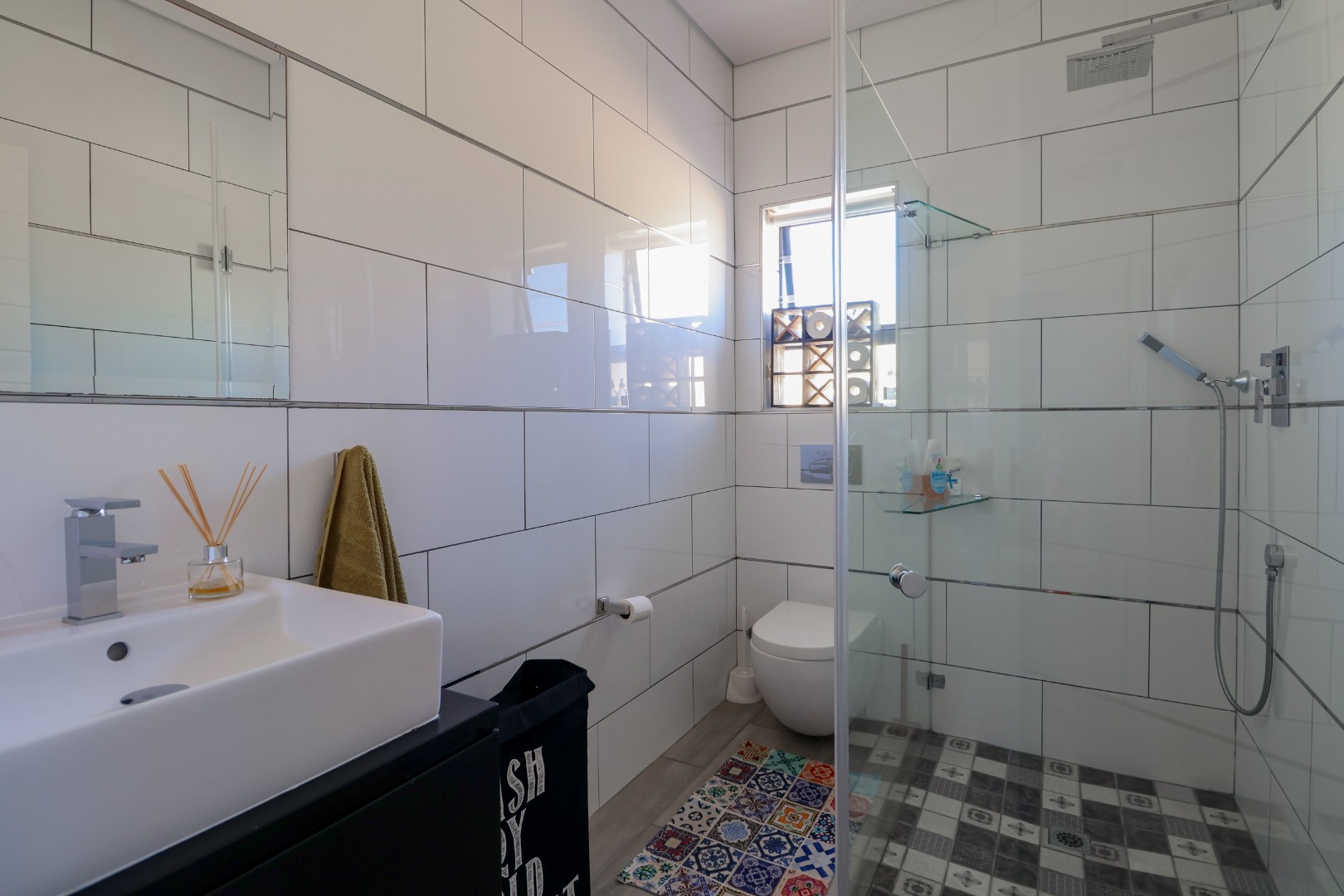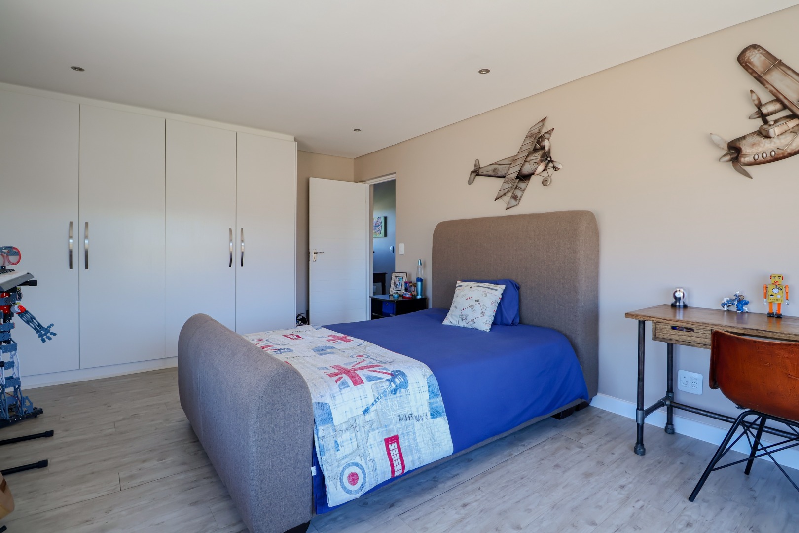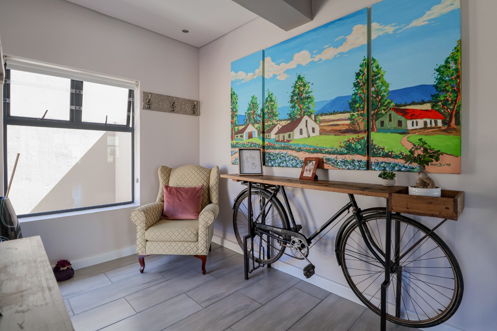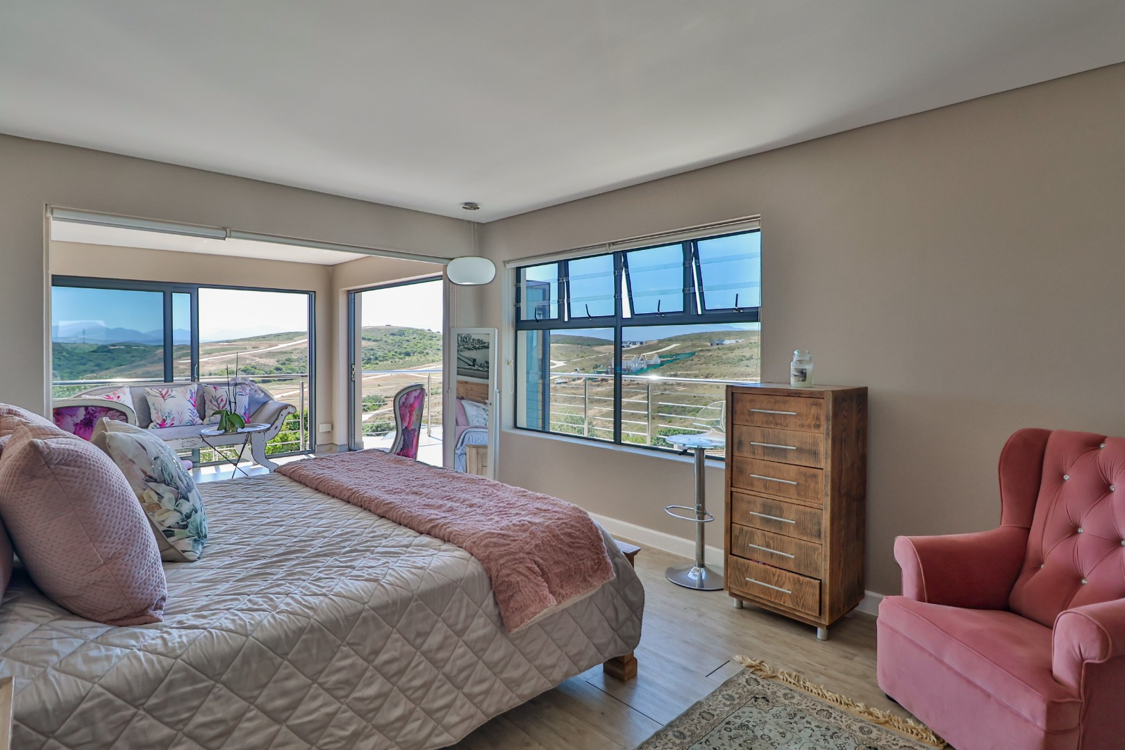 The extravagant master suite on the upper-level futures with a walk-in wardrobe, and an upsized private ensuite bathroom were contemporary meets with well selected antique cabinetry. The master suite futures with a splendid private lounge and a large balcony offering epic views over the Outeniqua mountain range.