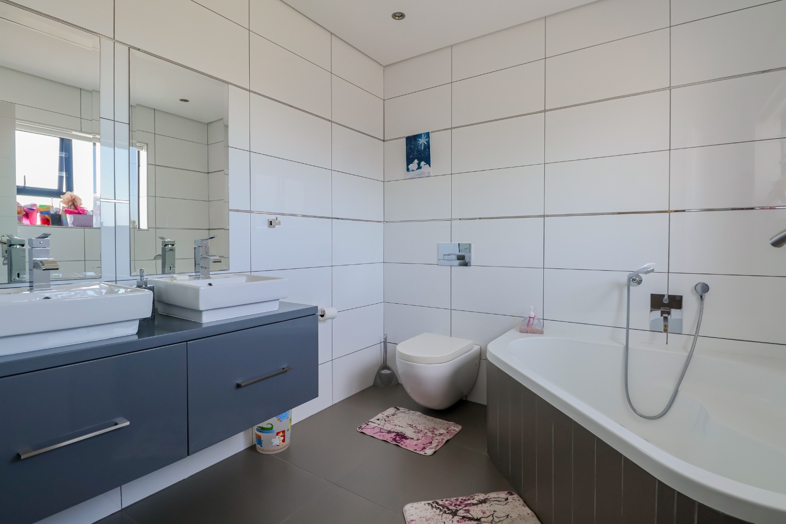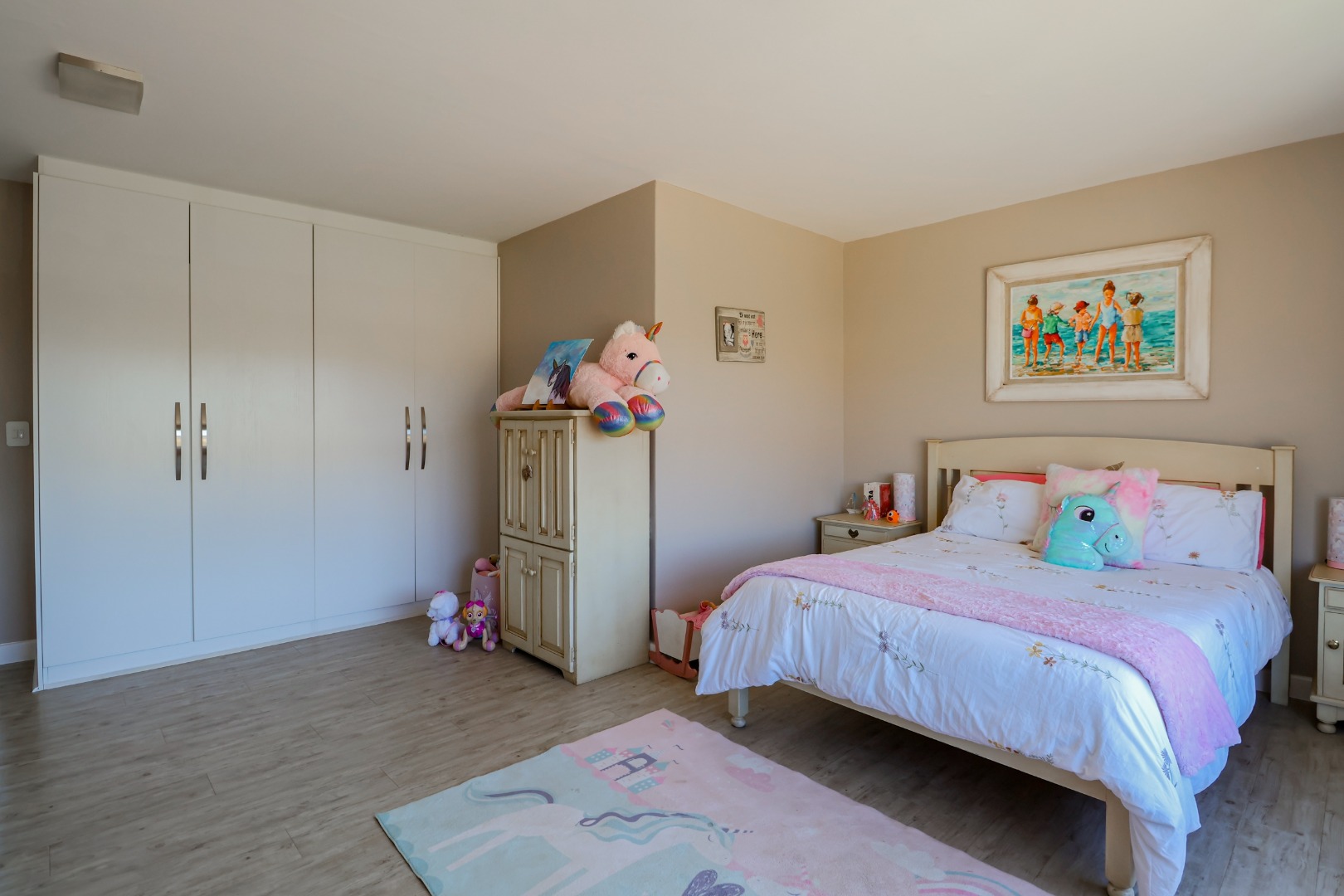 With its full northern exposure, this meticulously constructed 3 level residence with a staggering floor size totalling 436 m² boasts 4 extremely spacious bedrooms, 3 bathrooms, a home study, a centralised open-plan Baroque-style kitchen with a concealed scullery that doubles-up as laundry area, an indoor entertainment area with build-in braai that flows freely towards an open-air balcony, dining area, and two lounge areas. The lower-level futures with a vast pyjama room, that could easily be utilised as a fifth bedroom, or home office as this privately located section also futures with a separate entrance. This level furthermore holds the tremendously sized double garage with direct access to the homestead. It serves as a workroom for the DIY enthusiast and has an overflow of storage space.