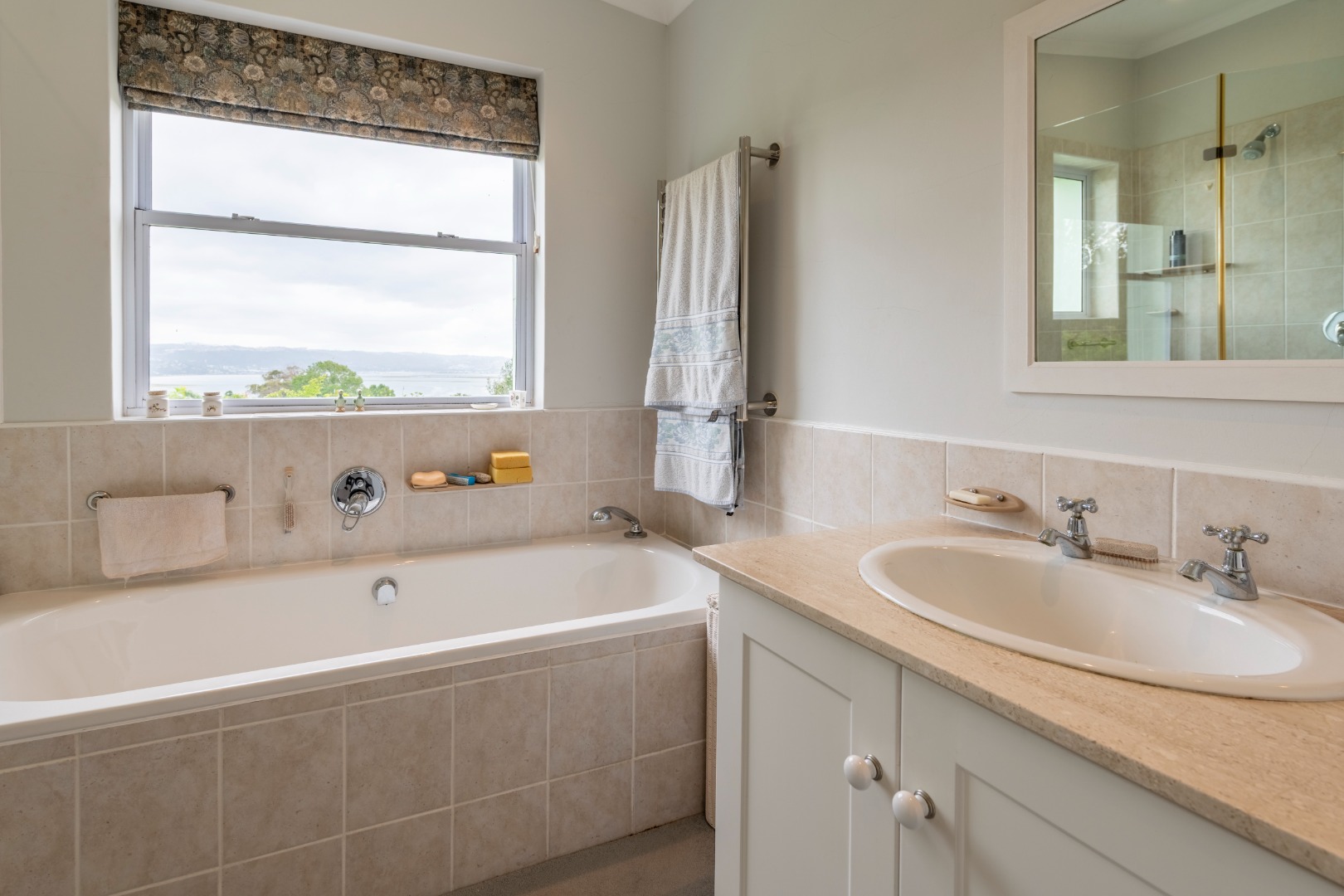 Easy living all on one level downstairs that includes lounge that flow out onto a spacious enclosed patio that presents great estuary vistas, separate dining room, kitchen with walk-in pantry and a good entrance.
