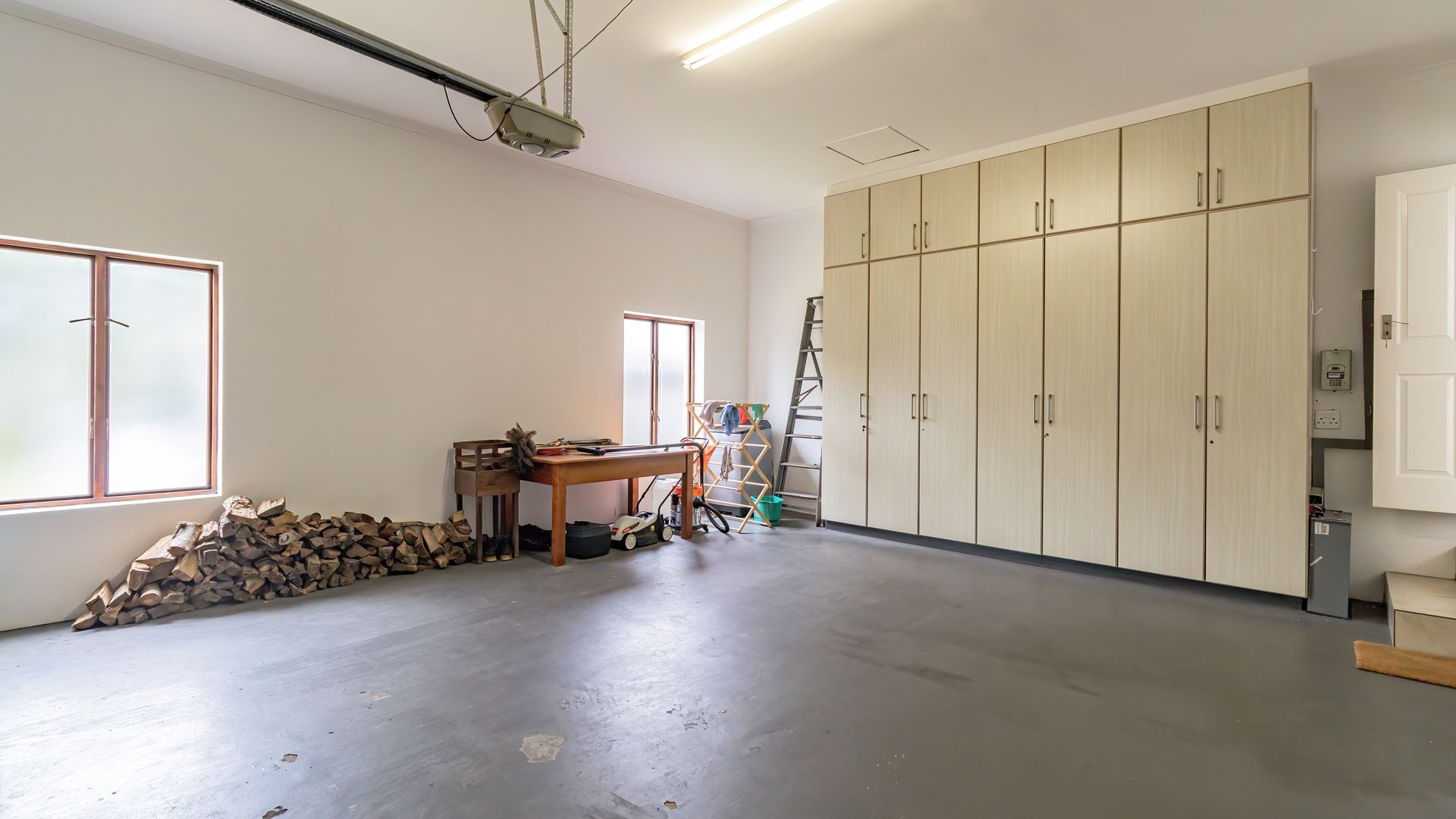Additional features include an oversized automated double garage with built-in wall cupboards and a small fitted safe, an alarm system linked to a security company, and a 5kW inverter system that is mains-charged and ready for future solar integration.