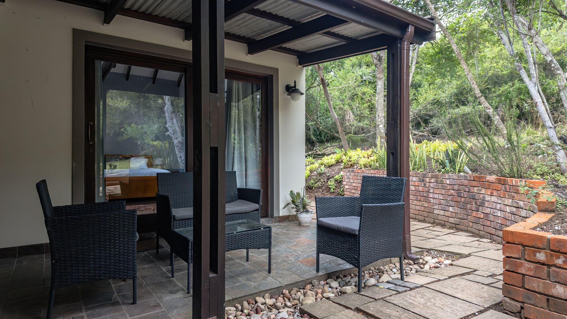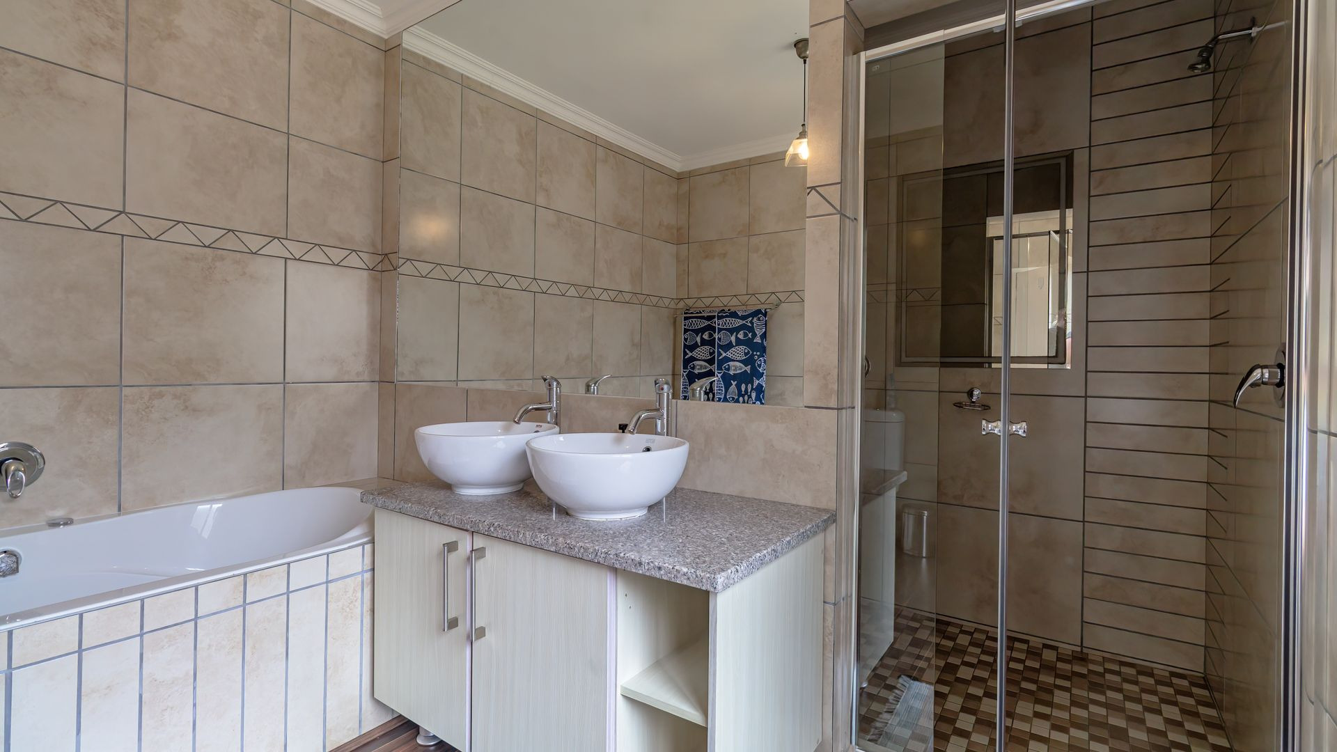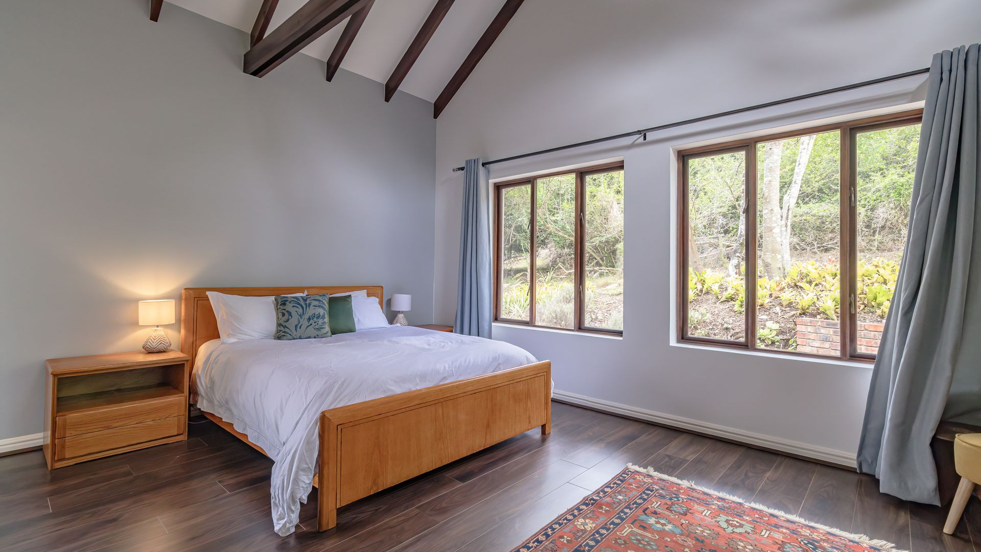 The main bedroom enjoys excellent natural light and opens onto the rear patio through double sliding doors, offering tranquil views into the bush. The en-suite bathroom is well finished and generously sized. A second full bathroom serves the second bedroom and guests, ensuring comfort and privacy.