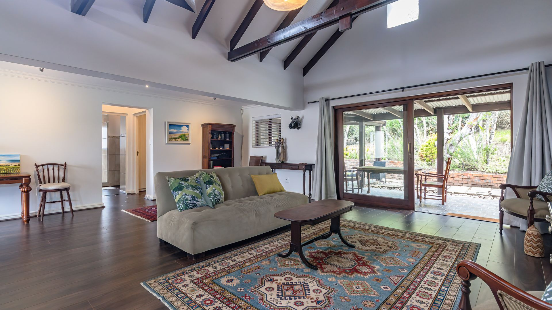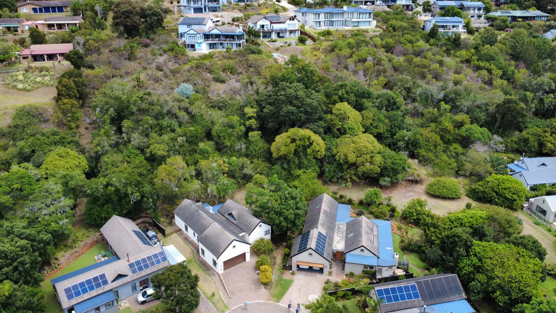 Located at the end of a quiet cul-de-sac, the home is north-facing, elevated, and safely positioned away from any risk of flooding or surface water. This position, combined with the low-density surroundings, places the home in one of the most private and peaceful locations in Knysna.