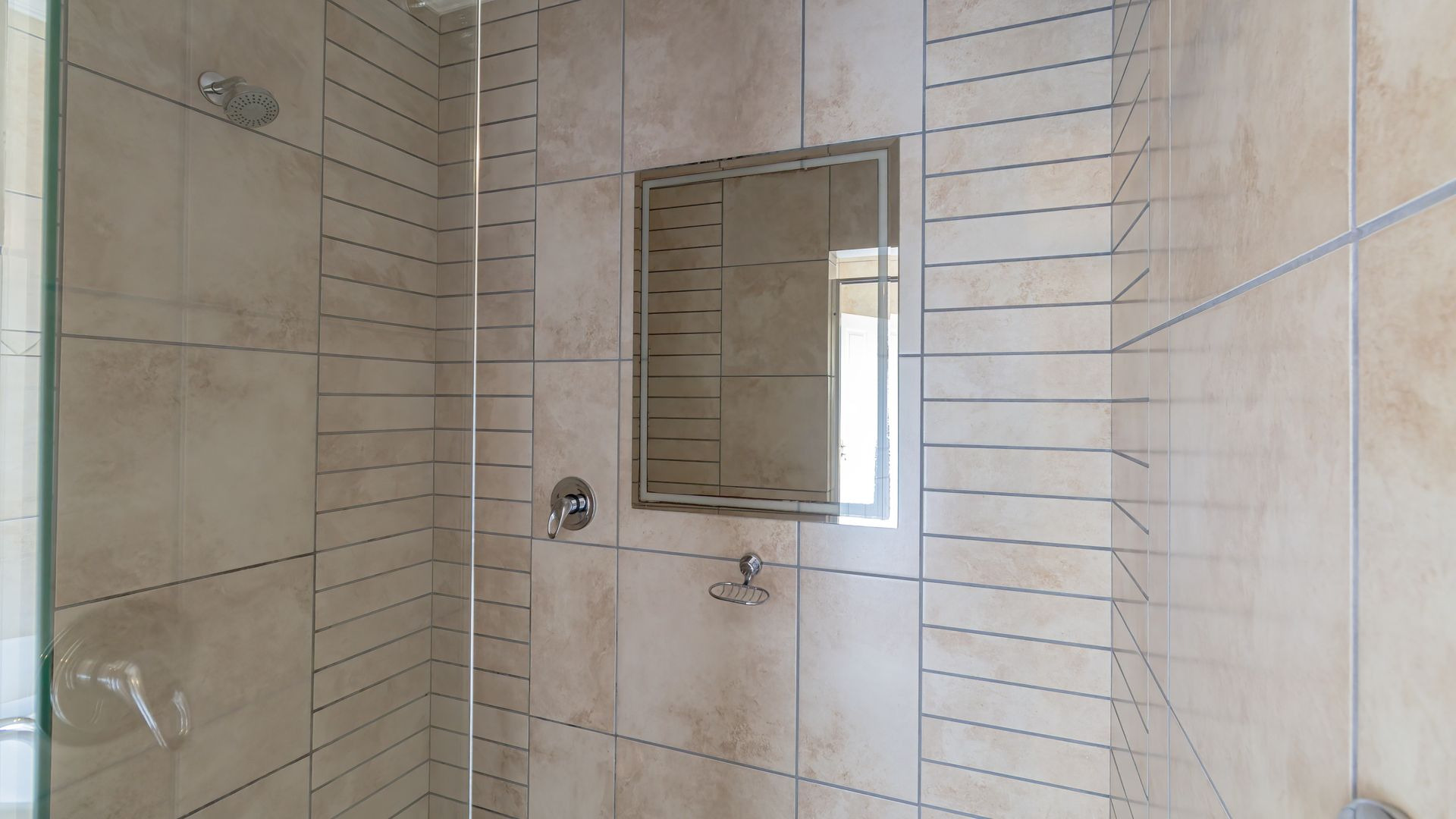 The main bedroom enjoys excellent natural light and opens onto the rear patio through double sliding doors, offering tranquil views into the bush. The en-suite bathroom is well finished and generously sized. A second full bathroom serves the second bedroom and guests, ensuring comfort and privacy.