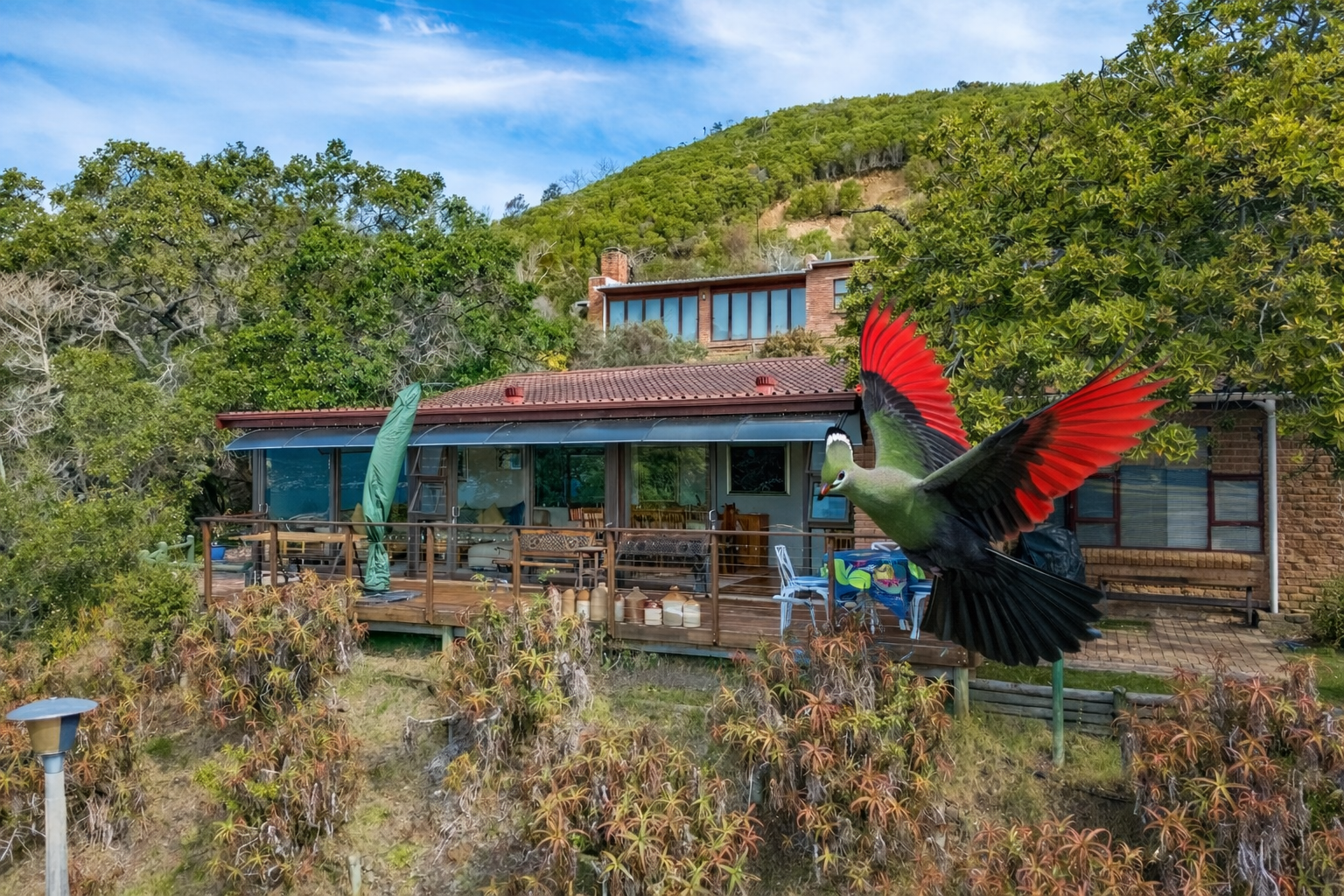 A deck extends the living space outdoors, making it an ideal spot for morning coffee, relaxed lunches, or quiet evenings as the lights of Knysna begin to shimmer across the water. The estate itself remains wonderfully natural, with bushbuck and birdlife moving freely through the grounds. To protect this environment, pets are not permitted, preserving the tranquil, conservation-focused character of Brenton Park.