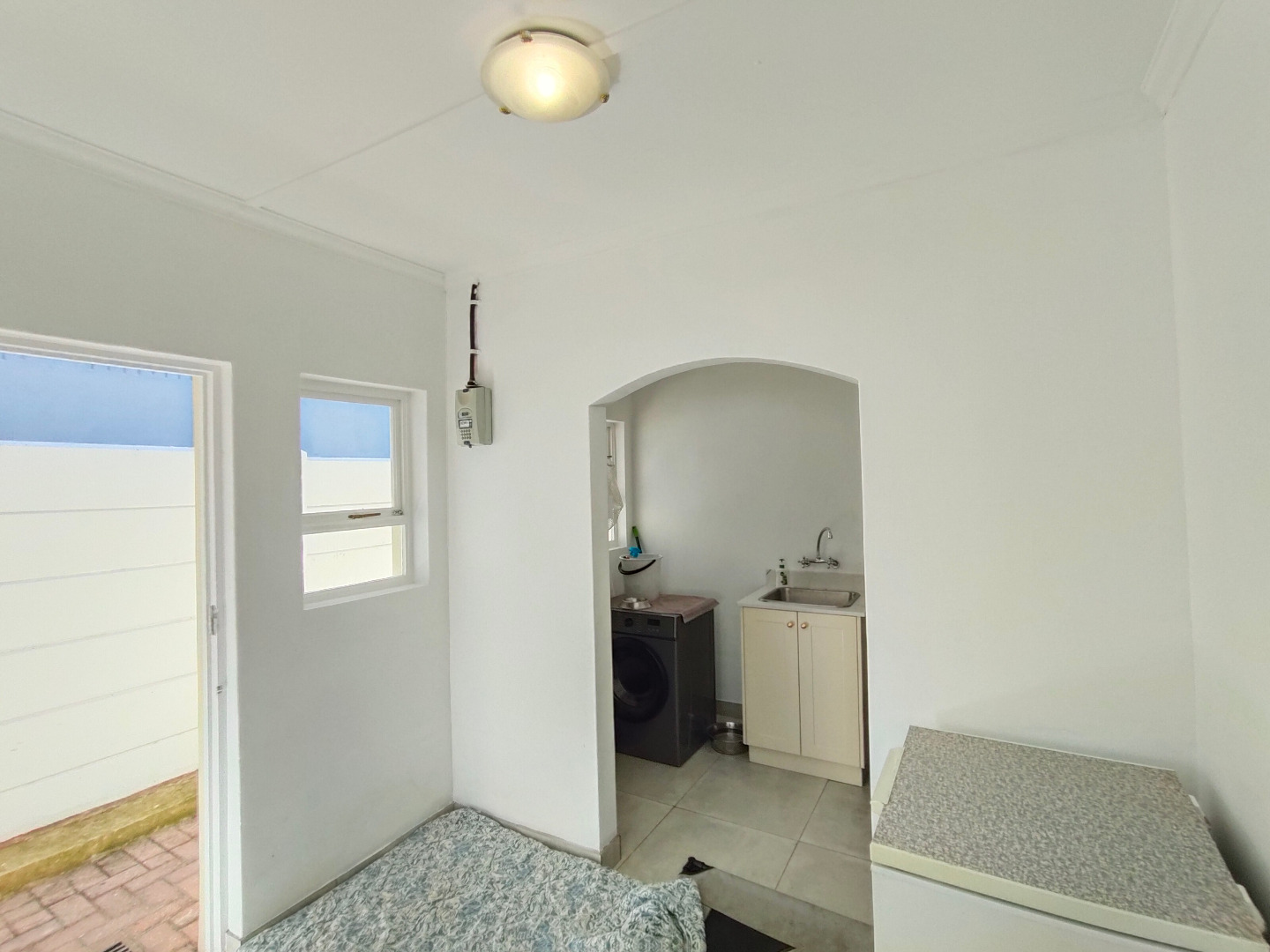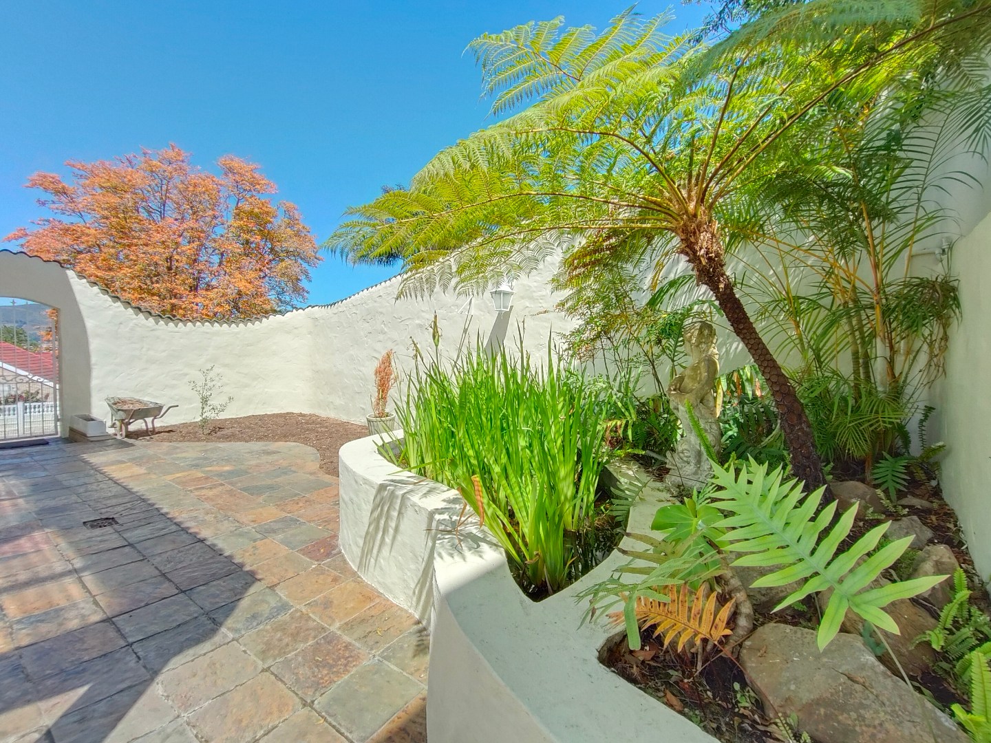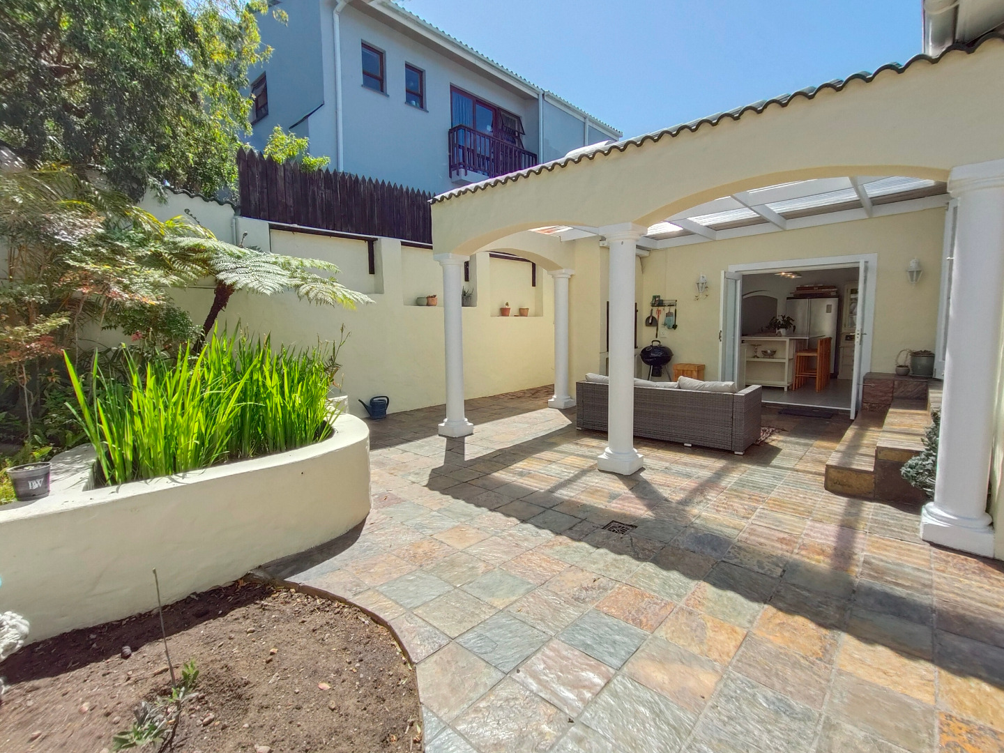The covered patio has a distinct Mediterranean feel, framed by ferns, a small fishpond, and resident Knysna Banana Frogs. The layout flows effortlessly from the kitchen through to the patio, making it perfect for entertaining or relaxing in the quiet garden courtyard. The property is surrounded by neat brick paving all around, giving it a clean, estate-style appearance that requires almost no garden maintenance. Yet, there’s still enough space to create your own touches with pots, ferns, or even a small herb and veggie garden. There’s no need for a lawn mower, just pure enjoyment and easy living.