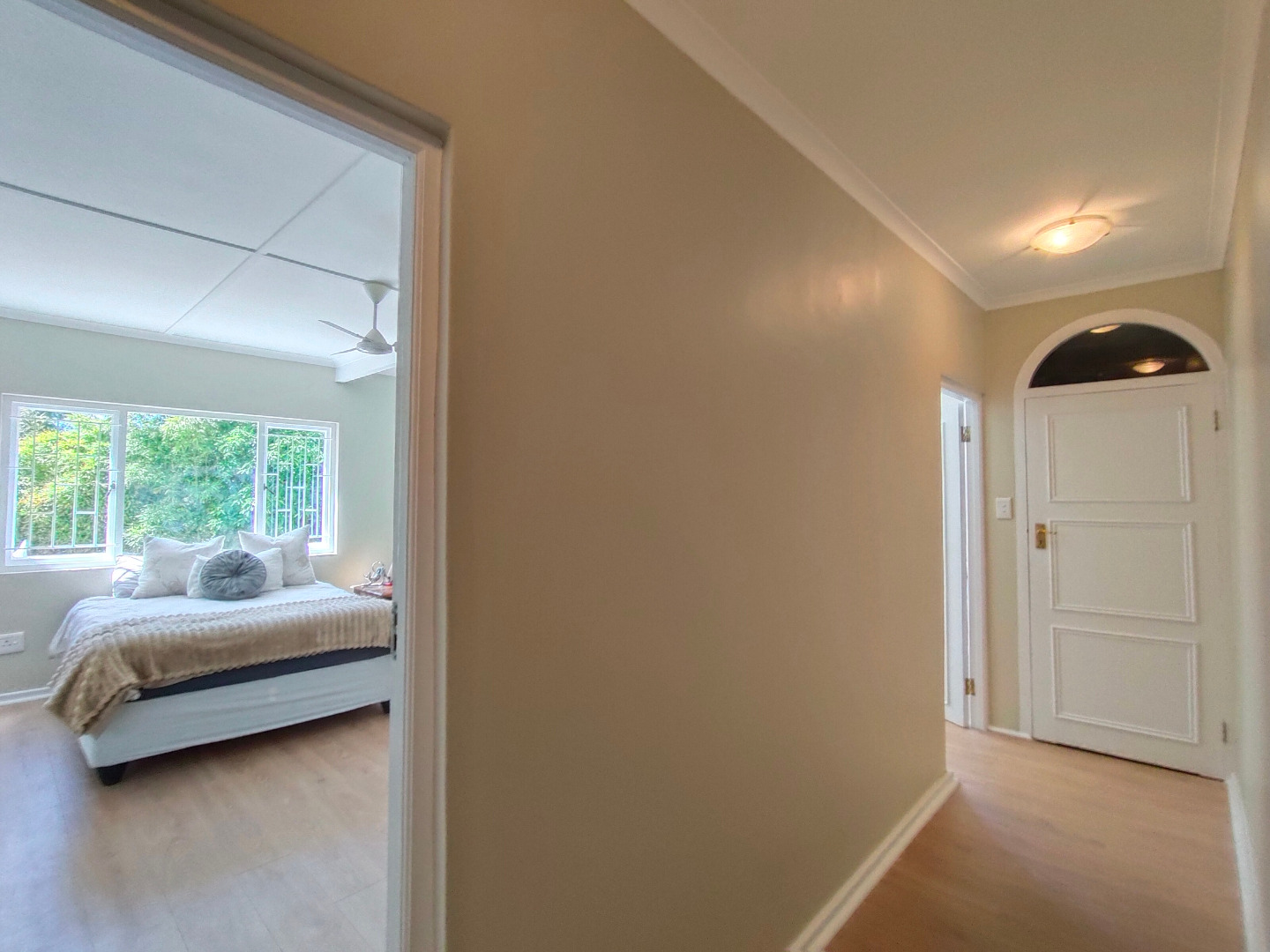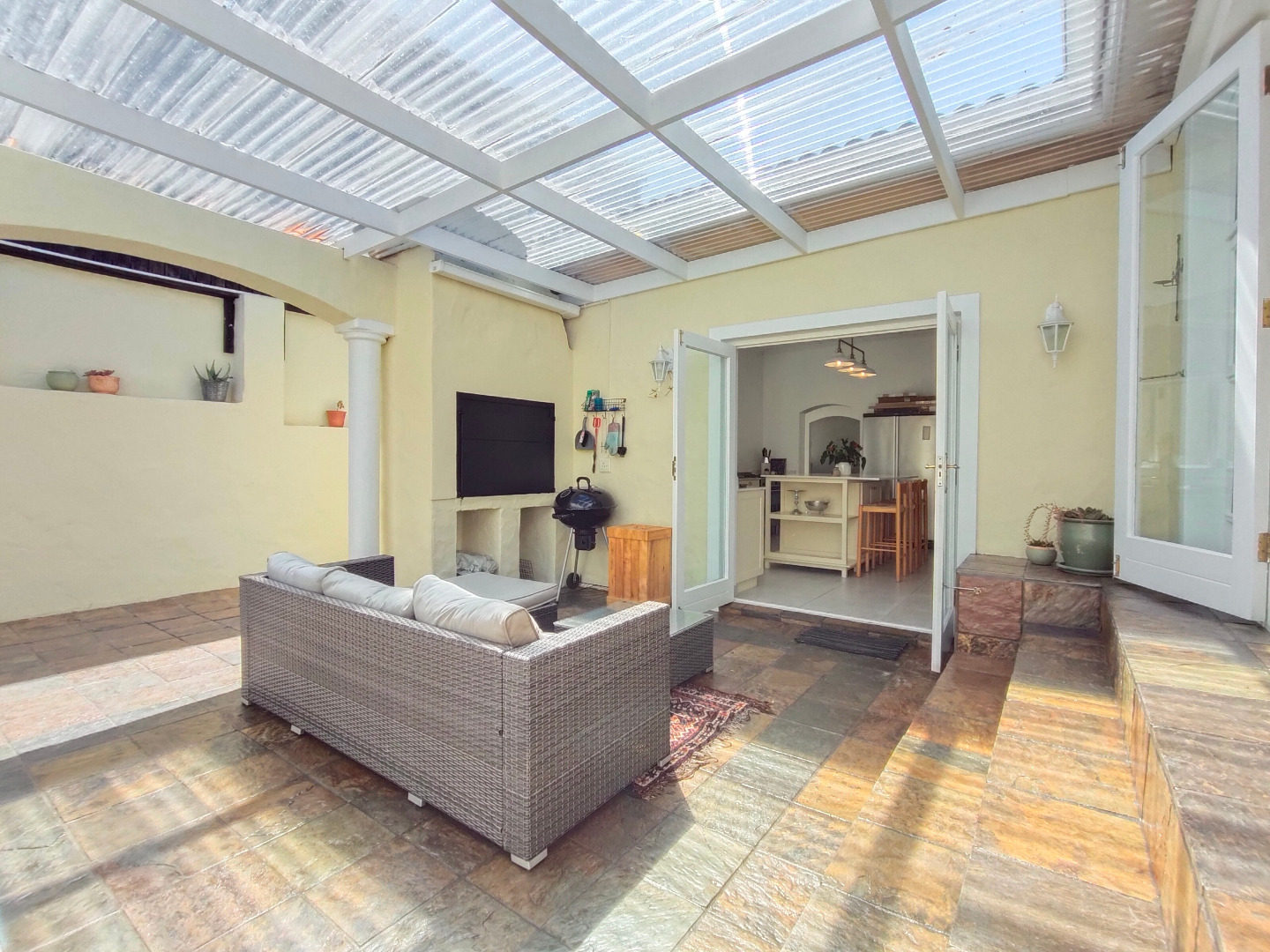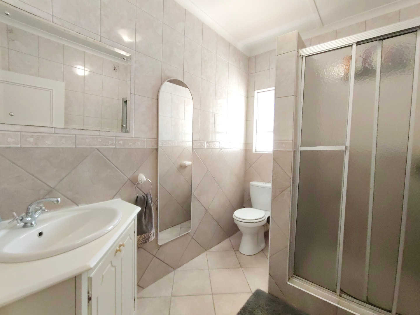 The covered patio has a distinct Mediterranean feel, framed by ferns, a small fishpond, and resident Knysna Banana Frogs. The layout flows effortlessly from the kitchen through to the patio, making it perfect for entertaining or relaxing in the quiet garden courtyard. The property is surrounded by neat brick paving all around, giving it a clean, estate-style appearance that requires almost no garden maintenance. Yet, there’s still enough space to create your own touches with pots, ferns, or even a small herb and veggie garden. There’s no need for a lawn mower, just pure enjoyment and easy living.