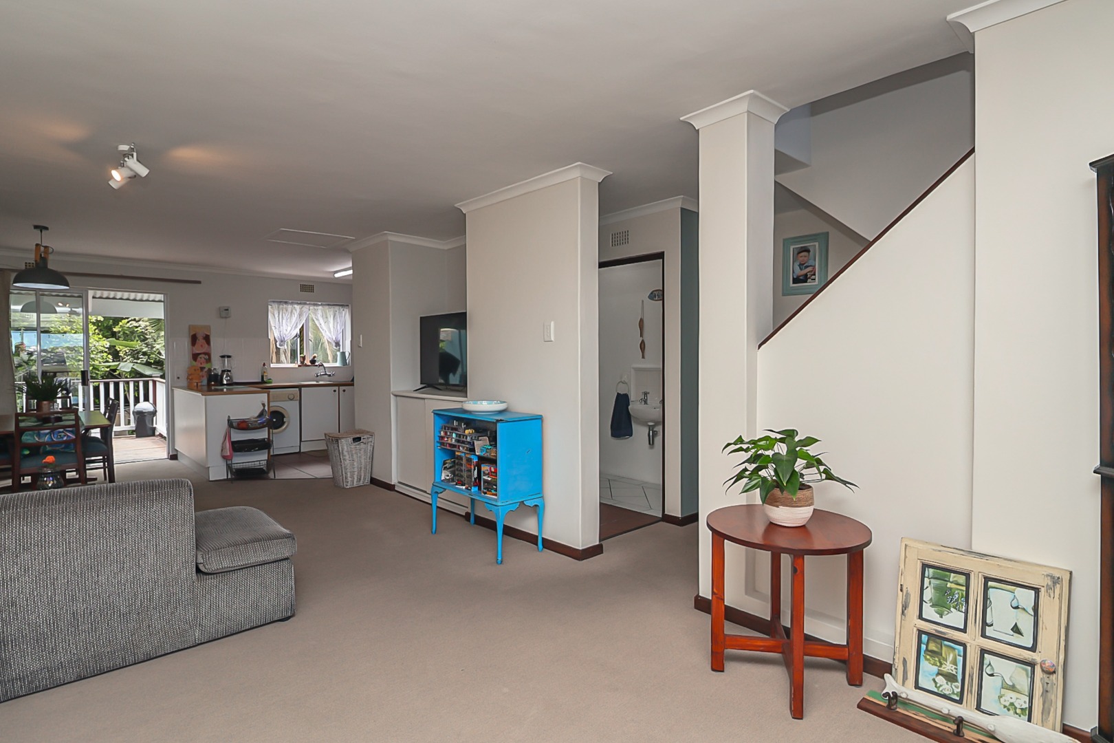 Imagine waking up to breathtaking panoramic water and mountain views every single day! This lovely multi-level townhouse in the secure Costa Sarda estate in Knysna offers just that, making it the perfect holiday home or permanent residence. From the moment you arrive, the modern exterior with its varied color schemes and private attached garage gives a welcoming feel.