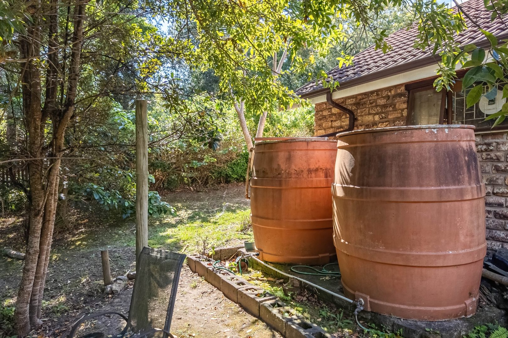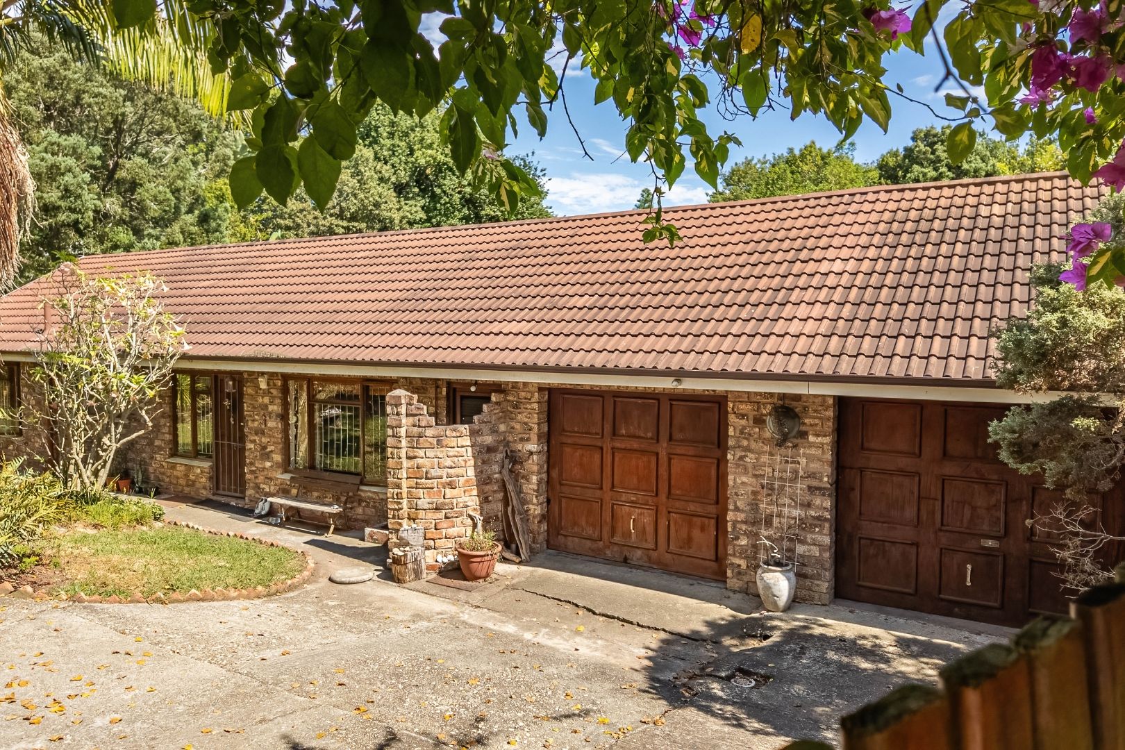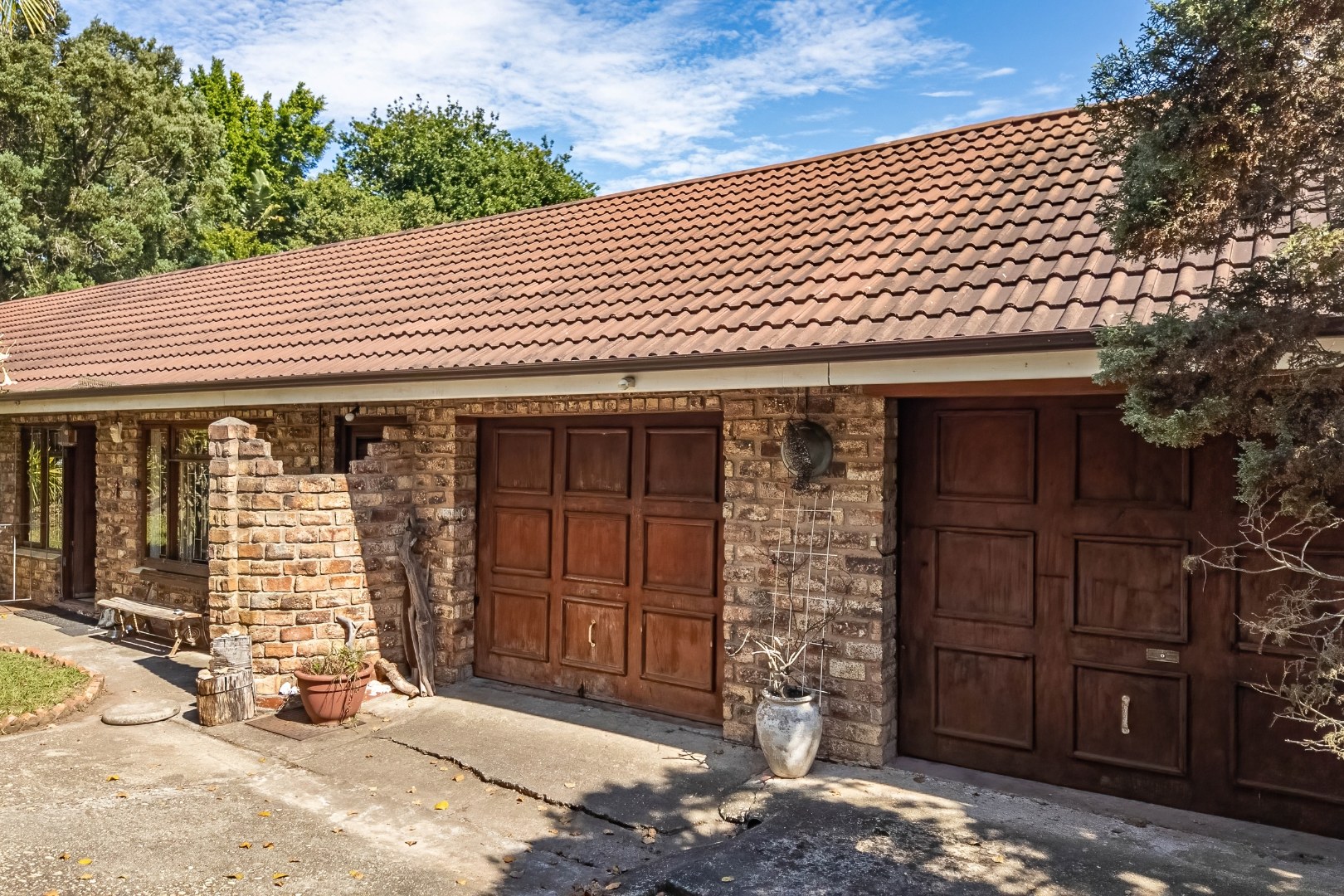 Outdoors, the property continues to impress with a covered stoep featuring a built-in braai—ideal for entertaining while enjoying the tranquil surroundings. Additional features include an outside toilet, two garages (one of which offers extra space that can be used for storage or easily converted into a third garage), and two water tanks with a combined capacity of 5,000 litres.