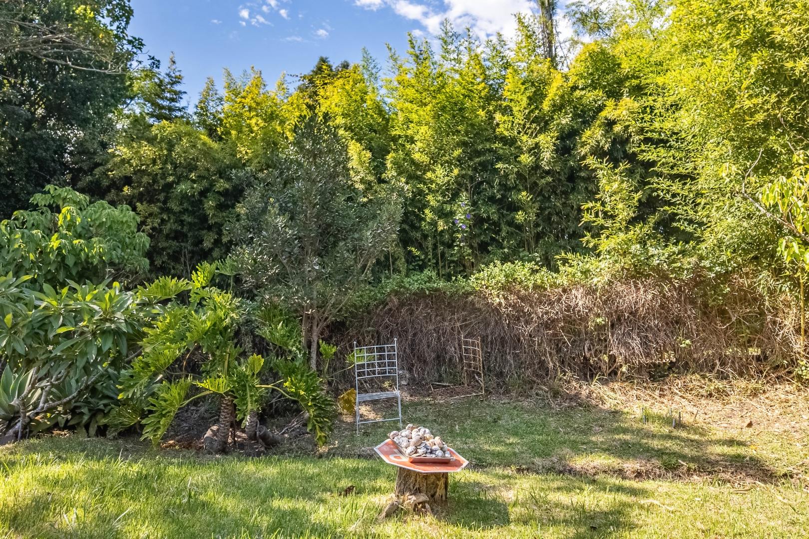 The garden is a true highlight, boasting established fruit trees, lush greenery, and a peaceful stream running through the property, creating a sense of calm and connection with nature. Surrounded by mature trees and set in a beautifully maintained garden, this home offers privacy and a picturesque setting.