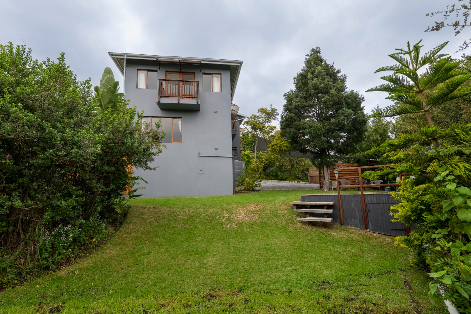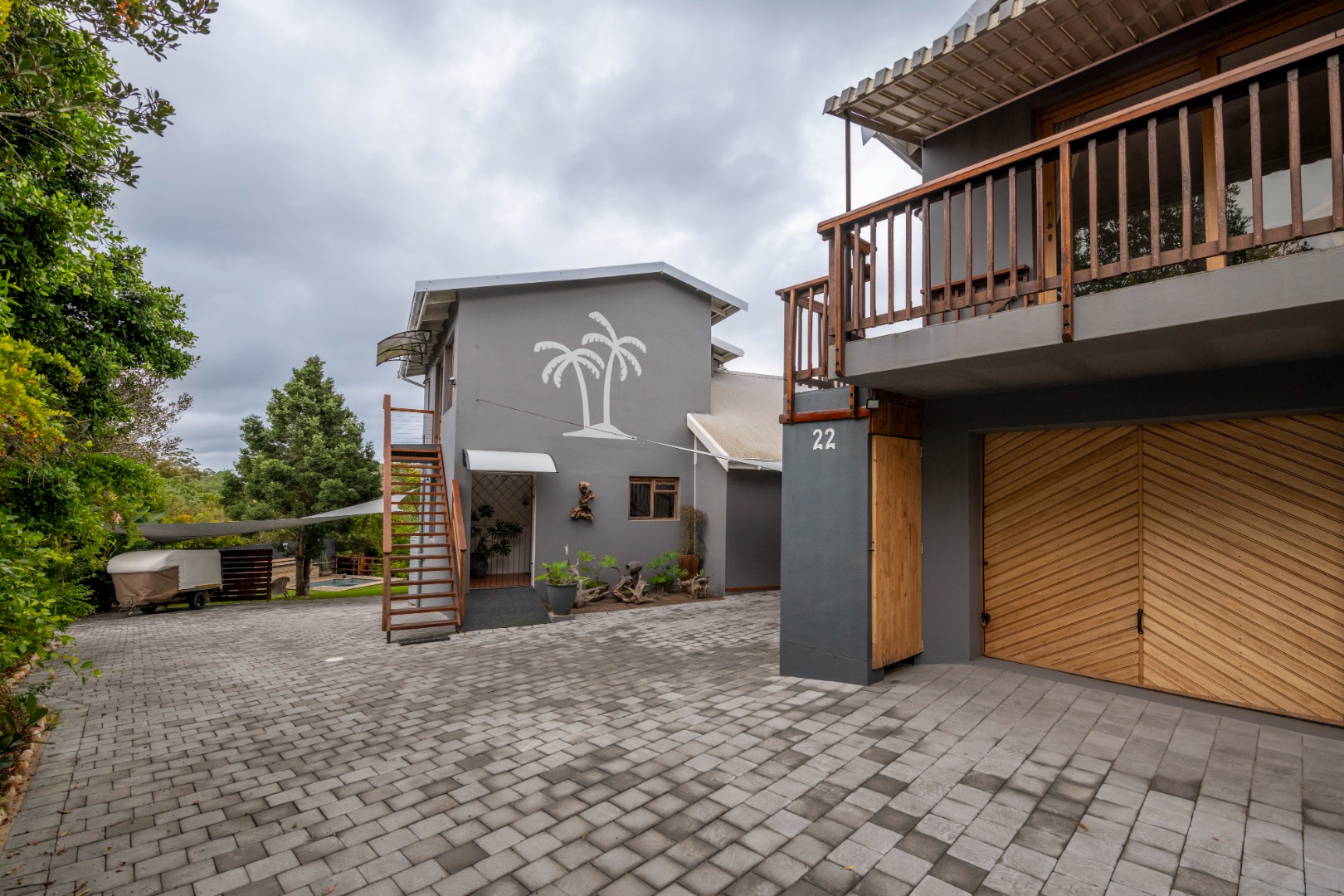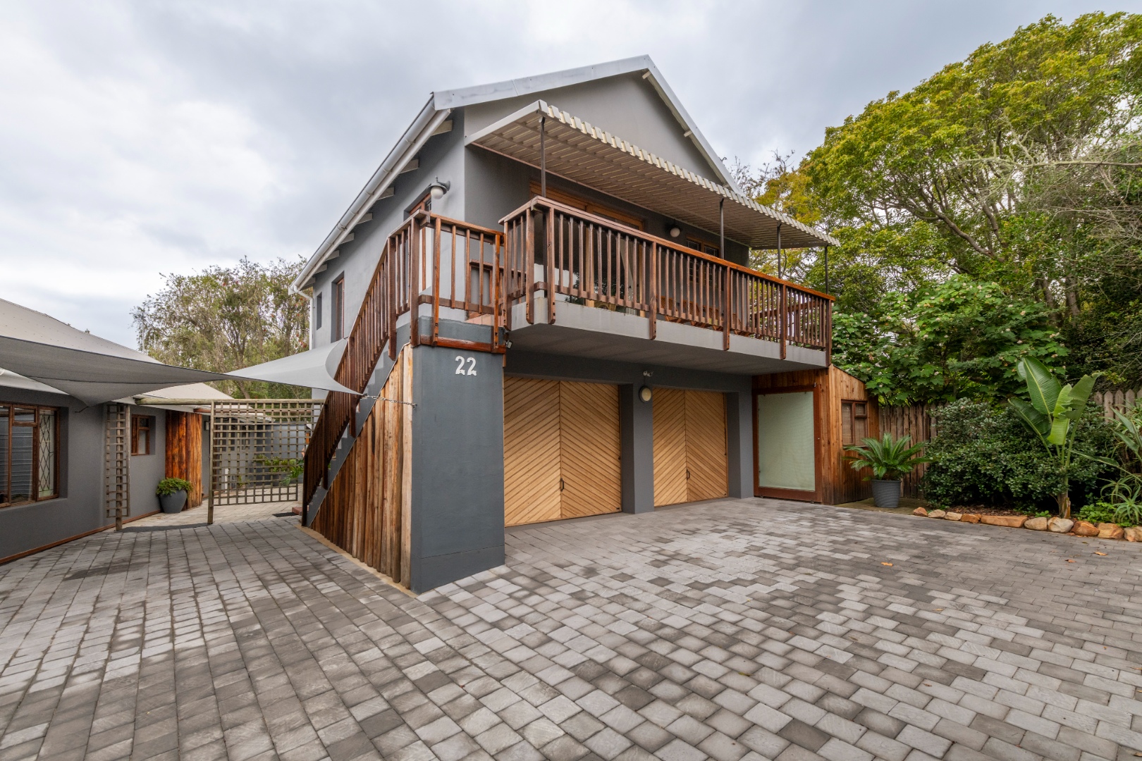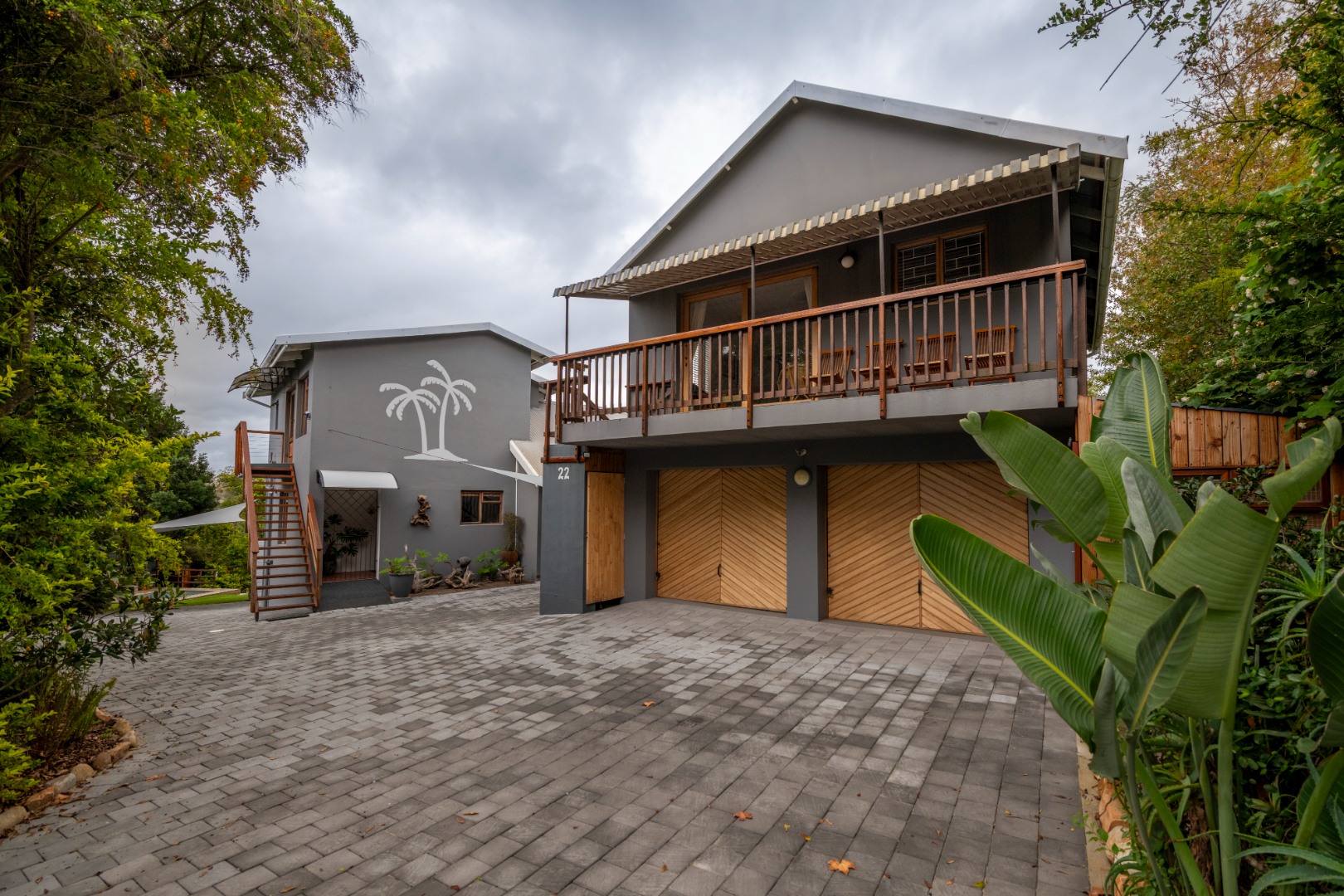Great opportunity to have endless opportunities with this sunny, suburban home set in a lovely landscaped garden in Hunters Home overlooking the Knysna Golf Course and Lagoon. The Main Home comprises 2 Bedrooms on Ground Level with a further 3 Bedrooms en suite upstairs that all include their own private balconies and kitchenettes. Accessed via a spacious entrance hall and well appointed office space.