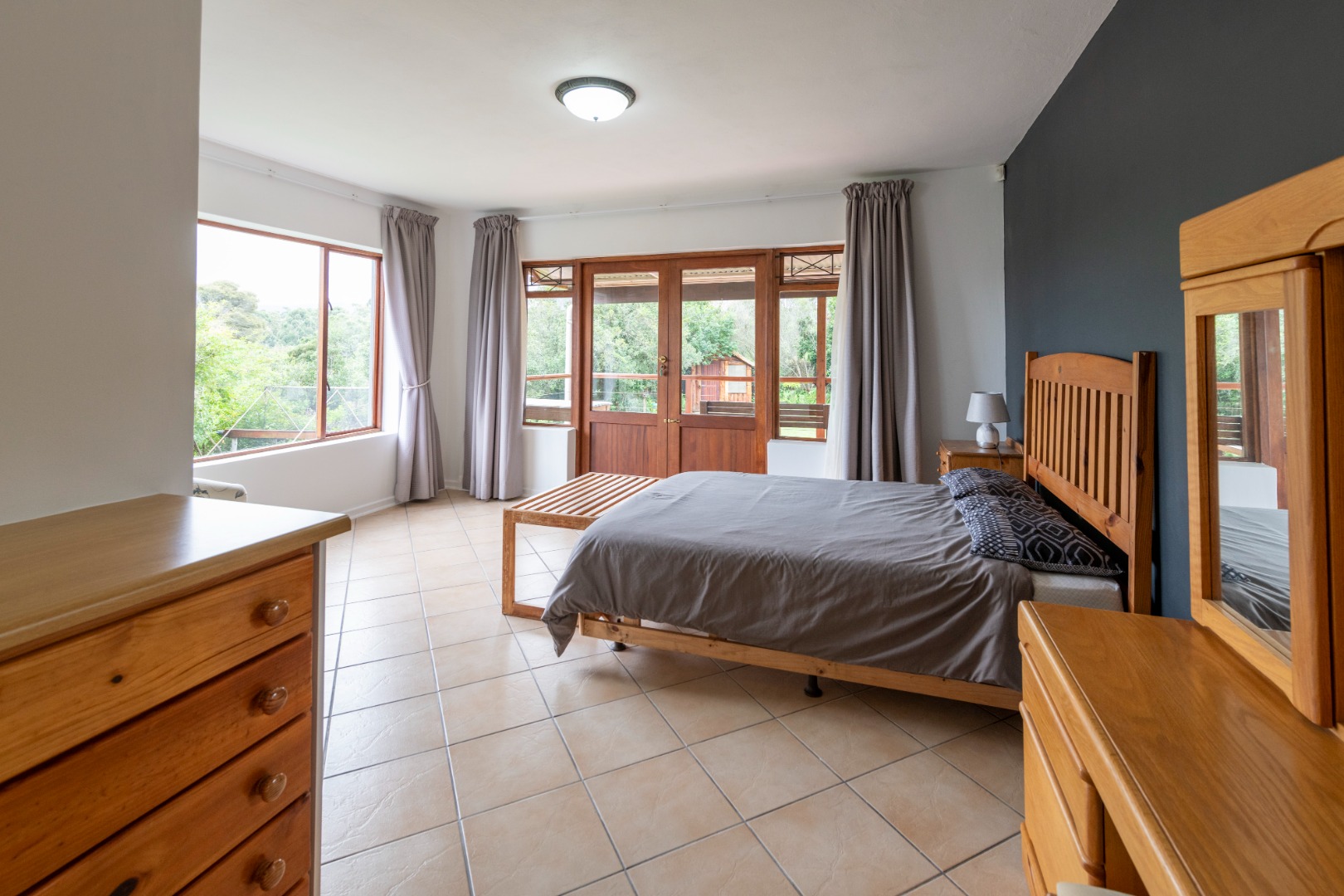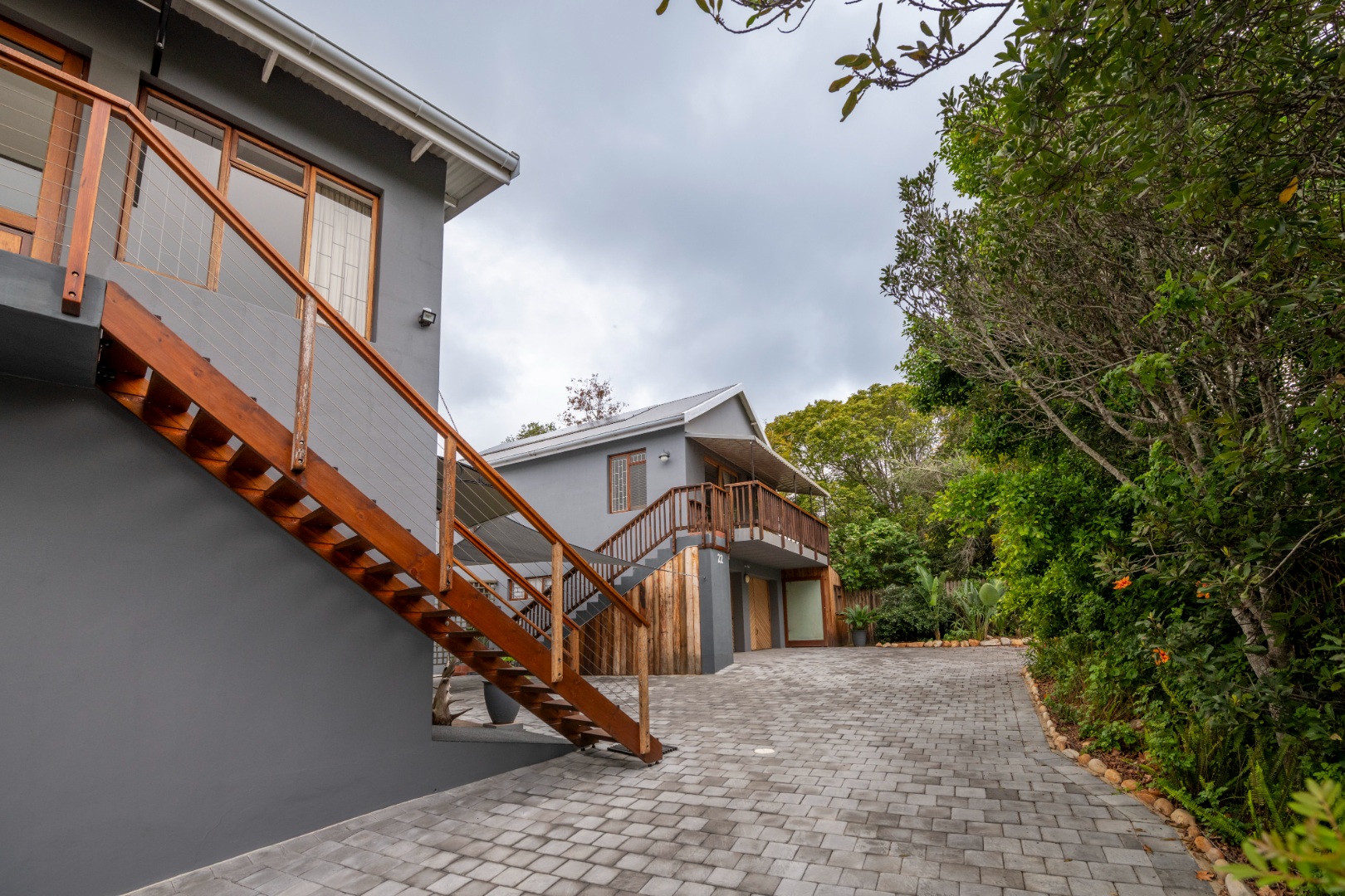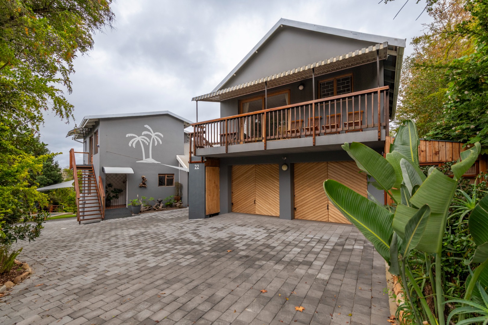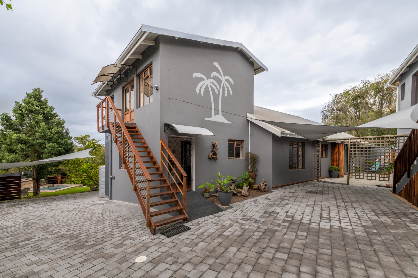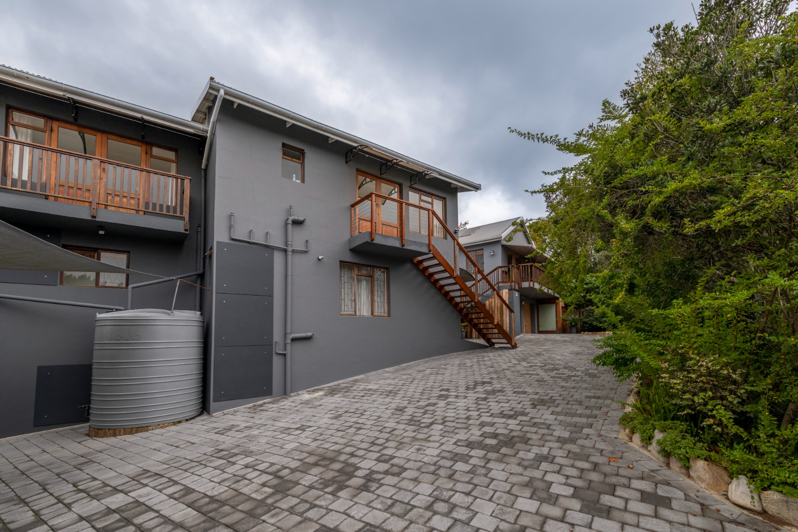 Great opportunity to have endless opportunities with this sunny, suburban home set in a lovely landscaped garden in Hunters Home overlooking the Knysna Golf Course and Lagoon. The Main Home comprises 2 Bedrooms on Ground Level with a further 3 Bedrooms en suite upstairs that all include their own private balconies and kitchenettes. Accessed via a spacious entrance hall and well appointed office space.