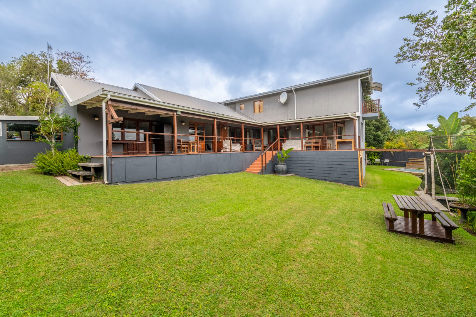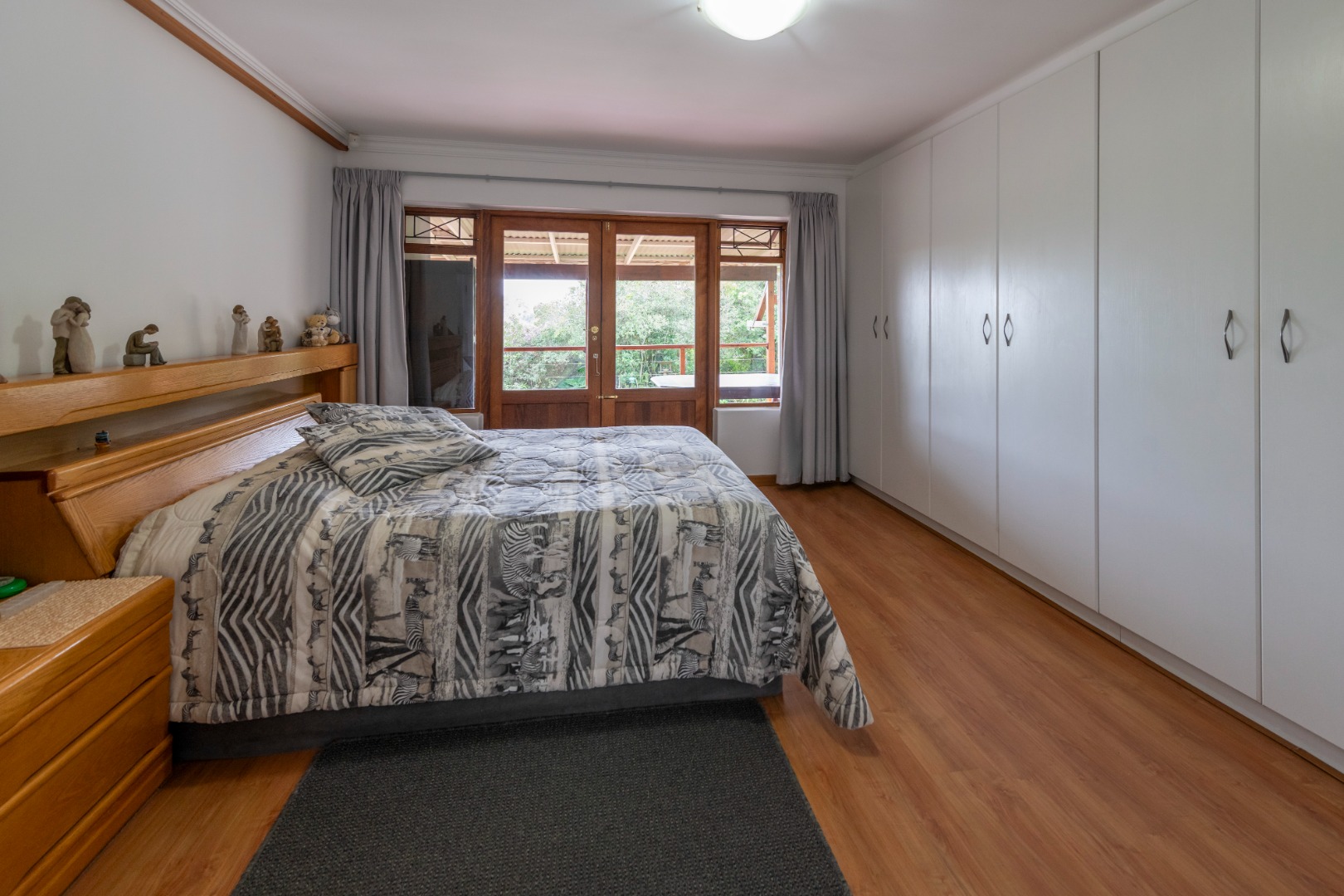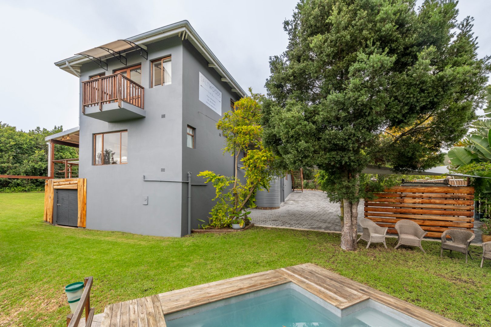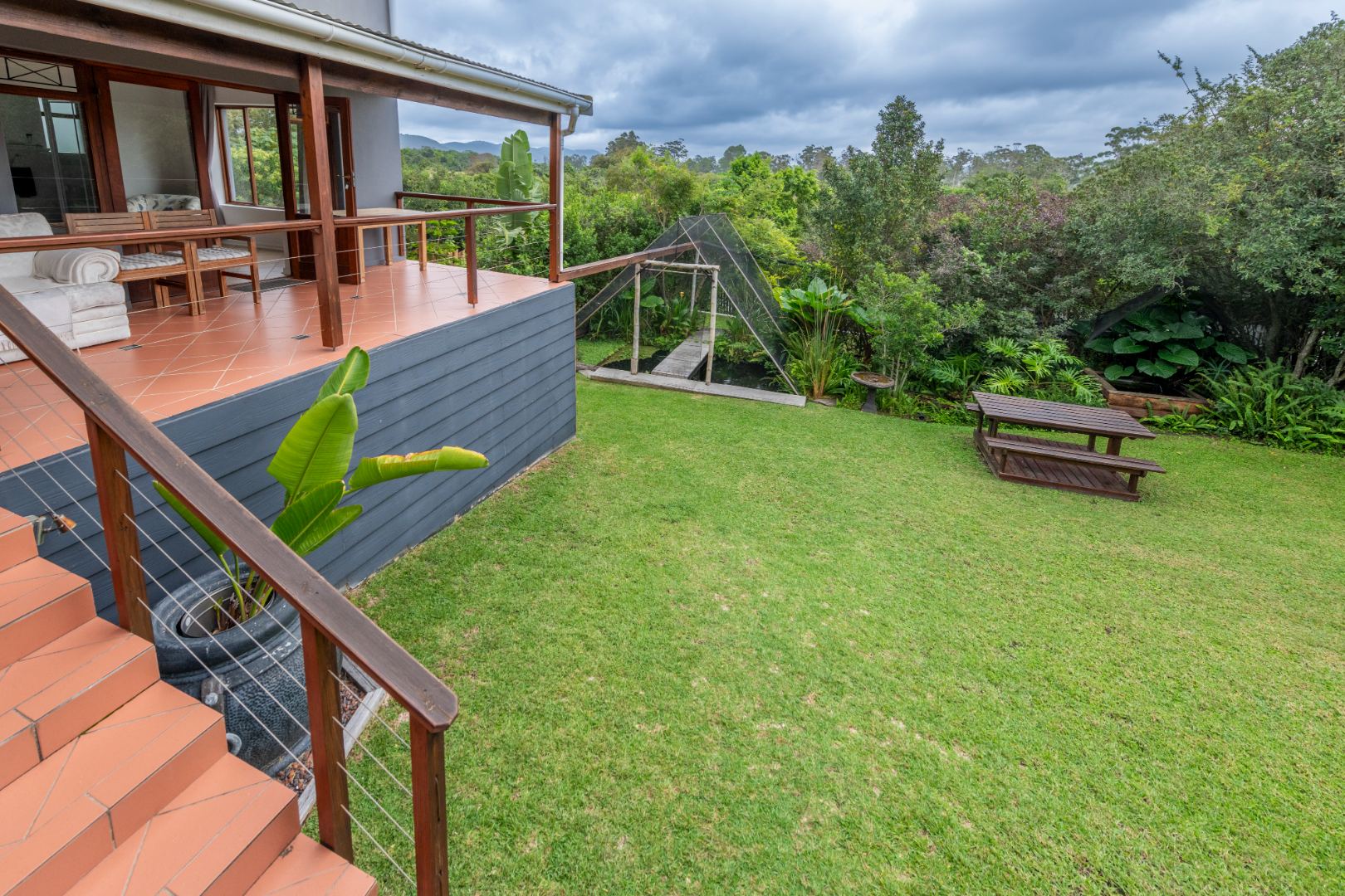 Great opportunity to have endless opportunities with this sunny, suburban home set in a lovely landscaped garden in Hunters Home overlooking the Knysna Golf Course and Lagoon. The Main Home comprises 2 Bedrooms on Ground Level with a further 3 Bedrooms en suite upstairs that all include their own private balconies and kitchenettes. Accessed via a spacious entrance hall and well appointed office space.