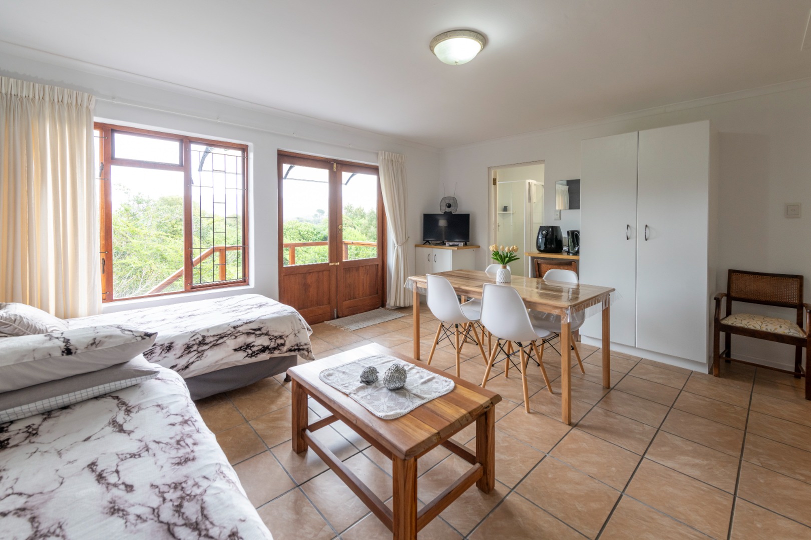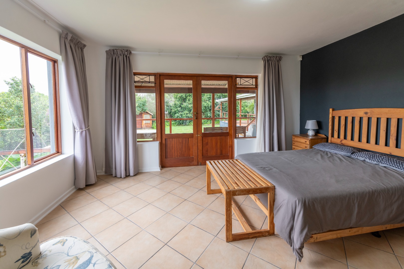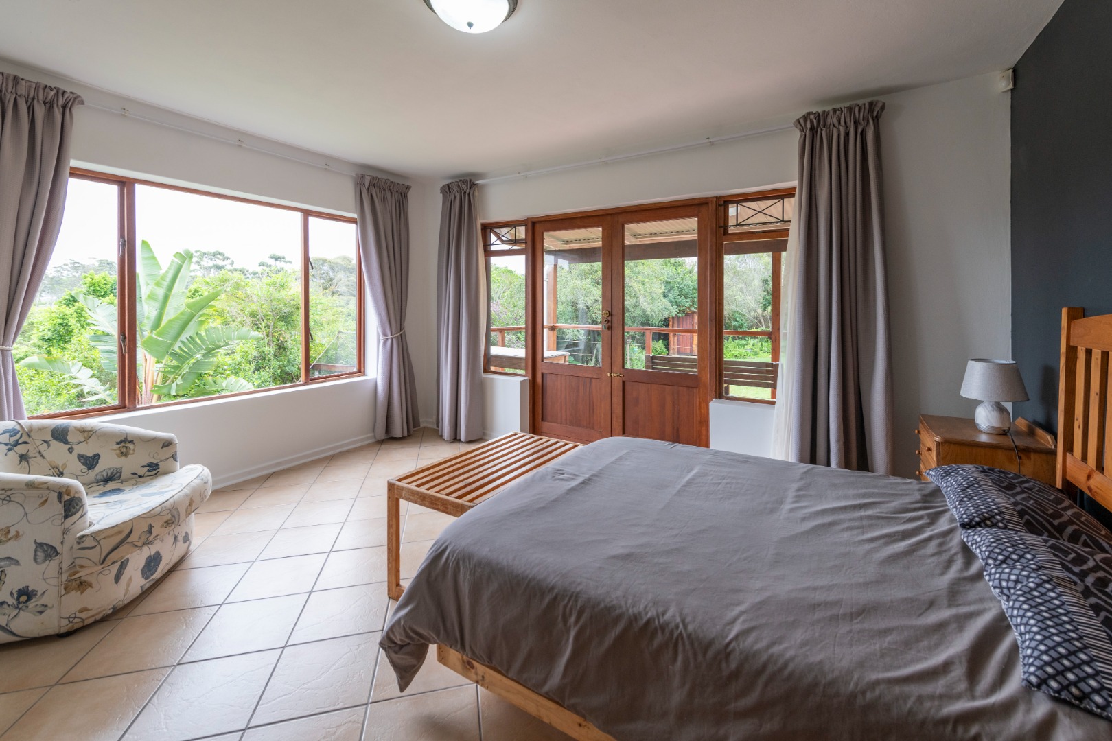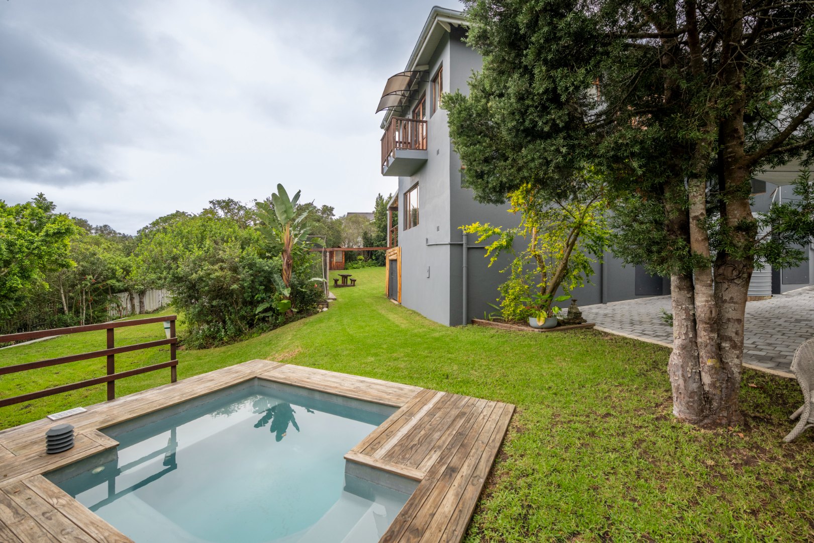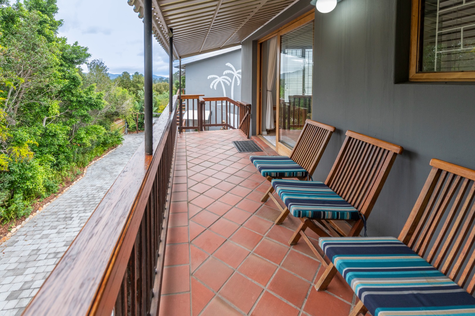 Great opportunity to have endless opportunities with this sunny, suburban home set in a lovely landscaped garden in Hunters Home overlooking the Knysna Golf Course and Lagoon. The Main Home comprises 2 Bedrooms on Ground Level with a further 3 Bedrooms en suite upstairs that all include their own private balconies and kitchenettes. Accessed via a spacious entrance hall and well appointed office space.