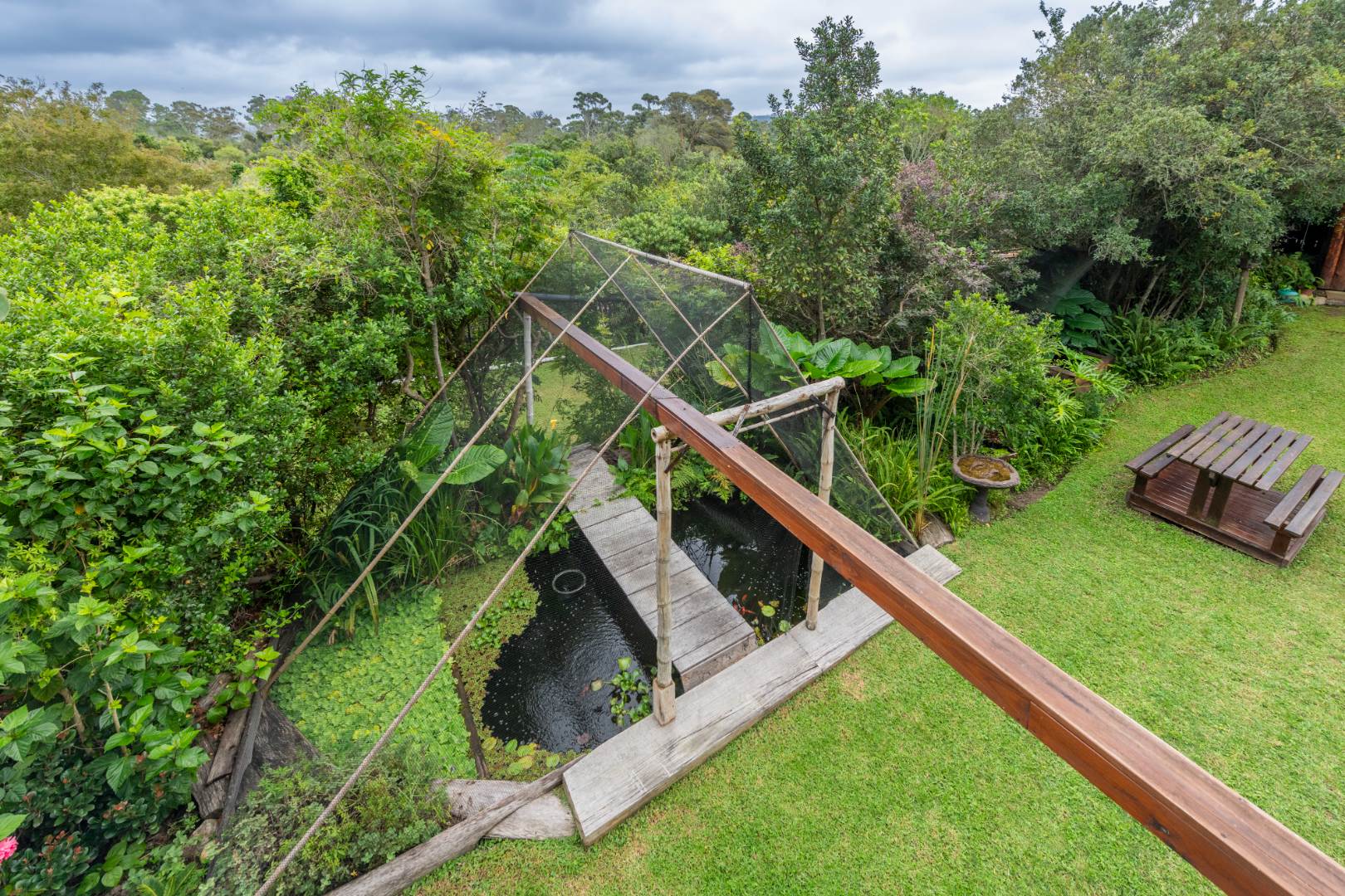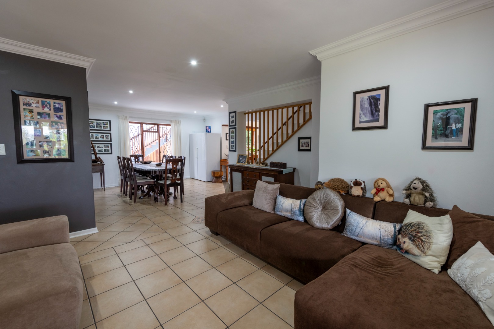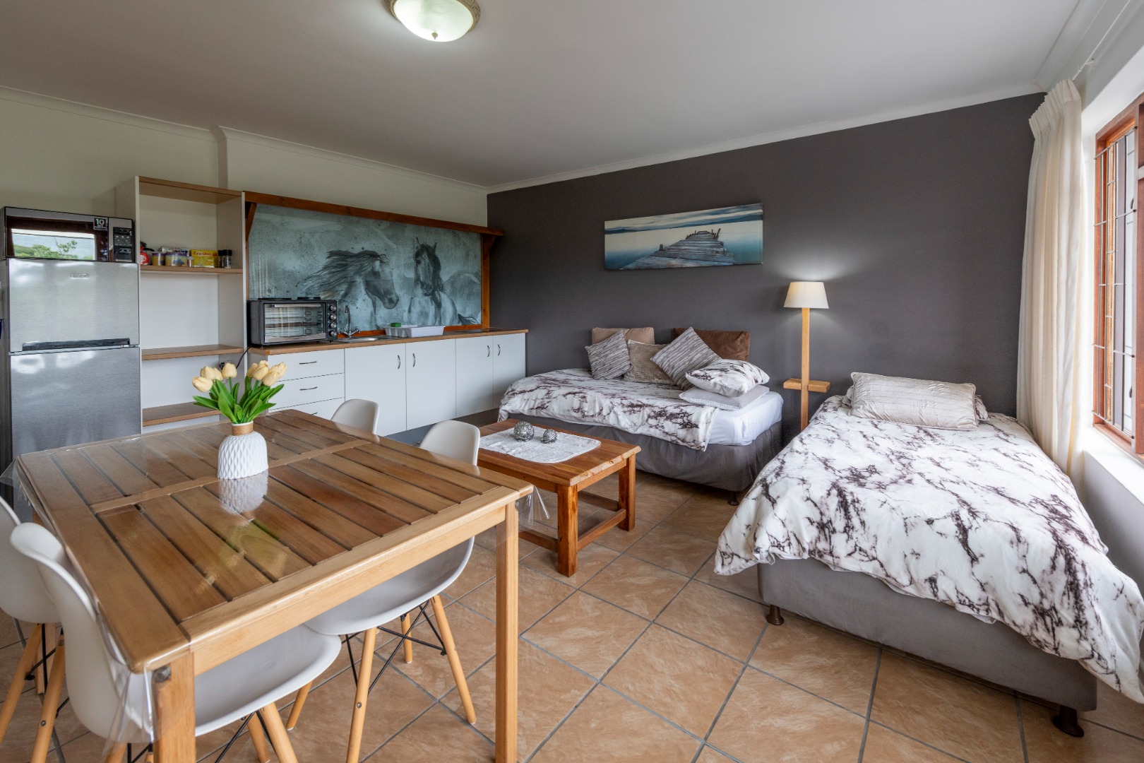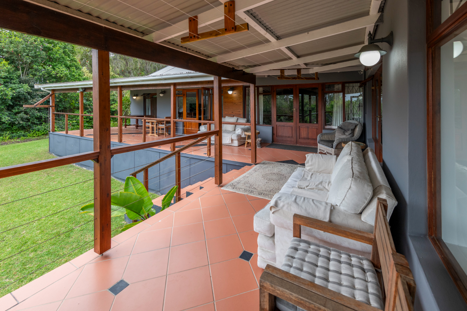 Great opportunity to have endless opportunities with this sunny, suburban home set in a lovely landscaped garden in Hunters Home overlooking the Knysna Golf Course and Lagoon. The Main Home comprises 2 Bedrooms on Ground Level with a further 3 Bedrooms en suite upstairs that all include their own private balconies and kitchenettes. Accessed via a spacious entrance hall and well appointed office space.