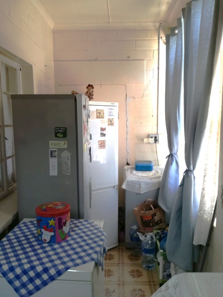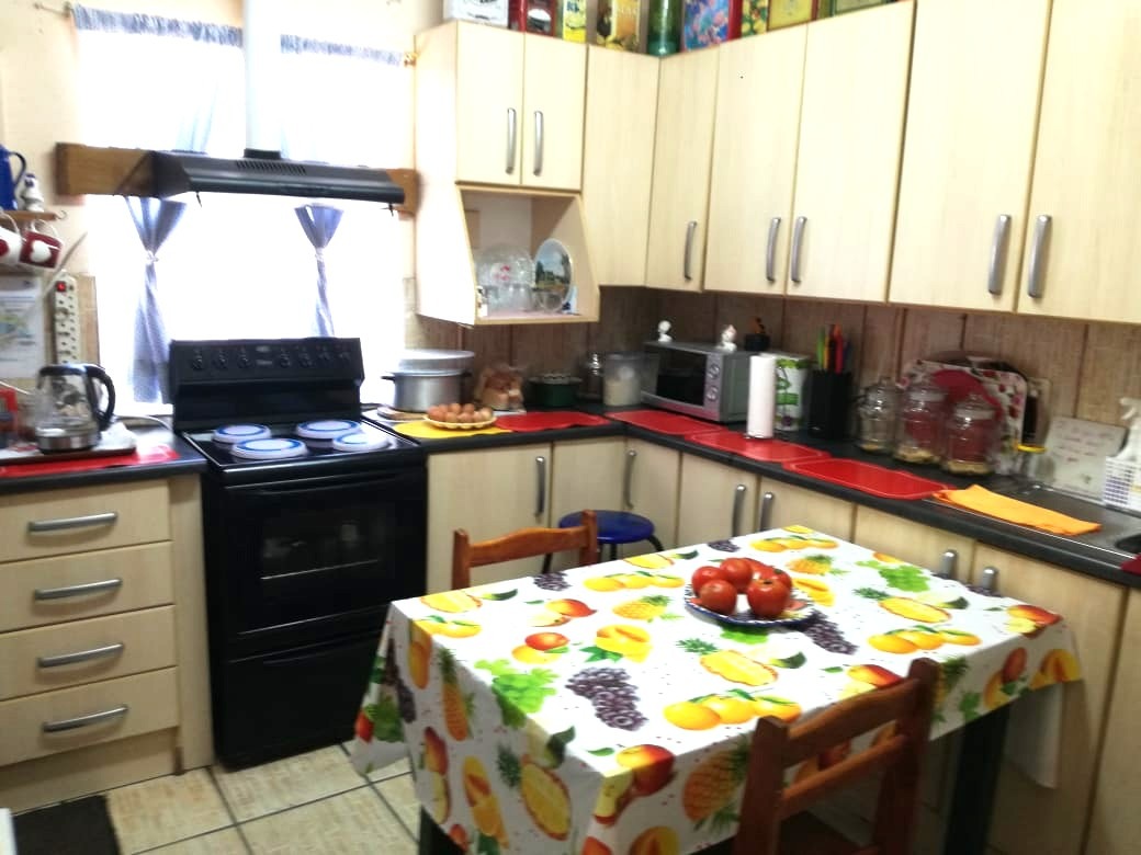 Inside, the home features a functional layout designed for everyday living. The lounge offers a comfortable space for relaxation, while the kitchen is equipped with ample light wood-look cabinetry and essential appliances, providing a practical area for meal preparation. Natural light streams through the windows, creating a bright and airy feel throughout the living spaces.
