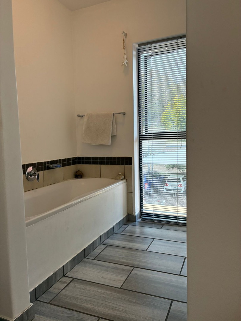 The open-plan layout flows effortlessly onto a private balcony—perfect for relaxing or entertaining. The main bedroom includes an en-suite with shower, while the second bathroom features a bath.
