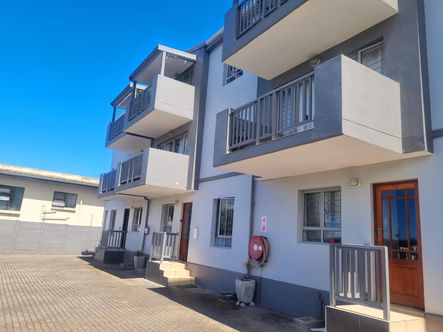 This gorgeous 2-bedroom apartment offers a fantastic opportunity for secure and relaxed living in the heart of Knysna Central. You'll immediately appreciate the modern, well-maintained exterior and the sense of security provided by the gated community and perimeter fencing. With its clean lines and private balconies, this complex offers a welcoming first impression, perfect for those seeking a comfortable suburban lifestyle in this beautiful South African town.