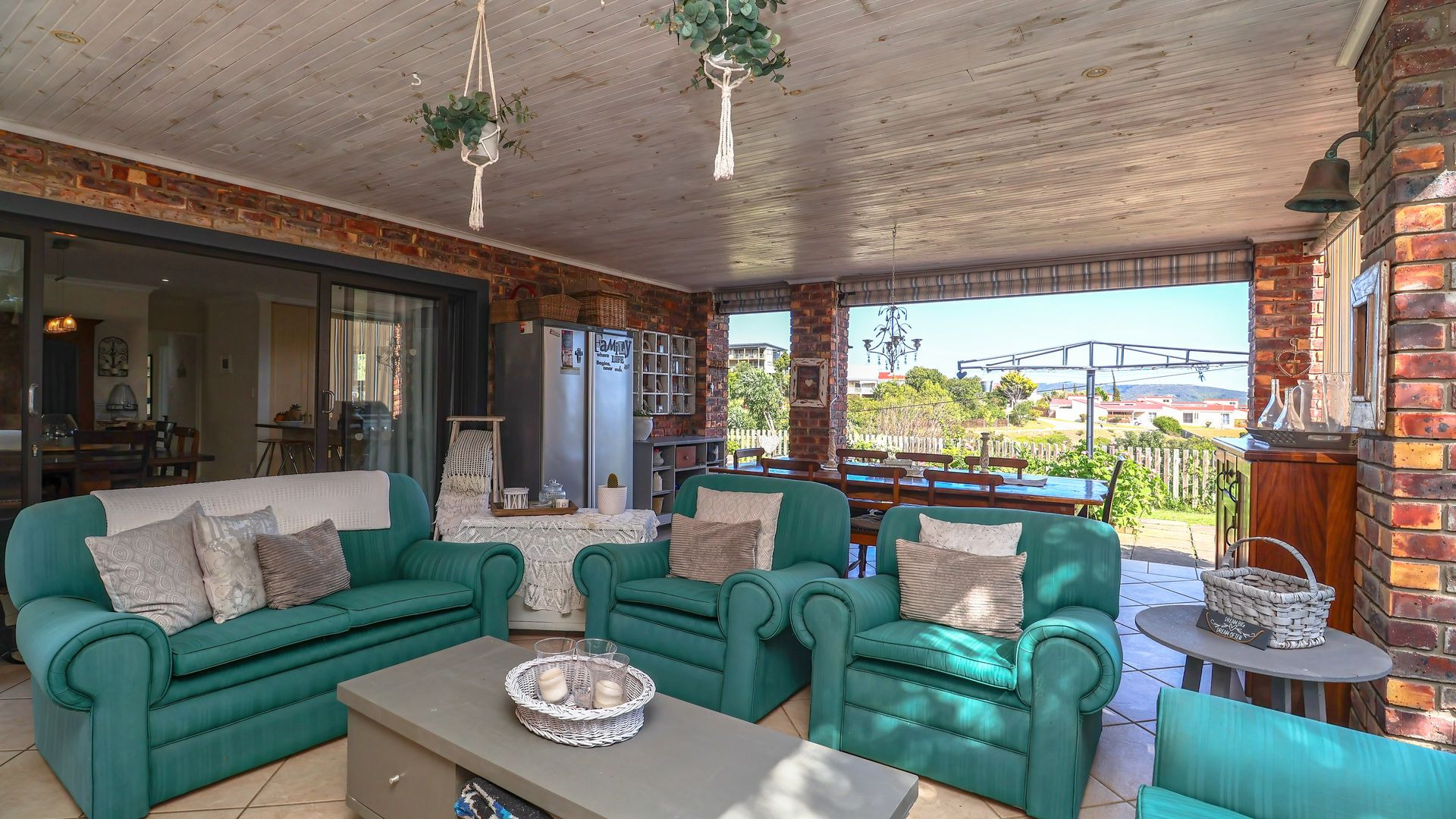 The entertainment offering is particularly impressive. A generous enclosed patio has been transformed into a versatile, all-season living area complete with a built-in braai — ideal for relaxed weekend lunches, lively gatherings, or cosy evenings regardless of the weather. The effortless indoor-outdoor flow creates a welcoming environment that truly embraces the Garden Route lifestyle, making this a natural entertainer’s home.