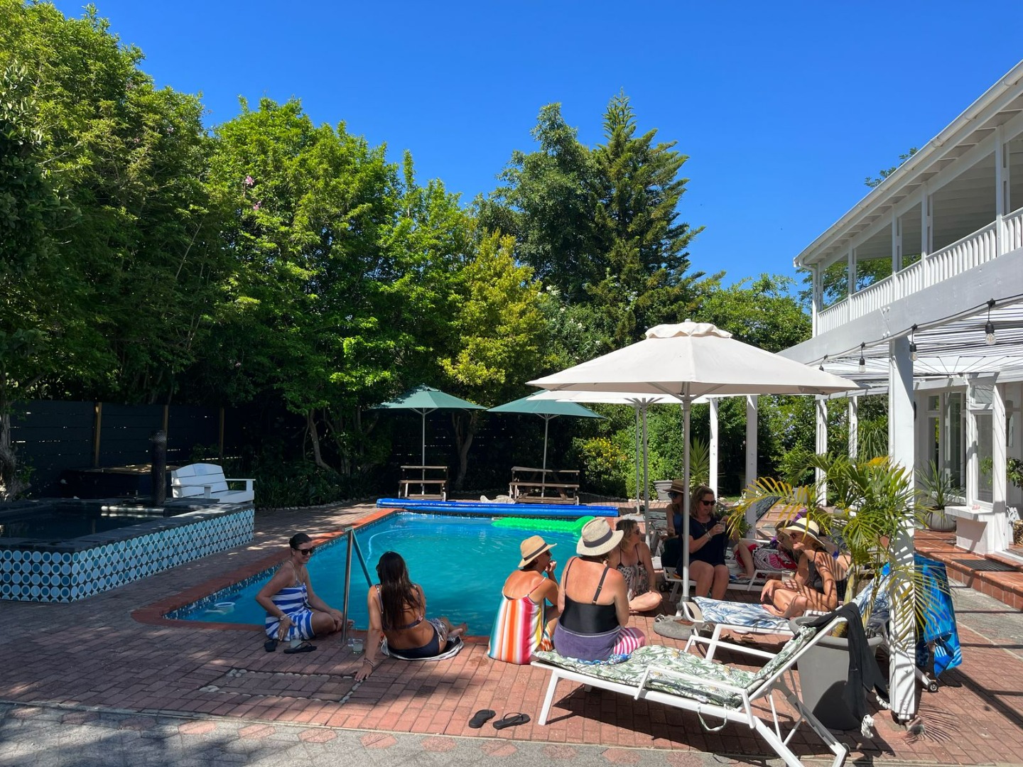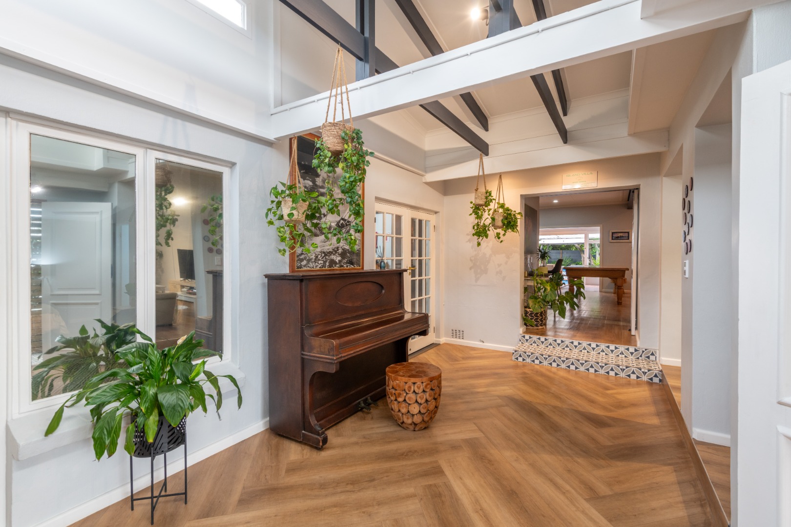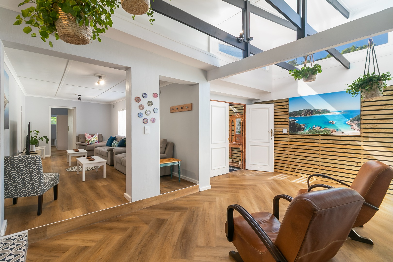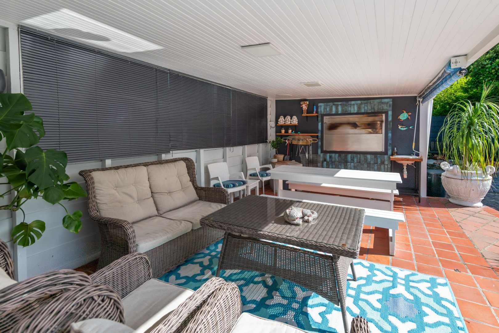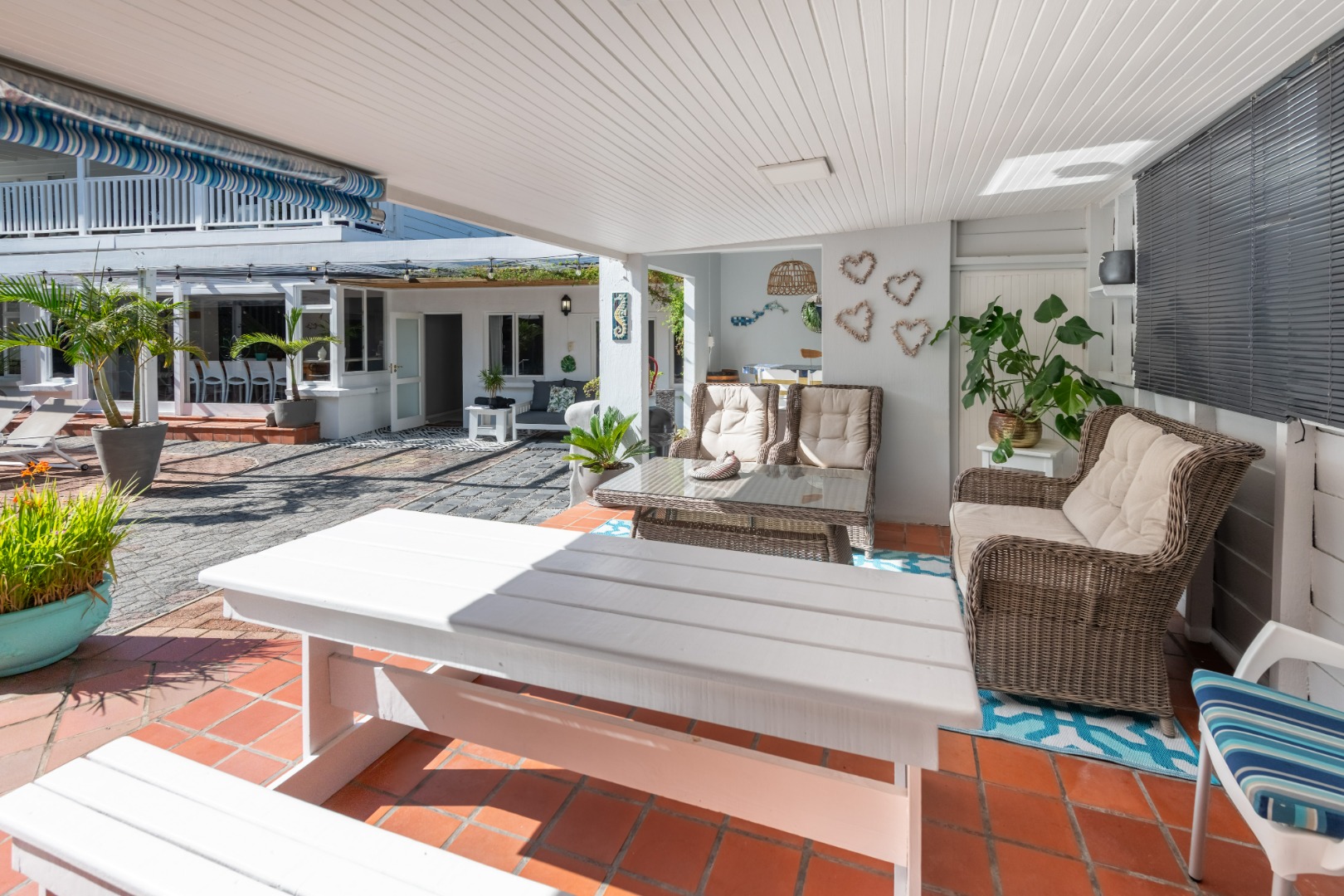 The entertainment options from this laid-back haven are truly endless, with a focus on barefoot luxury and relaxation. From the established garden to the expansive balconies and sunny covered patios, the property features a built-in braai, a wood-fired hot tub, separate outdoor built-in bar, fire pit and a swimming pool.