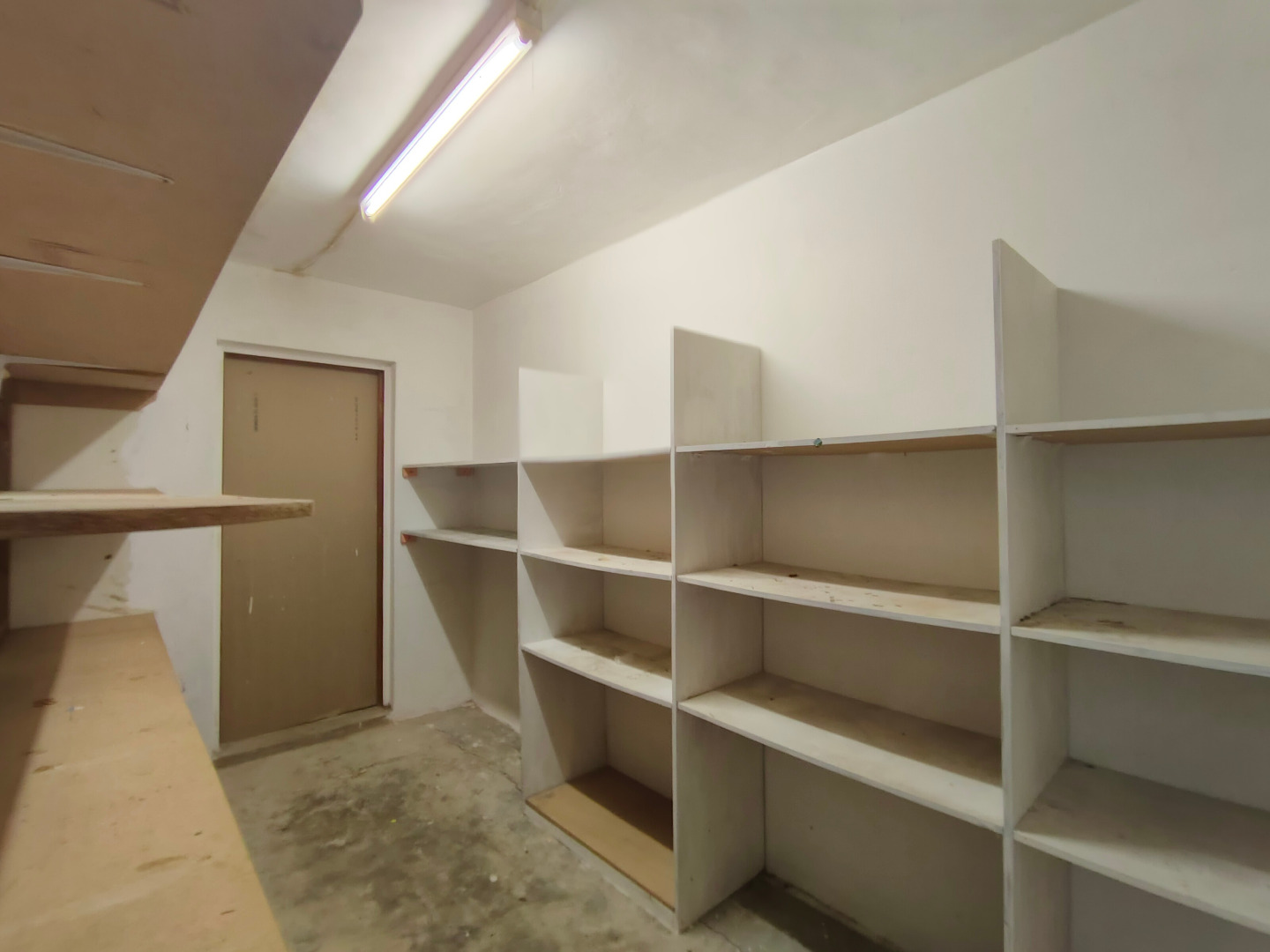 Downstairs features two manual garages — one oversized, with space for a vehicle and trailer, and the other large, with a front storeroom and direct access into the house. The lower level comprises two lagoon-facing bedrooms, one bathroom (without an en-suite), and an open-plan kitchen that flows into a compact lounge and dining area. The finishes are dated and require renovation, but the structure and ceilings are solid. Outdated plans exist to extend the living area, adding further value.
