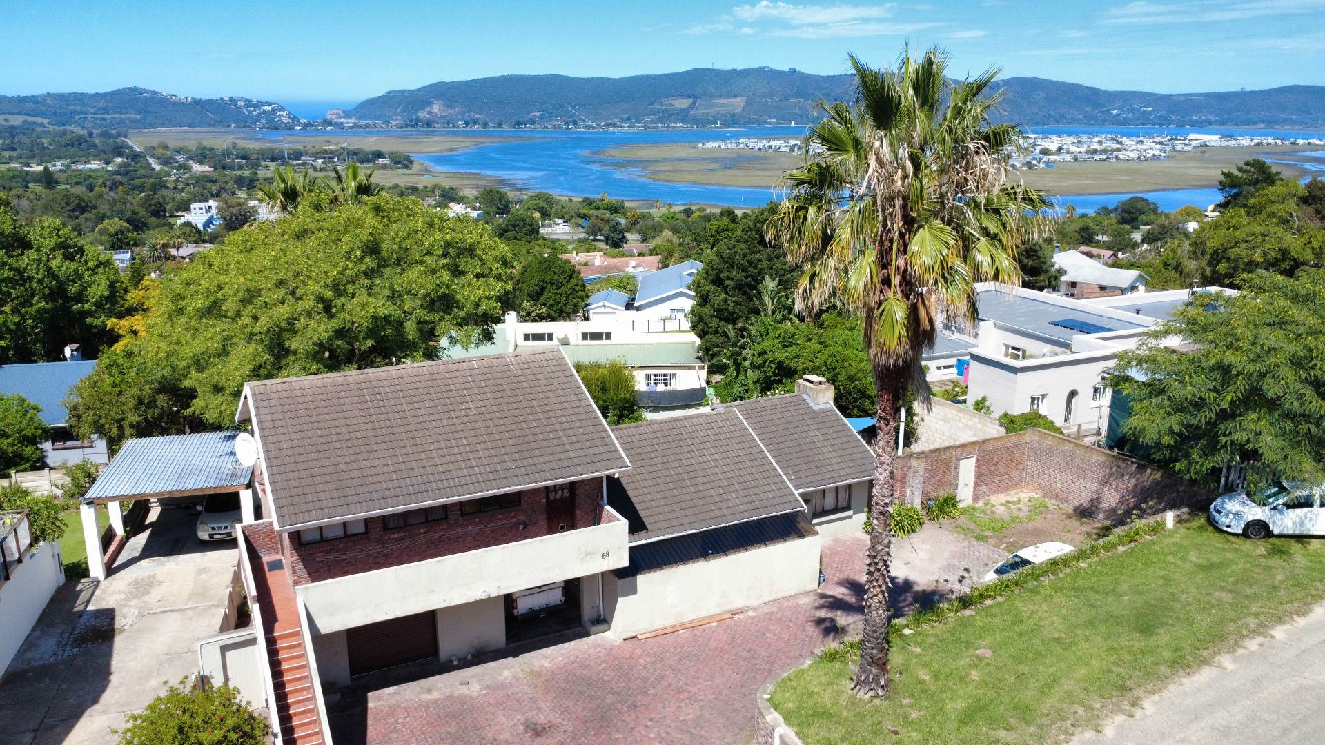 Upstairs, accessed via external stairs, are two neat open-plan flats. Each offers a living/sleeping area, separate bathroom, kitchenette, and its own balcony with magnificent views of the Knysna Lagoon and Heads. These units are well-maintained and ready to use.
