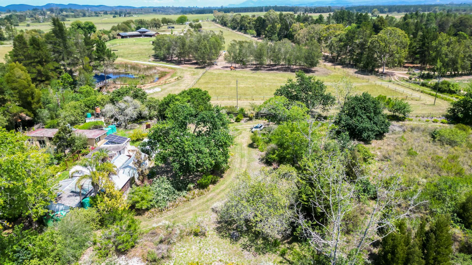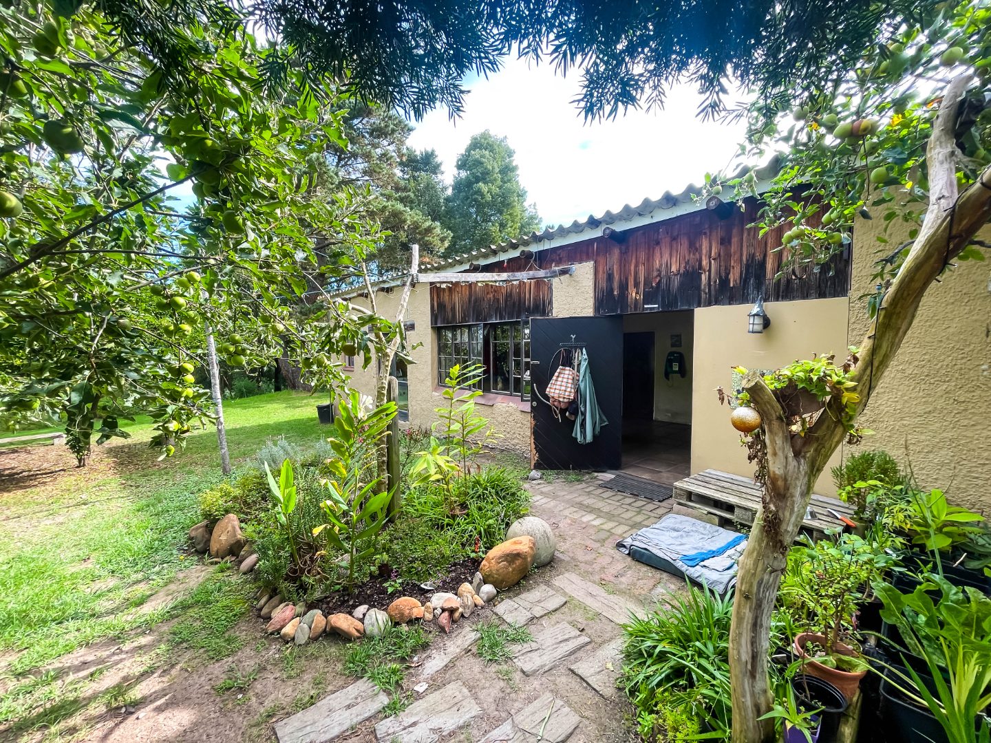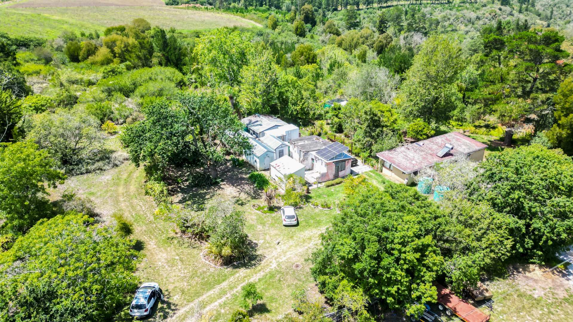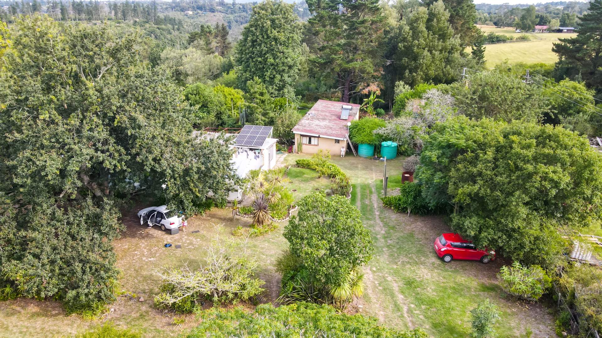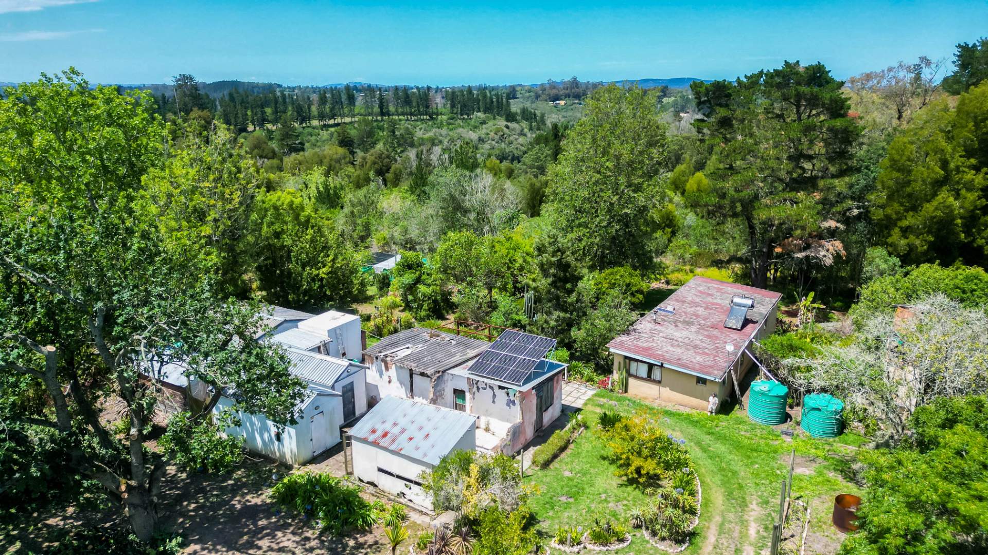 The farm features a charming 2-bedroom, 1-bathroom home with warm, light-filled interiors and tranquil forest views. Fully off-grid, it is powered by a 2.8 kW solar system with a 5 kVA inverter, complemented by rainwater harvesting supplying the home and outbuildings.